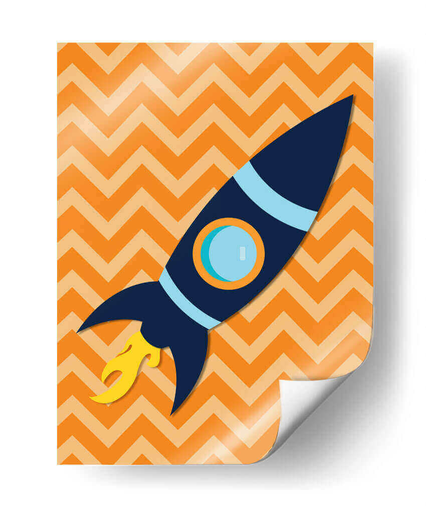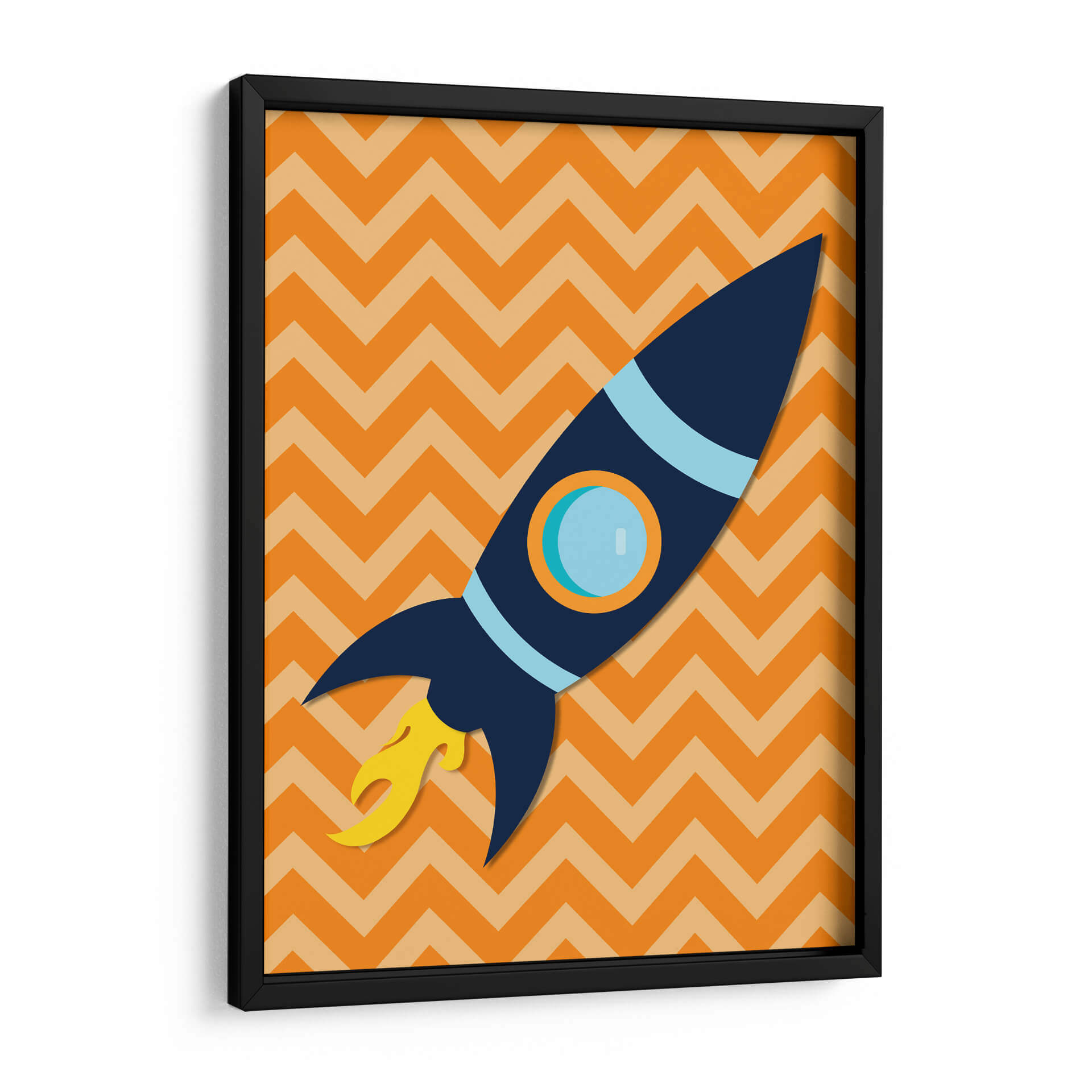 Embárcate en una aventura cósmica con este vibrante cuadro decorativo 'Space Rocket'. Esta obra de arte presenta un cohete espacial de un intenso color azul marino, con detalles en azul claro y una ventana circular que sugiere un viaje a lo desconocido. El diseño estilizado del cohete, con llamas amarillas saliendo de su propulsor, transmite una sensación de movimiento y energía. El fondo se compone de un patrón de zig-zag audaz en tonos naranja y beige, creando un contraste llamativo y moderno que captura la imaginación. Ideal para habitaciones infantiles, salas de juegos o cualquier espacio que busque un toque de fantasía y exploración espacial. Su estilo gráfico y contemporáneo lo convierte en una pieza versátil que puede añadir personalidad a una decoración ecléctica o temática. Transforma tu pared en una ventana a las estrellas con este cautivador cuadro decorativo, perfecto para despertar la curiosidad y el espíritu aventurero.