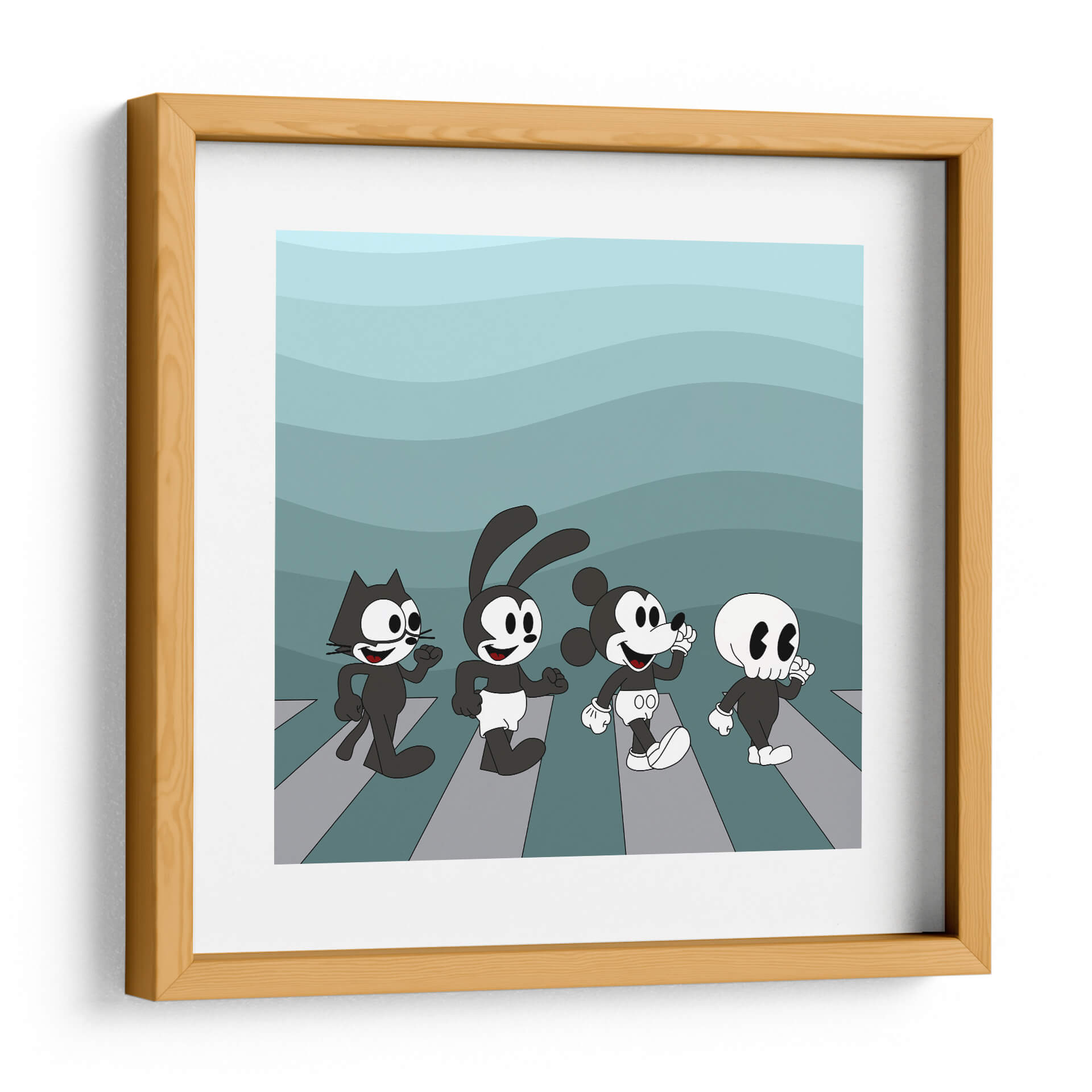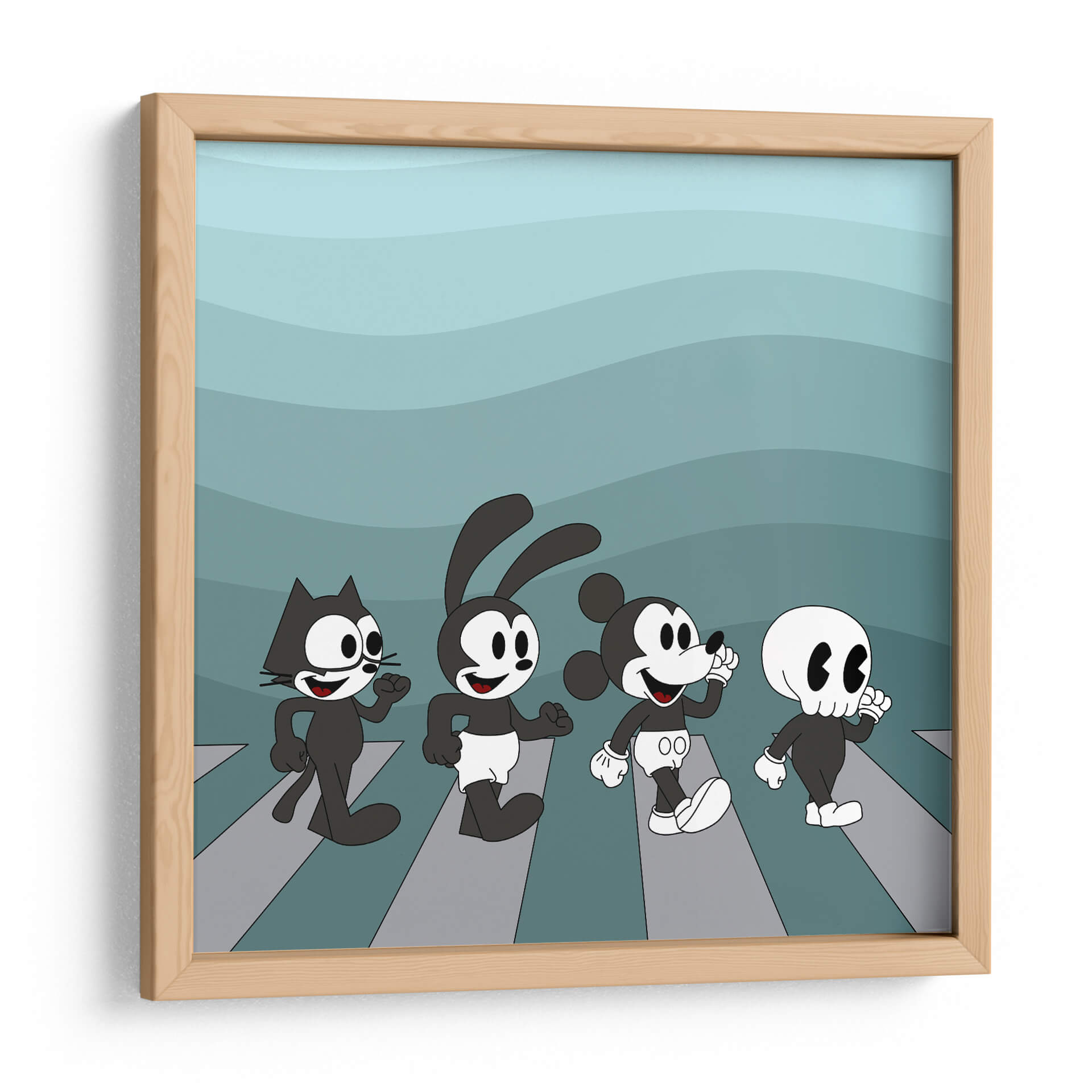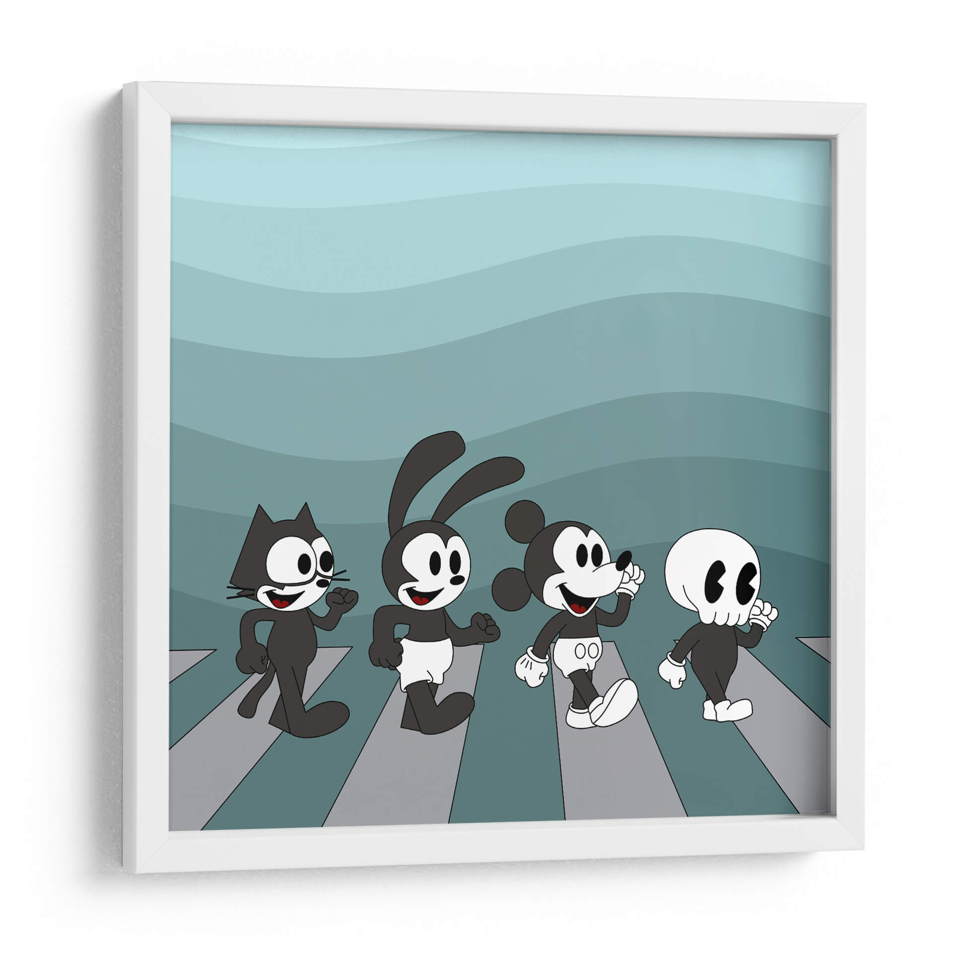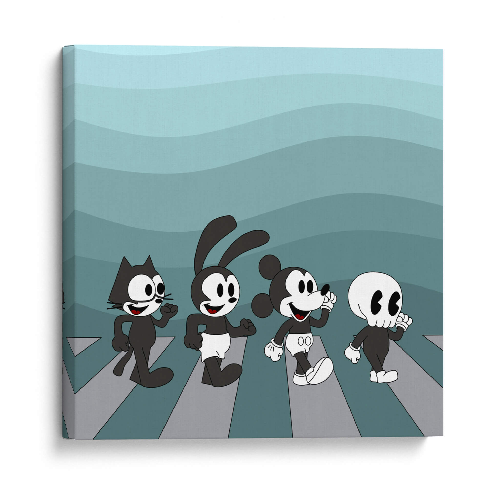 Embárcate en un viaje nostálgico con este cautivador cuadro decorativo, "Abbey Road Cartoons Blue", una obra que rinde homenaje a iconos de la animación clásica con un toque moderno y audaz. La composición presenta a personajes icónicos del mundo de los dibujos animados, como Félix el Gato, Oswald el conejo, Mickey Mouse y una figura esquelética, cruzando una pasarela emblemática. El estilo artístico, que evoca la era dorada de la animación, se ve realzado por una paleta de colores en tonos azules y grises que crean una atmósfera tranquila pero intrigante. Las líneas limpias y el diseño estilizado de los personajes aportan un aire contemporáneo a la pieza, haciéndola perfecta para espacios que buscan un toque de originalidad y diversión. Este cuadro decorativo es ideal para infundir personalidad en salas de estar, estudios o incluso habitaciones infantiles, invitando a la conversación y a la admiración. Su diseño único lo convierte en un punto focal memorable, capaz de transformar cualquier pared en una declaración de estilo. Añade un toque de humor y cultura pop a tu hogar con esta pieza única que celebra la historia de la animación.