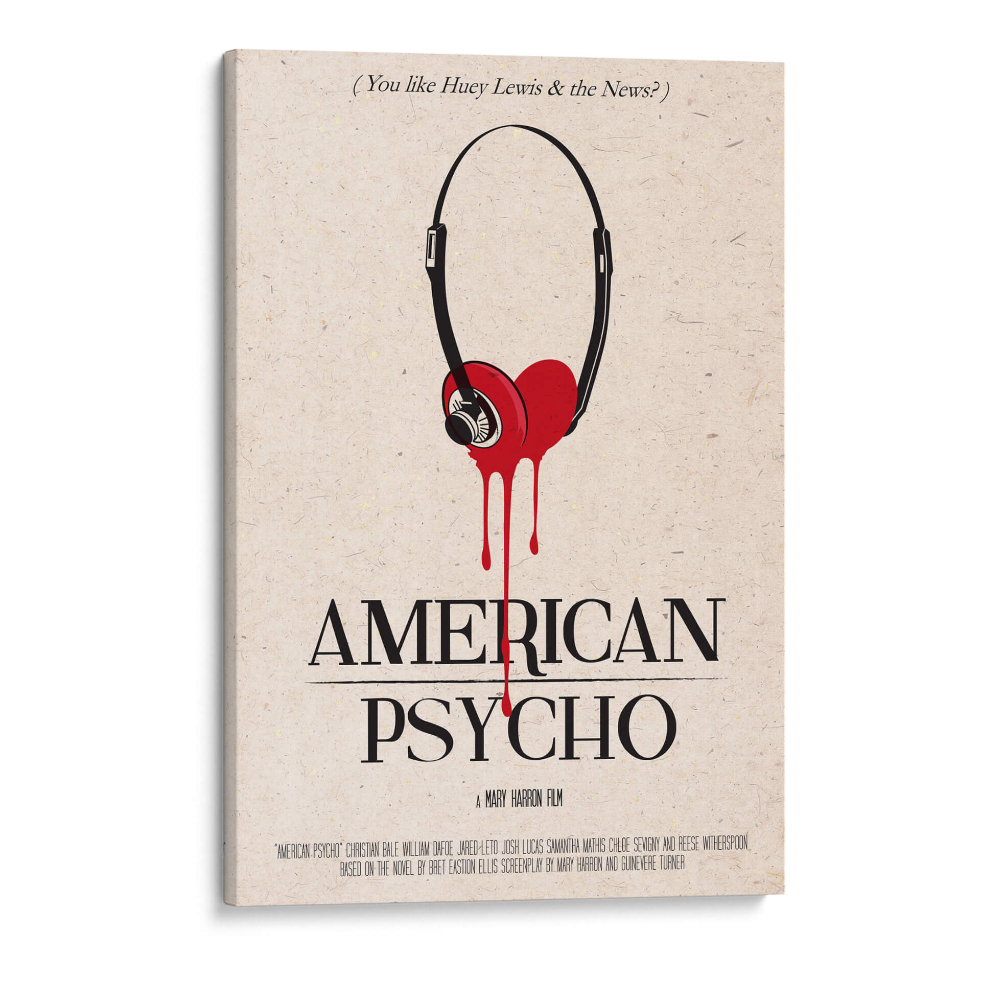 Sumérgete en la atmósfera icónica de "American Psycho" con este impactante cuadro decorativo. La obra presenta una representación minimalista pero poderosa de unos auriculares rojos, de los cuales gotean gotas de sangre, sobre un fondo texturizado de color beige. La imagen evoca misterio, intriga y una sutil crítica a la cultura moderna, haciendo referencia a la famosa película y su estética distintiva. El diseño limpio y la paleta de colores limitada, centrada en el rojo vibrante y los tonos tierra, crean un contraste visual cautivador. Este cuadro decorativo es perfecto para añadir un toque de audacia y conversación a tu sala de estar, oficina o cualquier espacio que busque una pieza de arte contemporáneo con carácter. Su estilo gráfico y su concepto único lo convierten en un punto focal memorable, ideal para amantes del cine, el arte pop o la decoración moderna que no teme explorar temas complejos. Aporta una dosis de arte provocador y sofisticado a tu hogar.