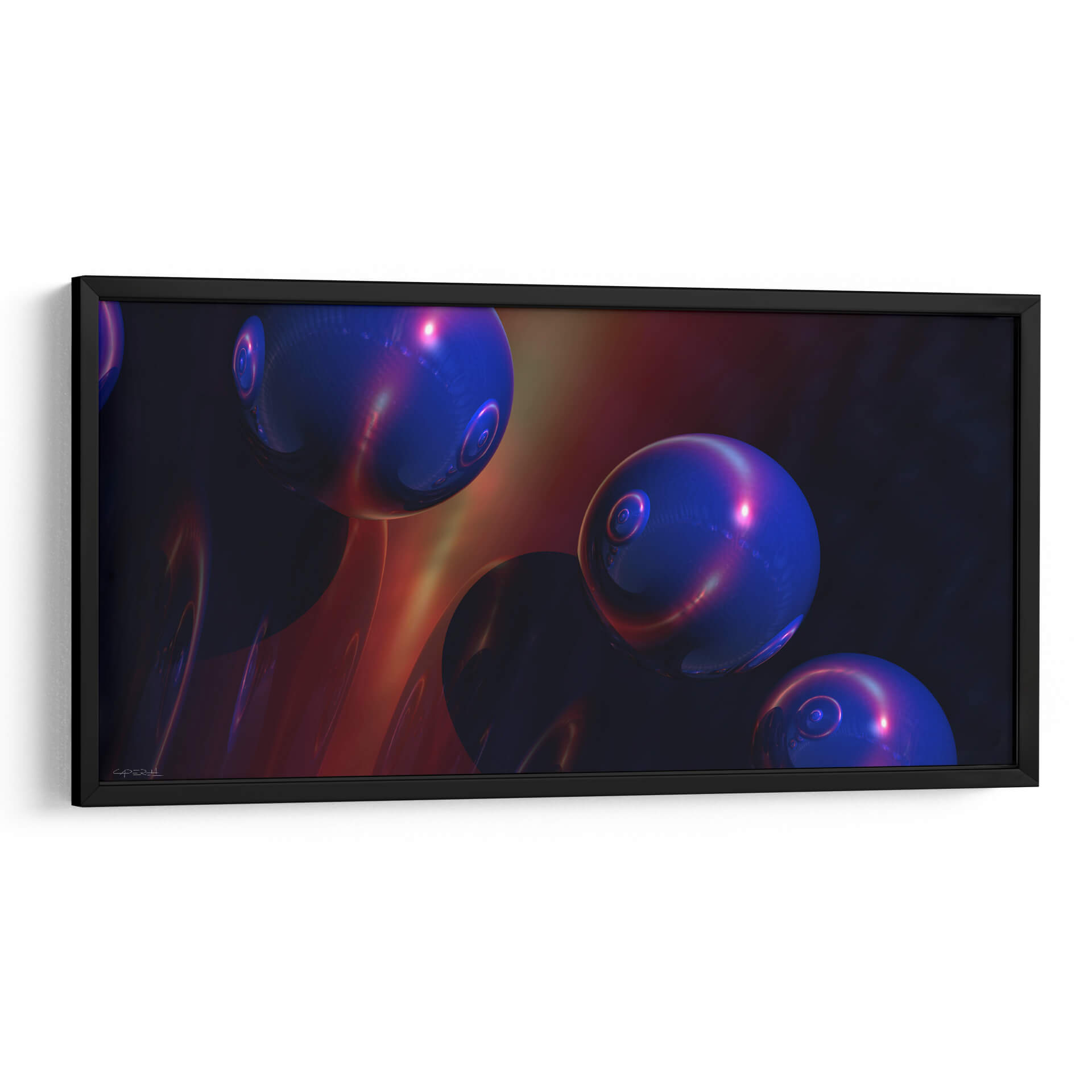 Sumérgete en la fascinante obra de arte 'Balls' de Caperh, una pieza que captura la imaginación con sus esferas brillantes y vibrantes. Este cuadro decorativo abstracto te transportará a un universo de formas geométricas y colores intensos, dominado por profundos tonos azules que contrastan con destellos de luz púrpura y rojiza. La composición se centra en varias esferas flotantes, cada una reflejando su entorno con un acabado pulido y casi líquido, creando un juego de luces y sombras que añade profundidad y misterio a la pieza. Las formas fluidas y orgánicas en el fondo sugieren un movimiento etéreo, envolviendo las esferas en una atmósfera casi onírica. 'Balls' es una invitación a la contemplación, ideal para añadir un toque de modernidad y sofisticación a cualquier espacio, ya sea una sala de estar contemporánea, un estudio de diseño o una oficina que busque inspiración visual. Su estilo abstracto y su paleta de colores audaz la convierten en una elección perfecta para quienes buscan una decoración de pared que sea a la vez intrigante y elegante, generando conversaciones y añadiendo un punto focal dinámico a tu ambiente.