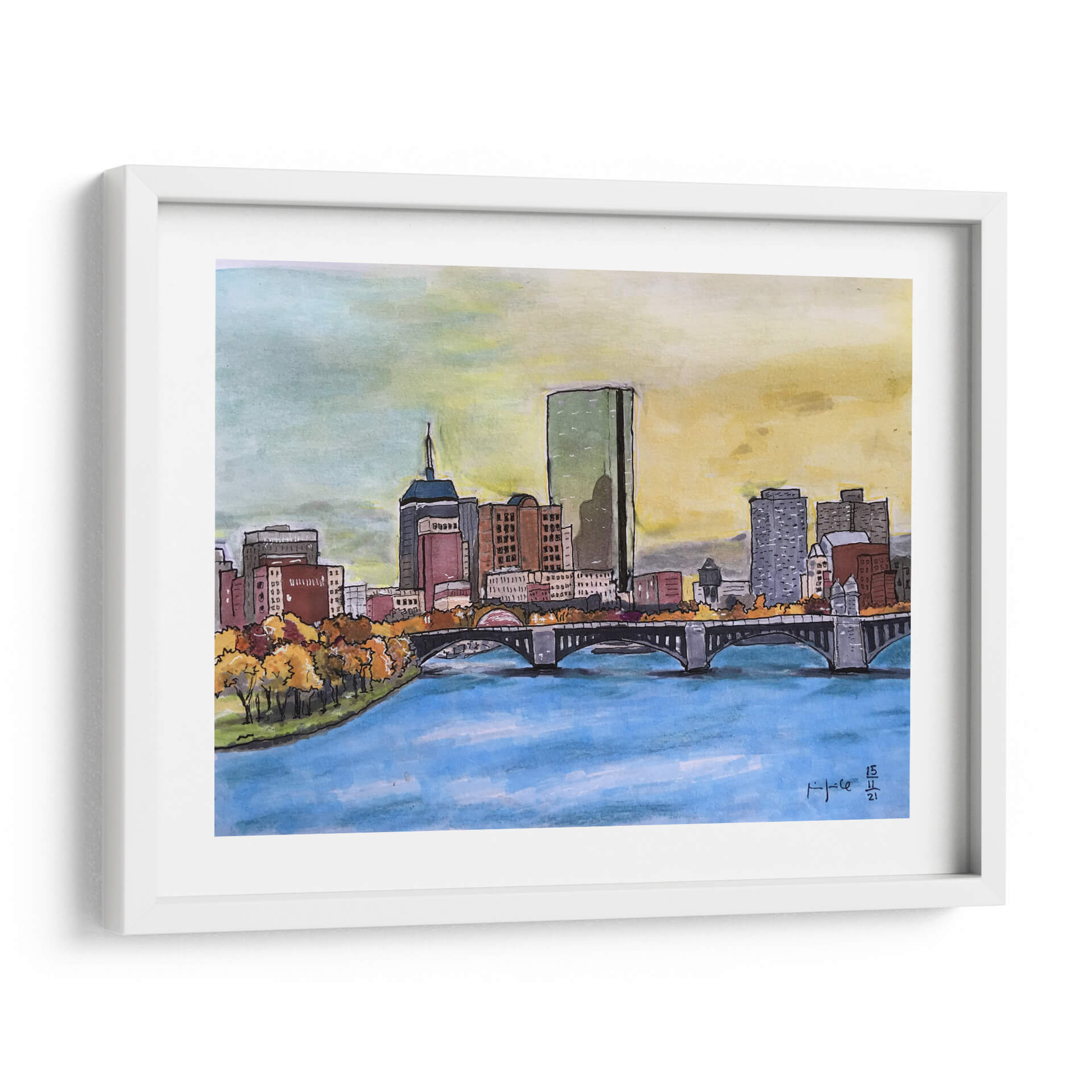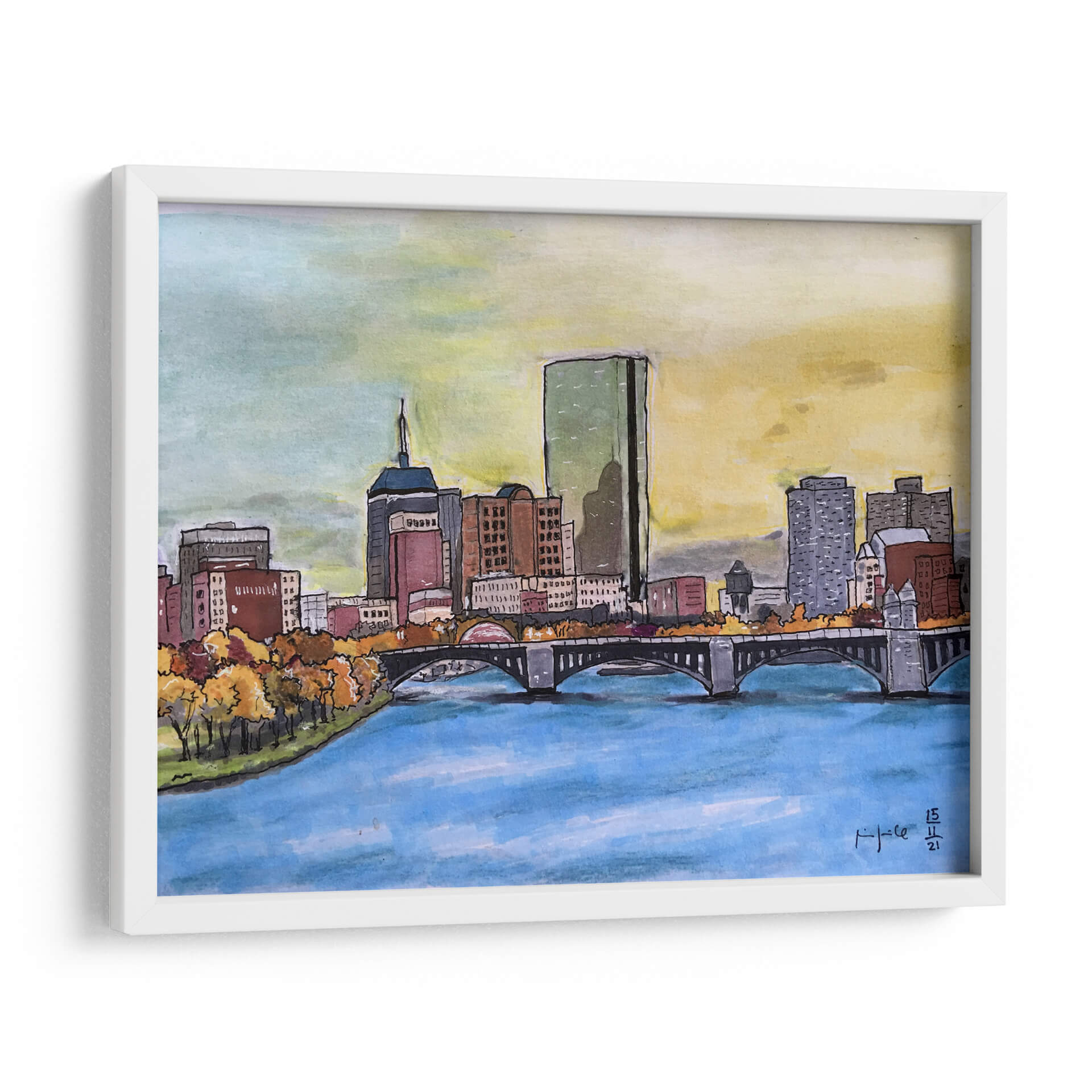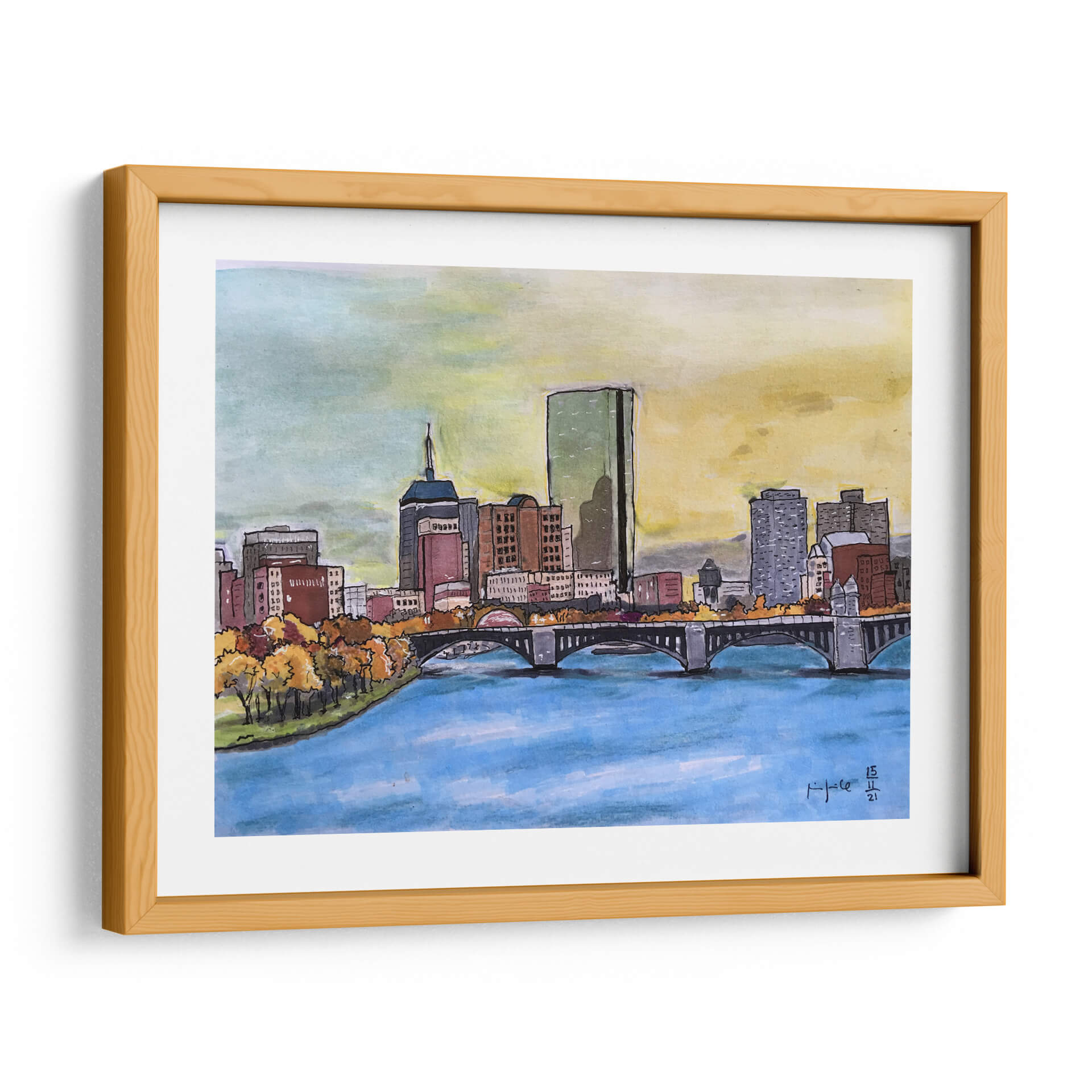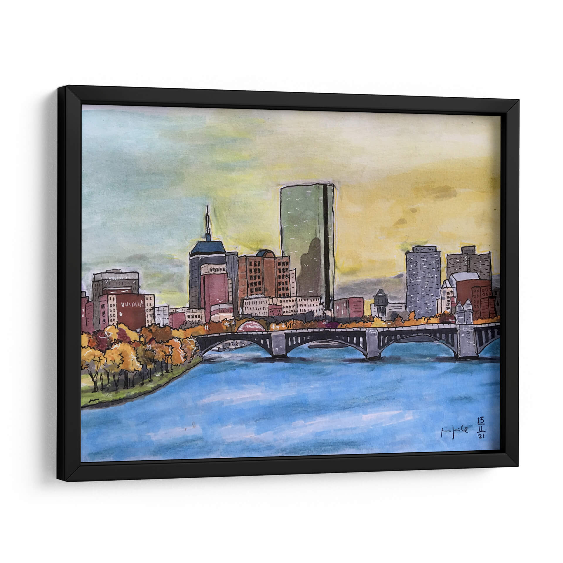Captura la esencia de una metrópolis vibrante con este evocador cuadro decorativo, titulado 'Boston' y creado por el artista Fitzmaurice. Esta obra de arte captura una icónica vista del skyline de la ciudad, dominada por imponentes rascacielos y atravesada por un majestuoso puente sobre un río de aguas serenas. Los colores otoñales de los árboles en la ribera añaden un toque de calidez y vida a la escena urbana, contrastando bellamente con el azul intenso del agua y el cielo crepuscular teñido de tonos dorados y aguamarina. La técnica pictórica, que recuerda a la acuarela, aporta una suavidad y una atmósfera onírica a la representación, invitando a la contemplación. Este cuadro es perfecto para añadir un toque de sofisticación y carácter a tu salón, oficina o cualquier espacio que busque un punto focal con personalidad. Su estilo combina elementos realistas con una interpretación artística que evoca la energía y la belleza de la vida urbana en una estación de transición. Ideal para amantes de las ciudades, el arte contemporáneo y la decoración que cuenta historias.