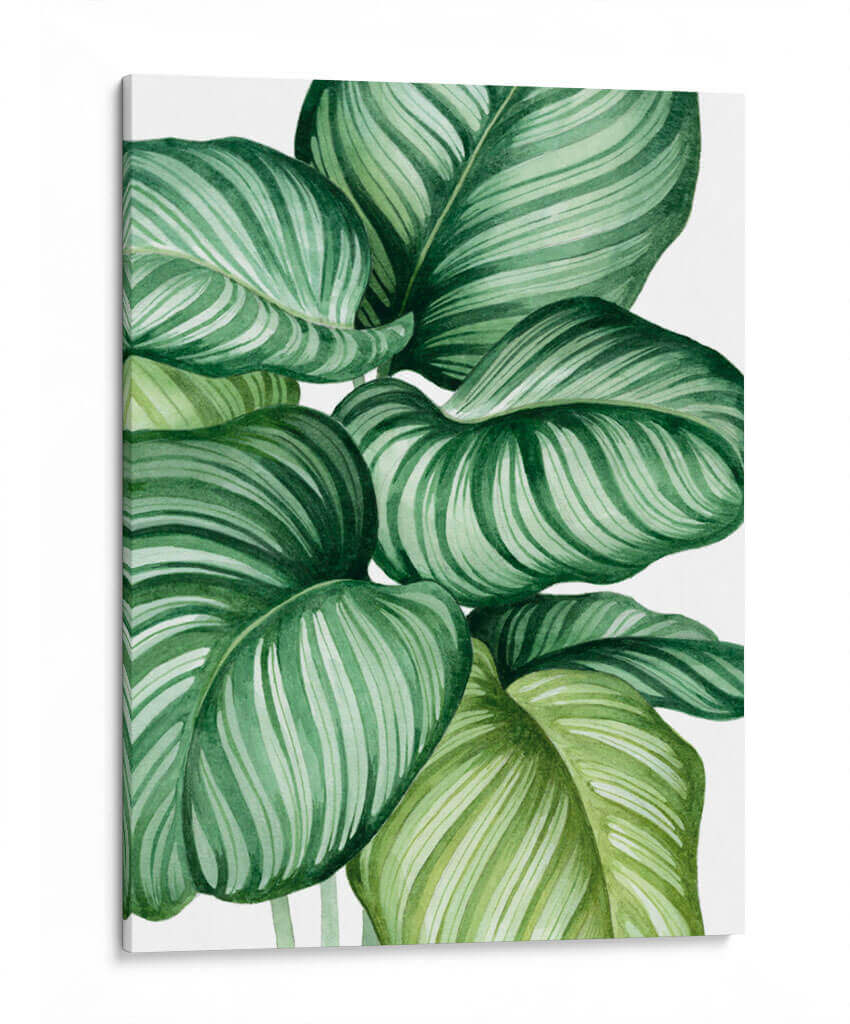 Sumérgete en la serenidad botánica con este exquisito cuadro decorativo 'Calathea Orbifolia' de Blanca Aurora. La obra captura la majestuosidad de las hojas de Calathea, presentadas en un estilo acuarela que evoca la delicadeza de la naturaleza. Sus vibrantes tonos de verde, desde el esmeralda profundo hasta el lima luminoso, se entrelazan en un patrón hipnotizante de vetas que aporta frescura y vitalidad a cualquier espacio. La composición, centrada en el detalle de las hojas, crea una sensación de profundidad y textura, invitando al espectador a apreciar la intrincada belleza del mundo vegetal. Este cuadro es una pieza ideal para quienes buscan infundir calma y un toque de exuberancia natural en sus hogares u oficinas. Su estilo contemporáneo y su temática atemporal lo convierten en una adición versátil que complementa a la perfección una decoración minimalista, escandinava o tropical. Imagina este lienzo como un oasis de tranquilidad en tu sala de estar, un recordatorio refrescante en tu estudio o un punto de conexión con la naturaleza en tu dormitorio. La mano experta de Blanca Aurora transforma una planta común en una obra de arte cautivadora, perfecta para embellecer tus paredes y elevar tu estado de ánimo. Añade un soplo de aire fresco y un toque de elegancia natural a tu ambiente con esta impresionante representación botánica.