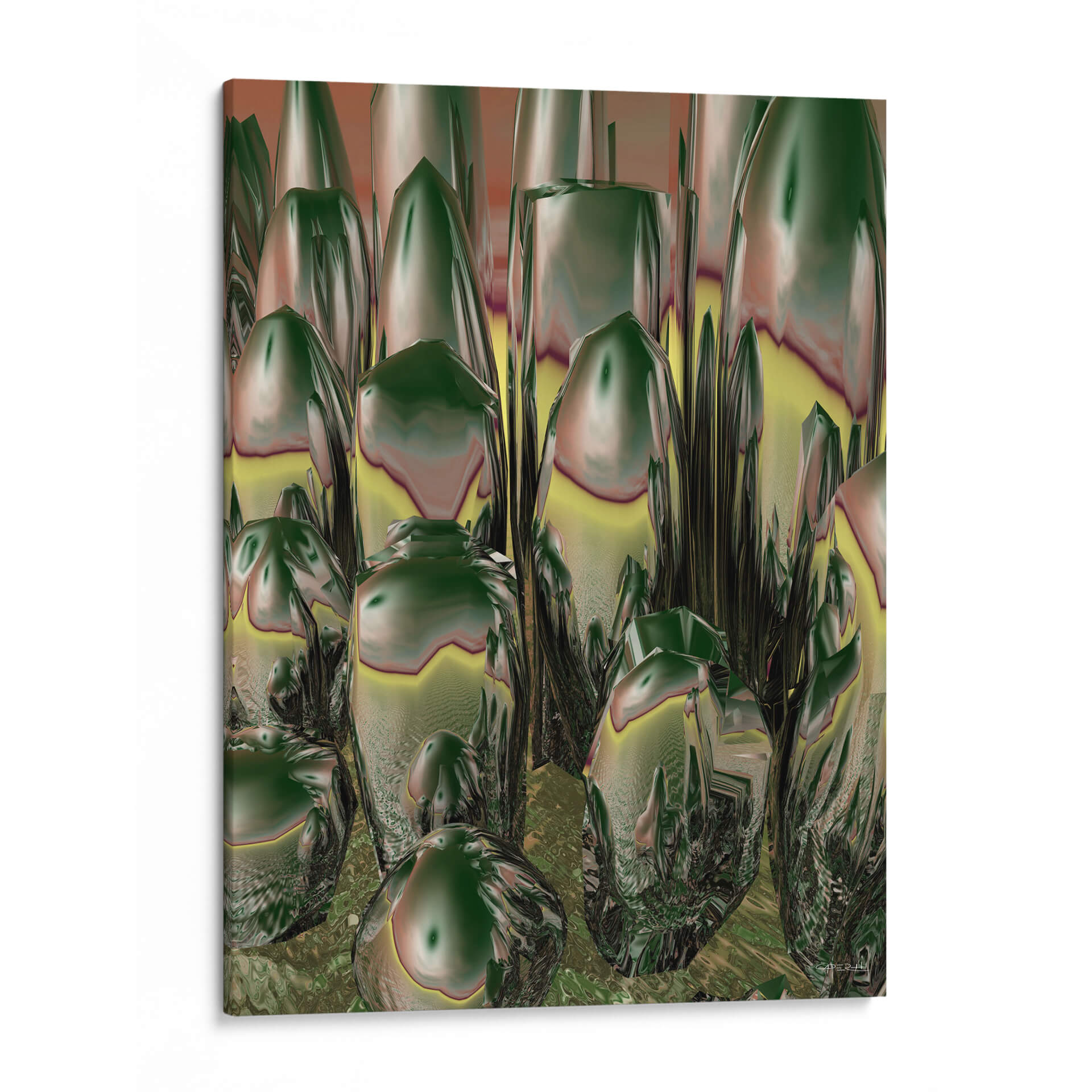Sumérgete en la opulencia y el misterio con "Cubierta de Chocolate", una obra de arte digital cautivadora del artista Caperh. Esta pieza evoca una profunda sensación de reflexión a través de sus formas orgánicas y fluidas, reminiscentes de gemas pulidas o elementos naturales cristalizados. La paleta de colores, dominada por ricos verdes esmeralda y acentos de tonos tierra cálidos y dorados, crea un ambiente de lujo sutil y sofisticación. Las superficies reflectantes y las texturas complejas invitan a la contemplación, sugiriendo una conexión entre lo orgánico y lo artificial, lo tangible y lo etéreo. Ideal para espacios que buscan un toque de intriga y elegancia, como un estudio, una sala de estar moderna o un recibidor contemporáneo, este cuadro decorativo se convierte en un punto focal que estimula la conversación y la imaginación. Transforma tu hogar u oficina con esta obra maestra que combina la audacia del arte contemporáneo con una atmósfera envolvente y seductora. La profundidad y el detalle de "Cubierta de Chocolate" aseguran que sea una adición memorable a cualquier colección de arte decorativo de pared.