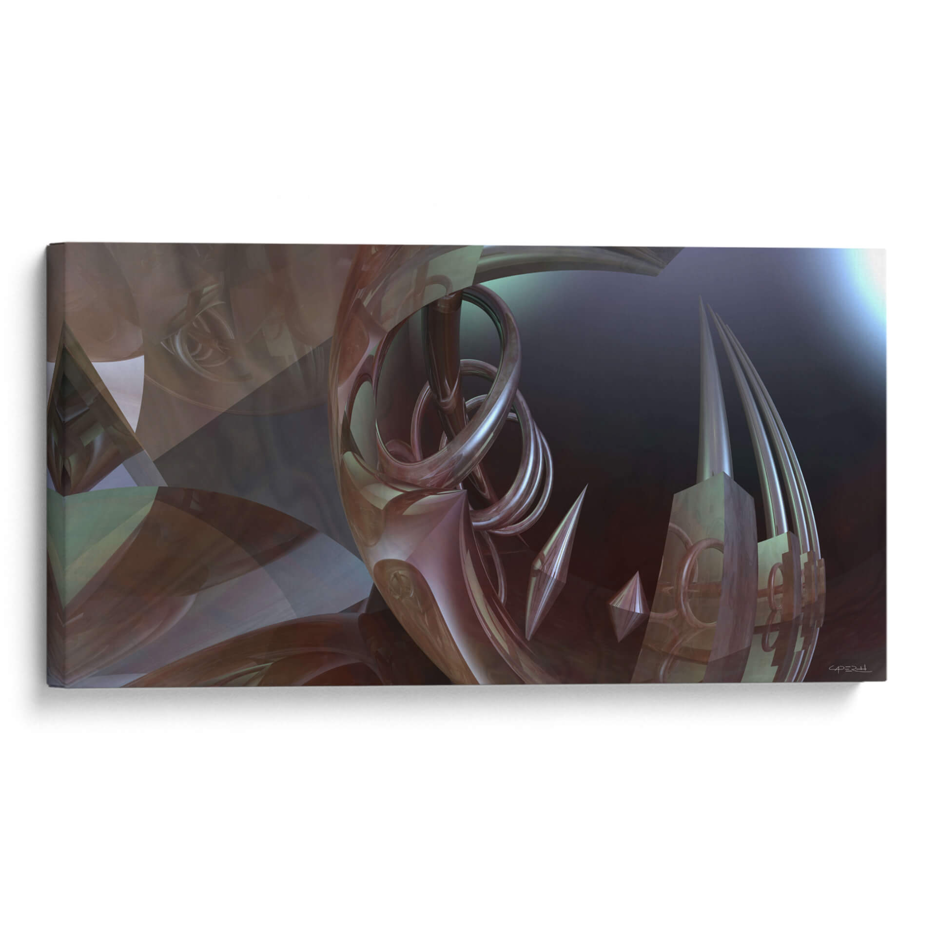 Sumérgete en la profundidad y el misterio de "Escondite", una obra de arte digital abstracta creada por Caperh. Esta pieza cautiva con su intrincada composición de formas orgánicas y geométricas entrelazadas, evocando una sensación de descubrimiento y exploración. La paleta de colores, dominada por tonos cálidos de cobre y bronce con sutiles toques de verde musgo y azules profundos, crea una atmósfera envolvente y sofisticada. Las superficies pulidas y reflectantes de las formas sugieren un mundo tridimensional complejo, invitando al espectador a perderse en sus detalles. El estilo se sitúa entre lo abstracto y lo surrealista, con elementos que recuerdan a estructuras biomecánicas o paisajes alienígenas. "Escondite" es ideal para espacios que buscan un toque de originalidad y profundidad, como salas de estar modernas, estudios de diseño o oficinas creativas, aportando un punto focal intrigante y un aire de misterio contemporáneo. Transforma tu pared en una ventana a un universo fascinante con este cuadro decorativo único que estimula la imaginación y añade un carácter distintivo a cualquier ambiente, convirtiéndose en el centro de atención y conversación.