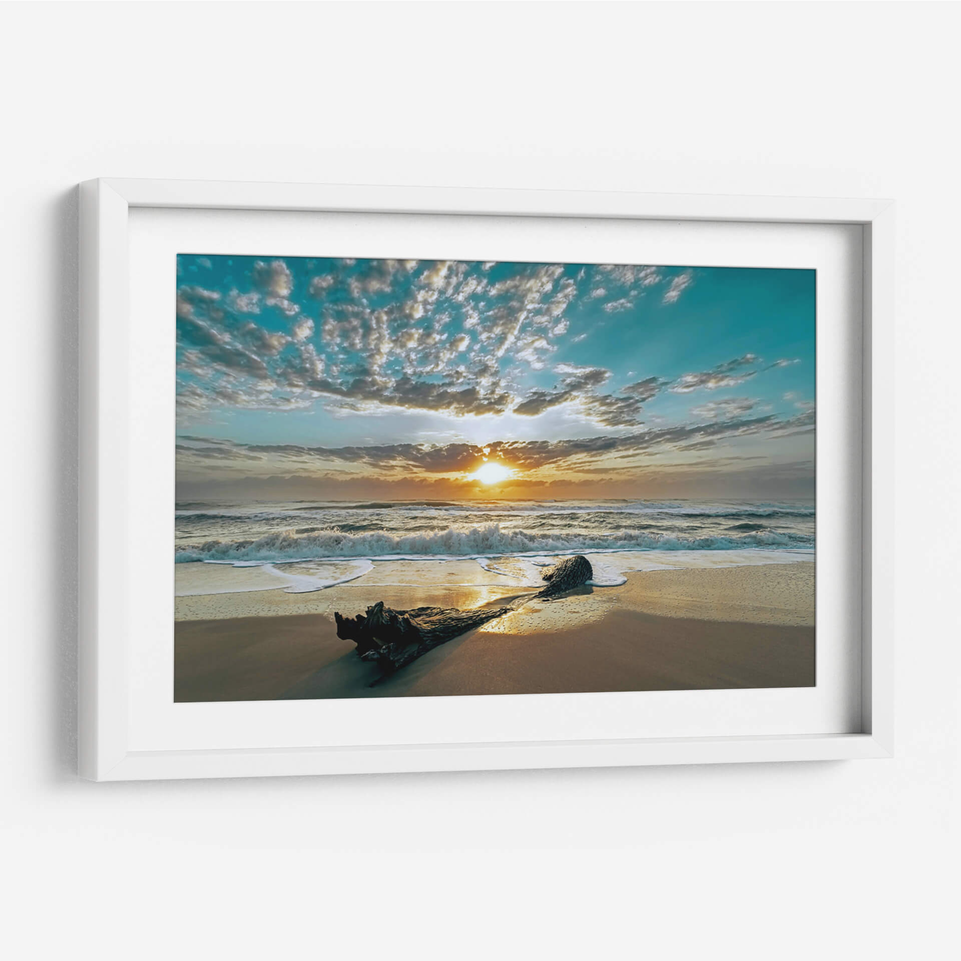 Captura la serenidad y la belleza efímera de un nuevo día con nuestro cuadro decorativo "Hermoso Amanecer", una obra maestra fotográfica de Francisco Camacho. Esta pieza evoca la magia del momento en que el sol emerge sobre el océano, tiñendo el cielo de cálidos tonos anaranjados y dorados que se reflejan en las olas espumosas y la arena húmeda. Las nubes dispersas en un cielo turquesa añaden una textura visual cautivadora, mientras que la silueta de un tronco a la deriva en primer plano aporta un elemento de interés natural y un toque de melancolía contemplativa. La composición equilibrada y la atmósfera pacífica de esta fotografía la convierten en la elección perfecta para infundir calma y optimismo en cualquier espacio. Ideal para salones, dormitorios o estudios, este cuadro decorativo es una ventana a la tranquilidad costera, invitando a la reflexión y al disfrute de la belleza natural. Añade una dosis de paz y renovación a tu hogar con esta impresionante vista del amanecer, un recordatorio diario de la esperanza y la belleza que cada nuevo día trae consigo. Es un lienzo que transporta, que calma y que inspira, perfecto para quienes buscan conectar con la naturaleza y la serenidad en su entorno.