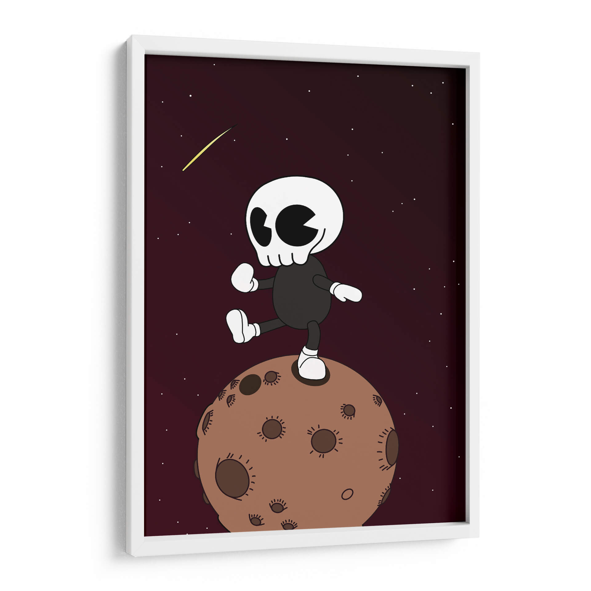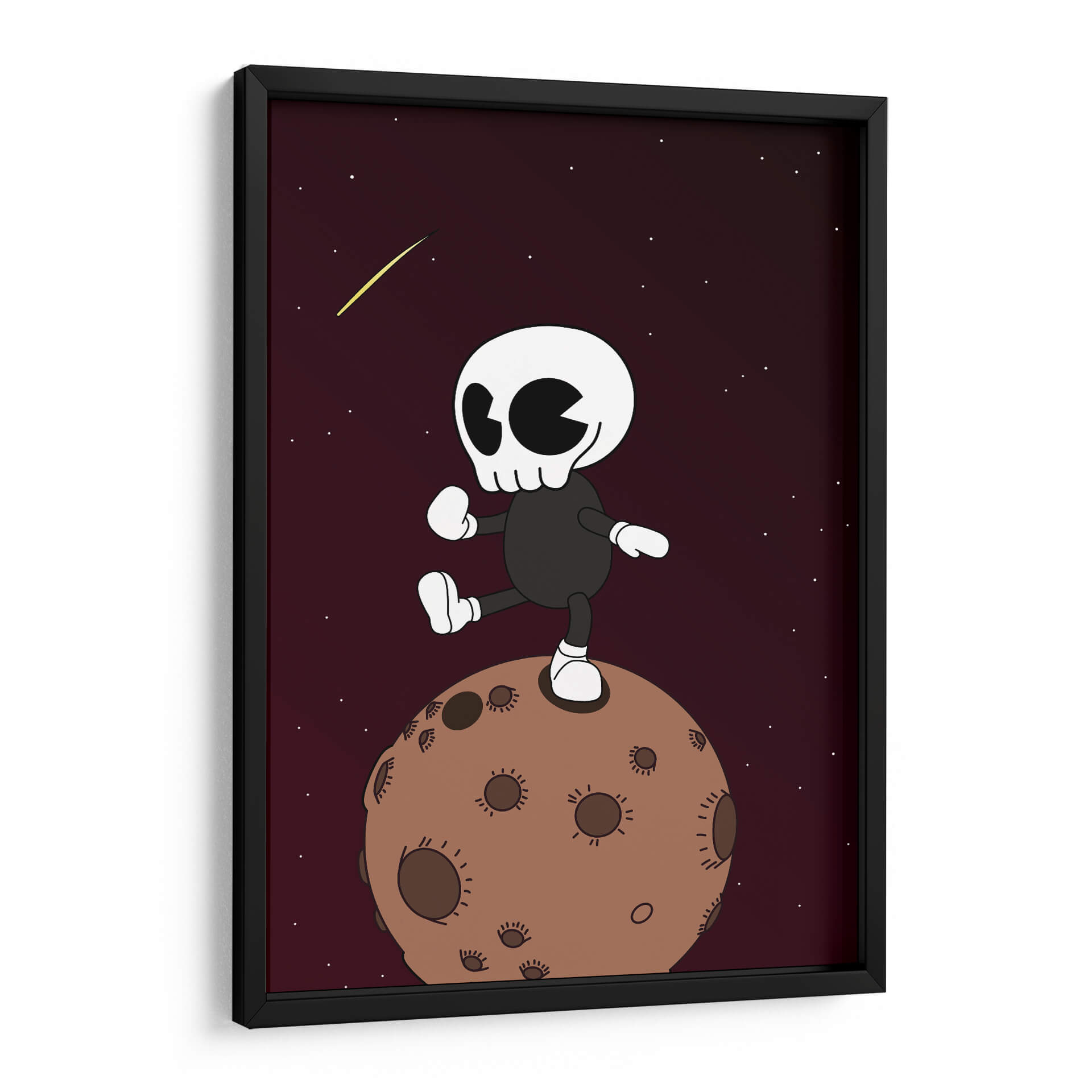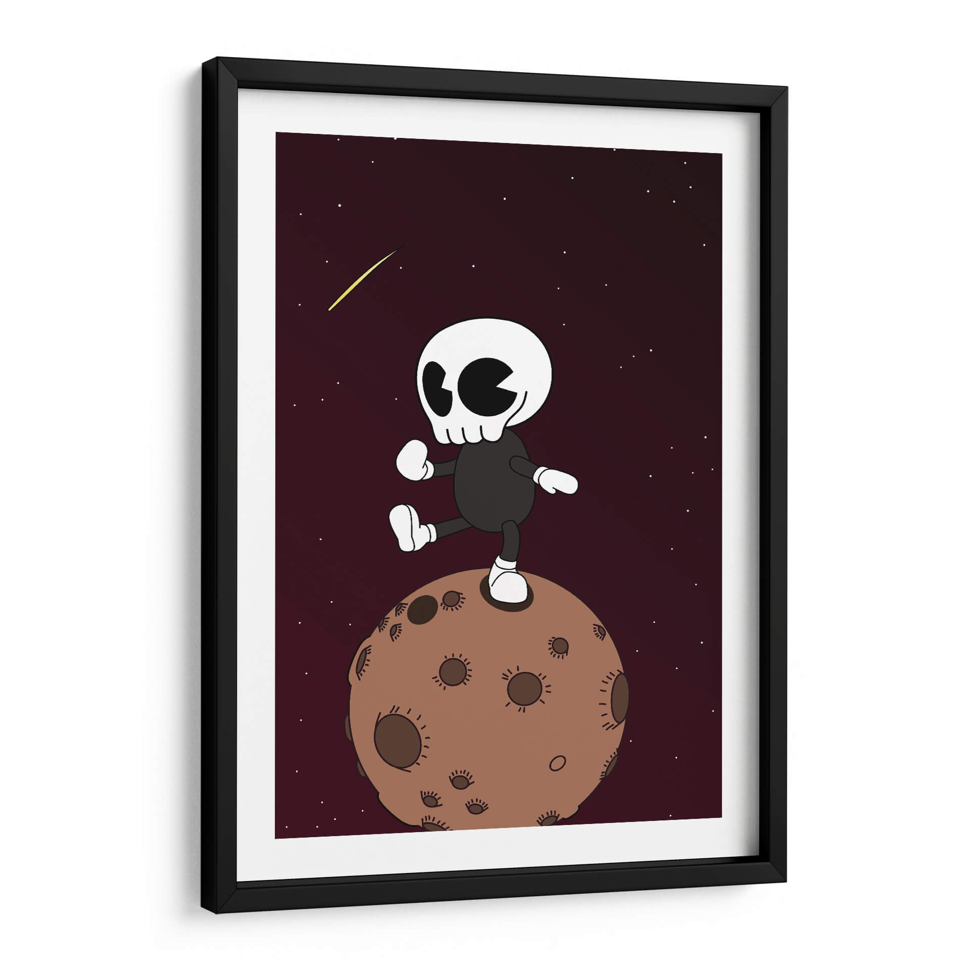 Embárcate en un viaje cósmico con el cuadro decorativo "Luna Kullws" de Khevth Art, una obra que fusiona lo enigmático con lo juguetón. Esta pieza cautivadora presenta una figura estilizada con cabeza de calavera, vestida con un traje oscuro y guantes blancos, dando un paso audaz sobre una superficie planetaria. El fondo, de un profundo color vino tinto salpicado de estrellas, evoca la vastedad del espacio, mientras que una estela de luz amarilla cruza el firmamento, sugiriendo movimiento y descubrimiento. La composición minimalista y el estilo de arte gráfico contemporáneo hacen de "Luna Kullws" una adición intrigante para cualquier espacio. Los contrastes nítidos entre el blanco brillante de la figura y el marrón terroso del planeta contra el oscuro fondo espacial crean un impacto visual inmediato. Esta obra es perfecta para quienes buscan infundir a su hogar u oficina una dosis de misterio y originalidad. Ideal para salas de estar modernas, estudios creativos o dormitorios con un toque vanguardista, este cuadro decorativo invita a la reflexión sobre la aventura y lo desconocido, añadiendo un punto focal único que despertará conversaciones.