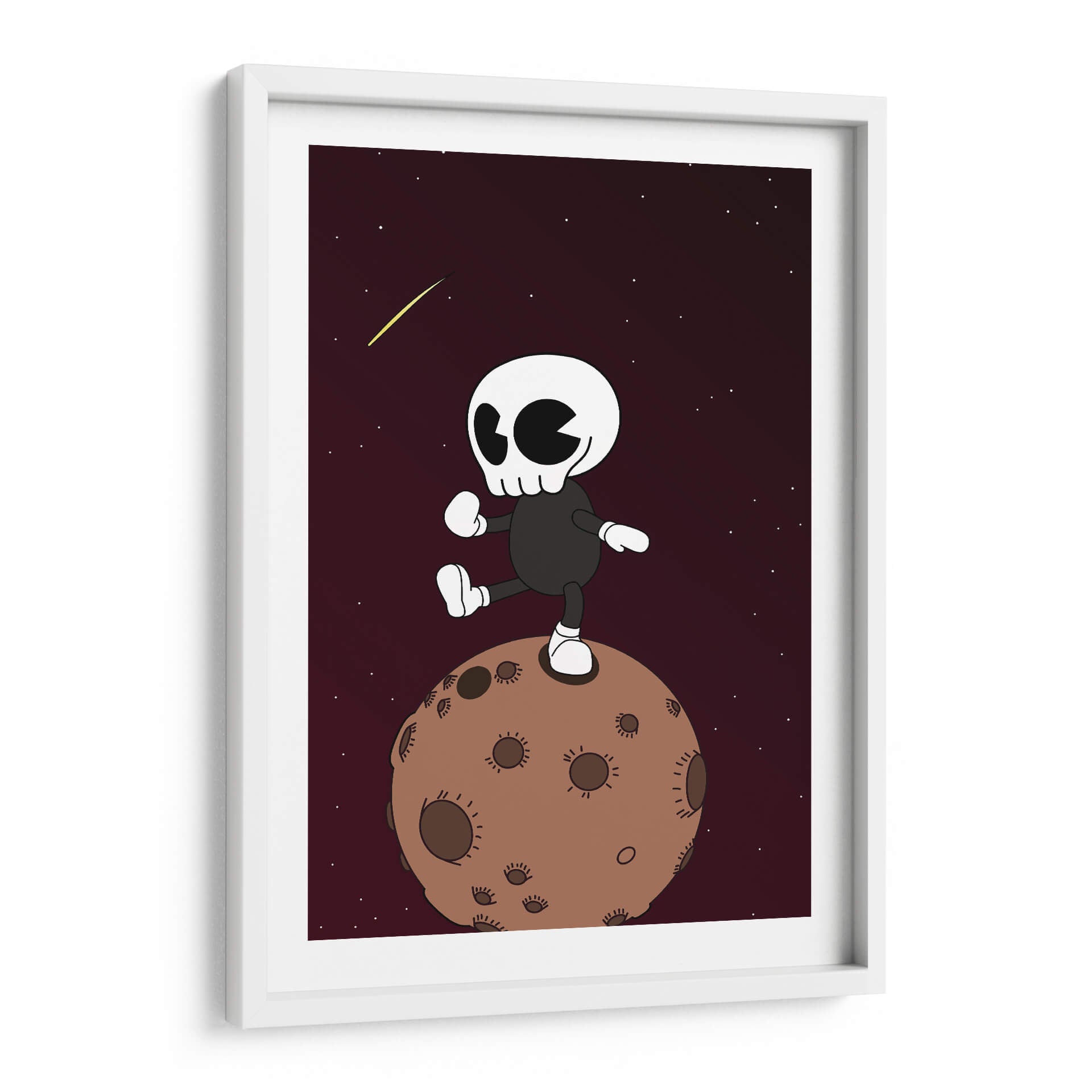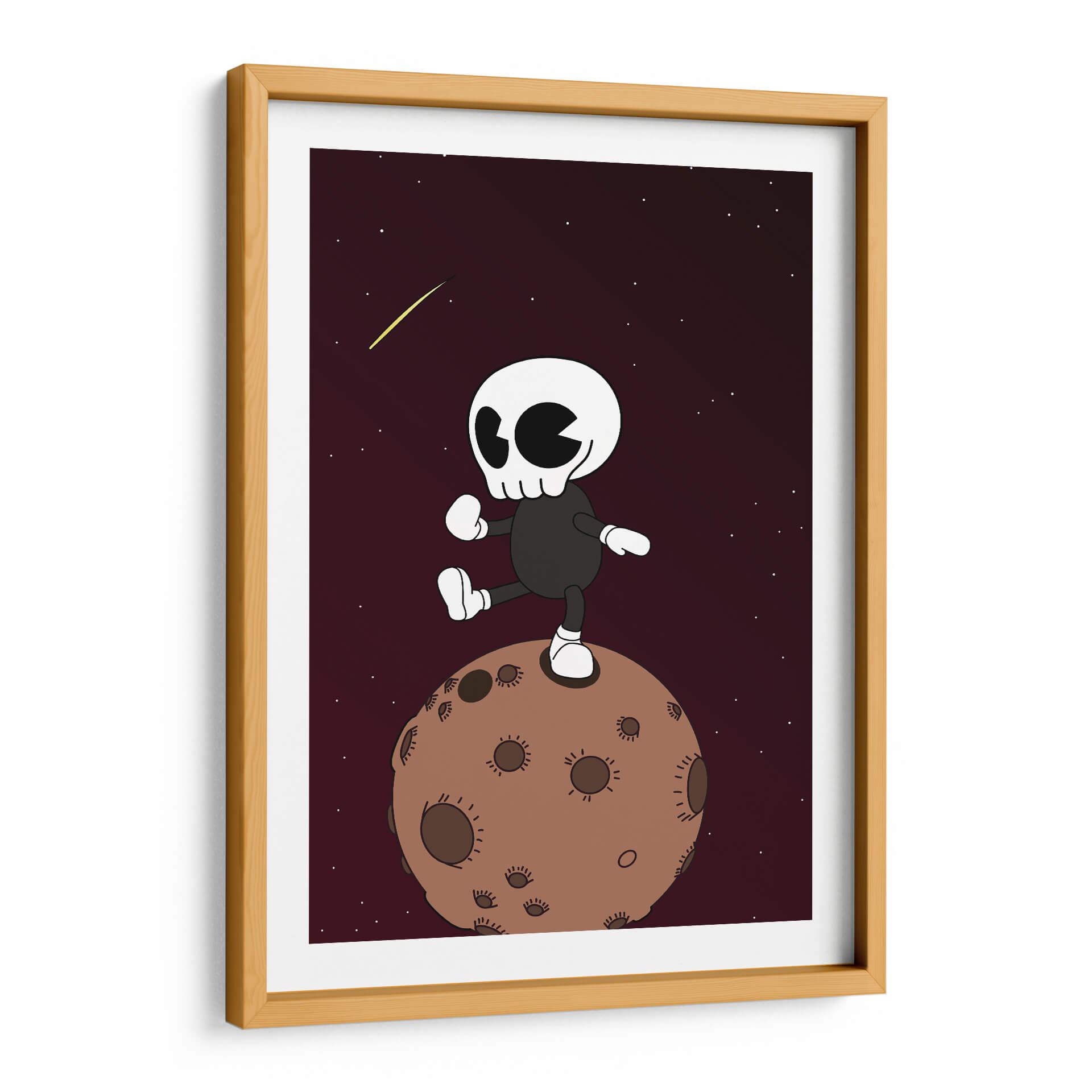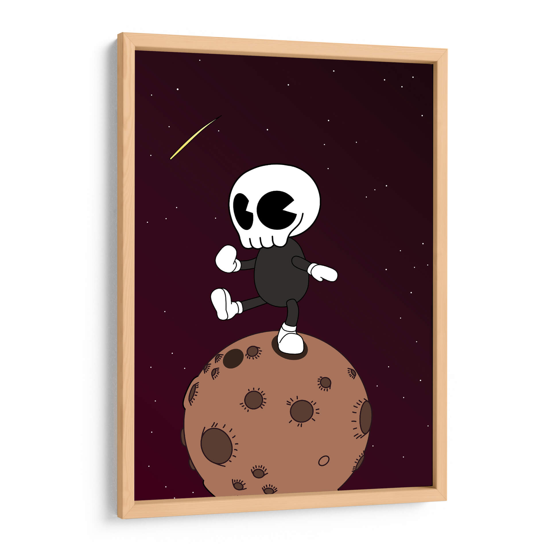 Embárcate en un viaje cósmico con el cuadro decorativo "Luna Kullws" de Khevth Art, una obra que fusiona lo enigmático con lo juguetón. Esta pieza cautivadora presenta una figura estilizada con cabeza de calavera, vestida con un traje oscuro y guantes blancos, dando un paso audaz sobre una superficie planetaria. El fondo, de un profundo color vino tinto salpicado de estrellas, evoca la vastedad del espacio, mientras que una estela de luz amarilla cruza el firmamento, sugiriendo movimiento y descubrimiento. La composición minimalista y el estilo de arte gráfico contemporáneo hacen de "Luna Kullws" una adición intrigante para cualquier espacio. Los contrastes nítidos entre el blanco brillante de la figura y el marrón terroso del planeta contra el oscuro fondo espacial crean un impacto visual inmediato. Esta obra es perfecta para quienes buscan infundir a su hogar u oficina una dosis de misterio y originalidad. Ideal para salas de estar modernas, estudios creativos o dormitorios con un toque vanguardista, este cuadro decorativo invita a la reflexión sobre la aventura y lo desconocido, añadiendo un punto focal único que despertará conversaciones.