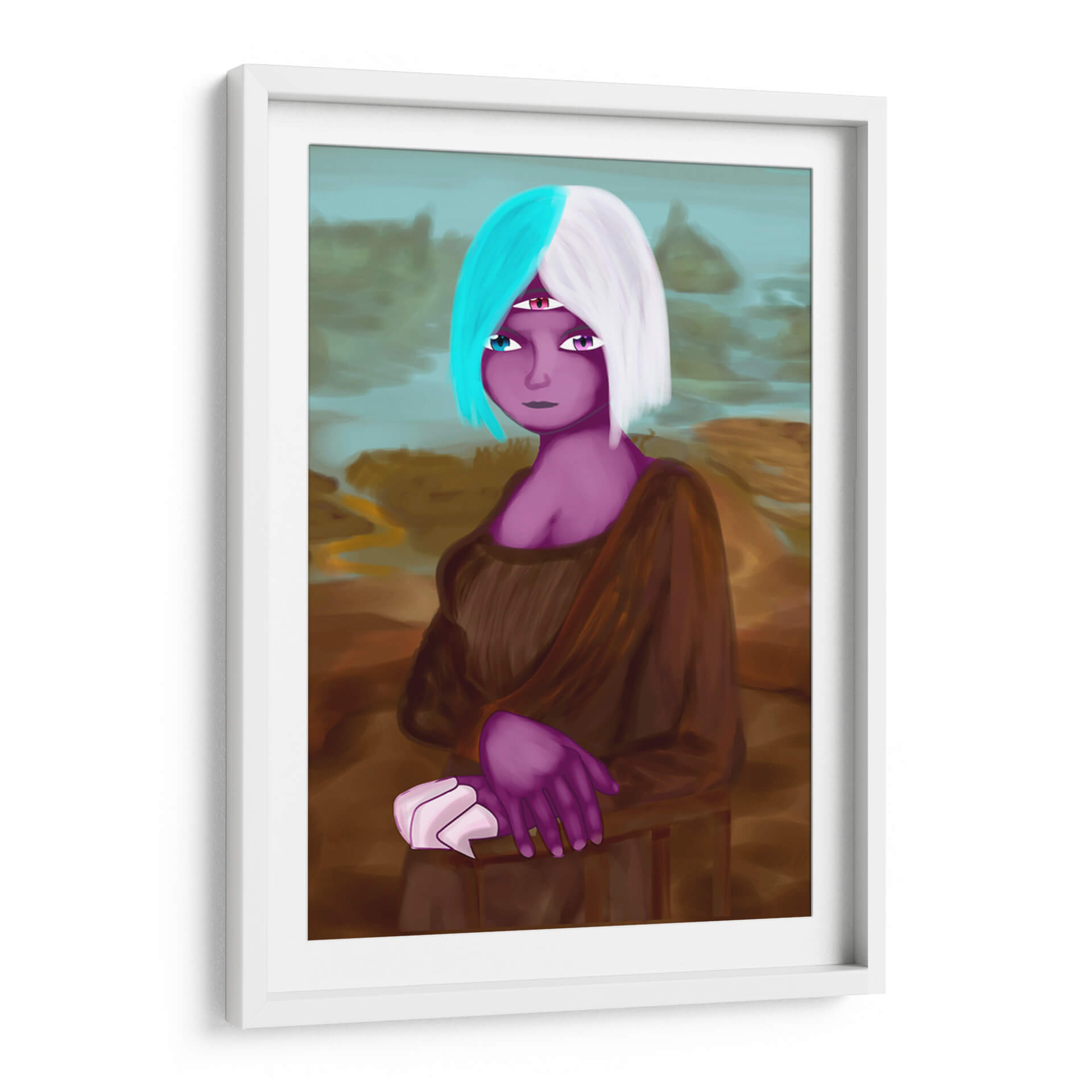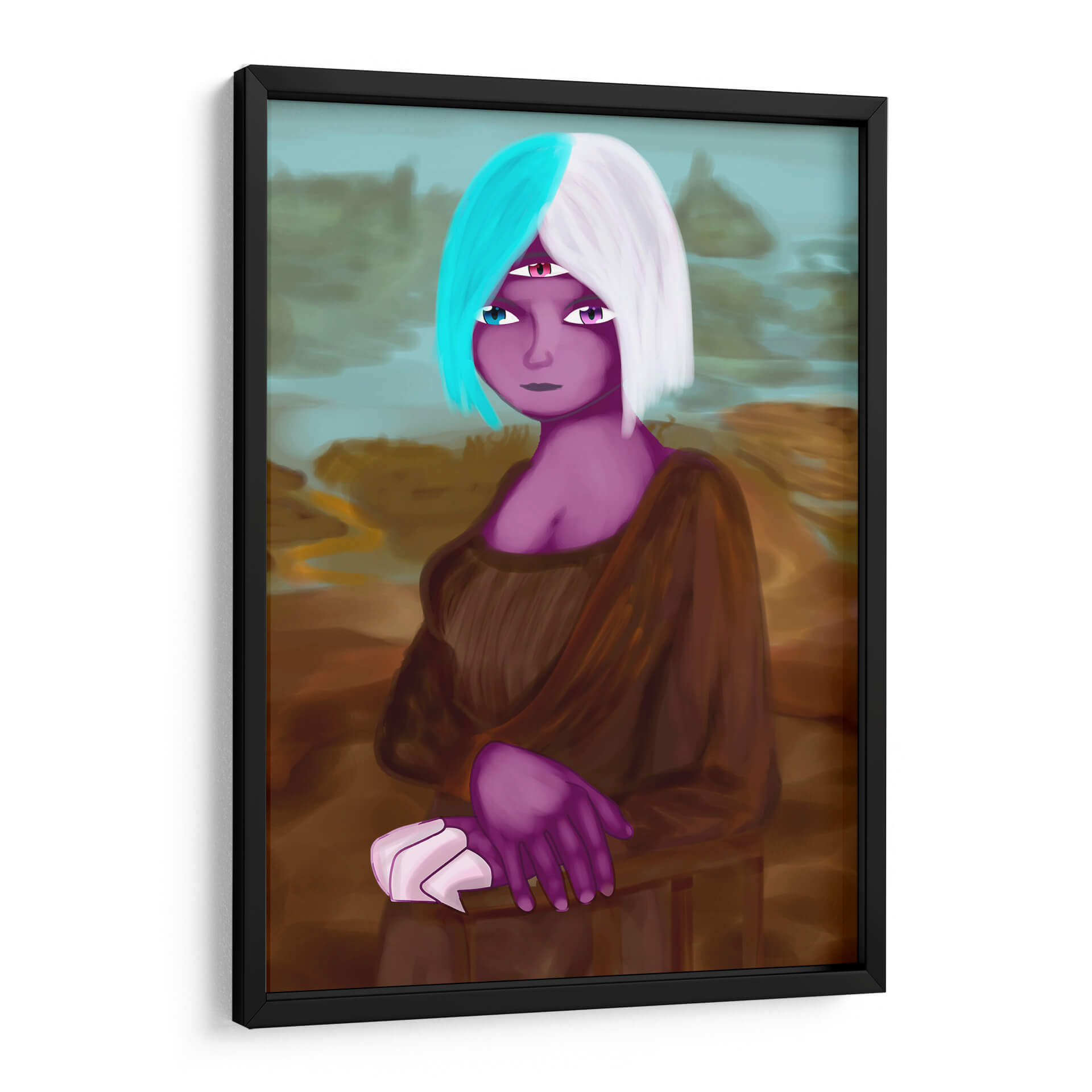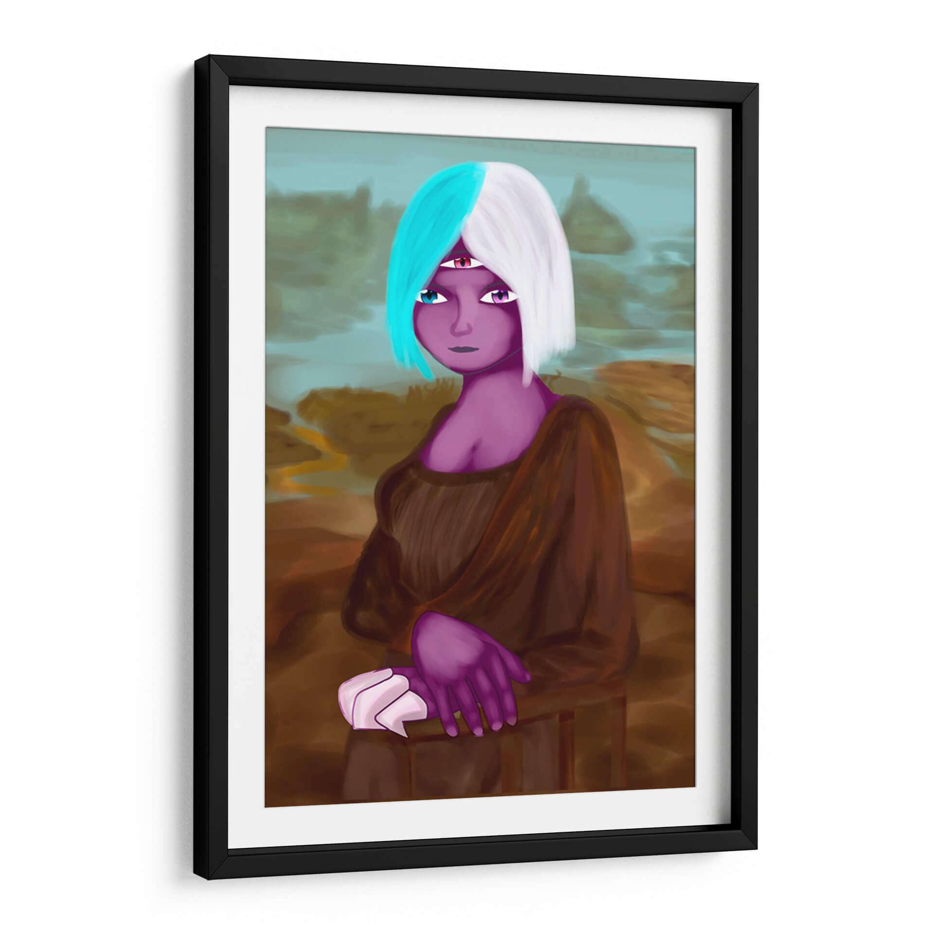 Sumérgete en el enigmático universo de "Mona Kiblan" de Charly Kaoz, una obra de arte digital que reimagina el icónico retrato con un giro surrealista y contemporáneo. Esta pieza cautiva la mirada con su figura central de piel púrpura y mirada penetrante, acentuada por tres ojos que añaden una dimensión mística y de introspección. Su cabello, dividido en vibrantes mechones turquesa y blancos puros, contrasta audazmente con la paleta de tonos tierra y ocres del paisaje de fondo, evocando una sensación de serenidad etérea y misterio. "Mona Kiblan" no es solo un cuadro decorativo; es una invitación a explorar la dualidad y la percepción, ideal para quienes buscan añadir un toque de originalidad y profundidad a sus espacios. Su estilo neo-surrealista la convierte en una pieza focal perfecta para salas de estar modernas, estudios creativos u oficinas que buscan inspirar conversaciones y reflejar un gusto vanguardista. Añade esta pieza única a tu colección y transforma cualquier habitación en una galería personal que despierte la imaginación.