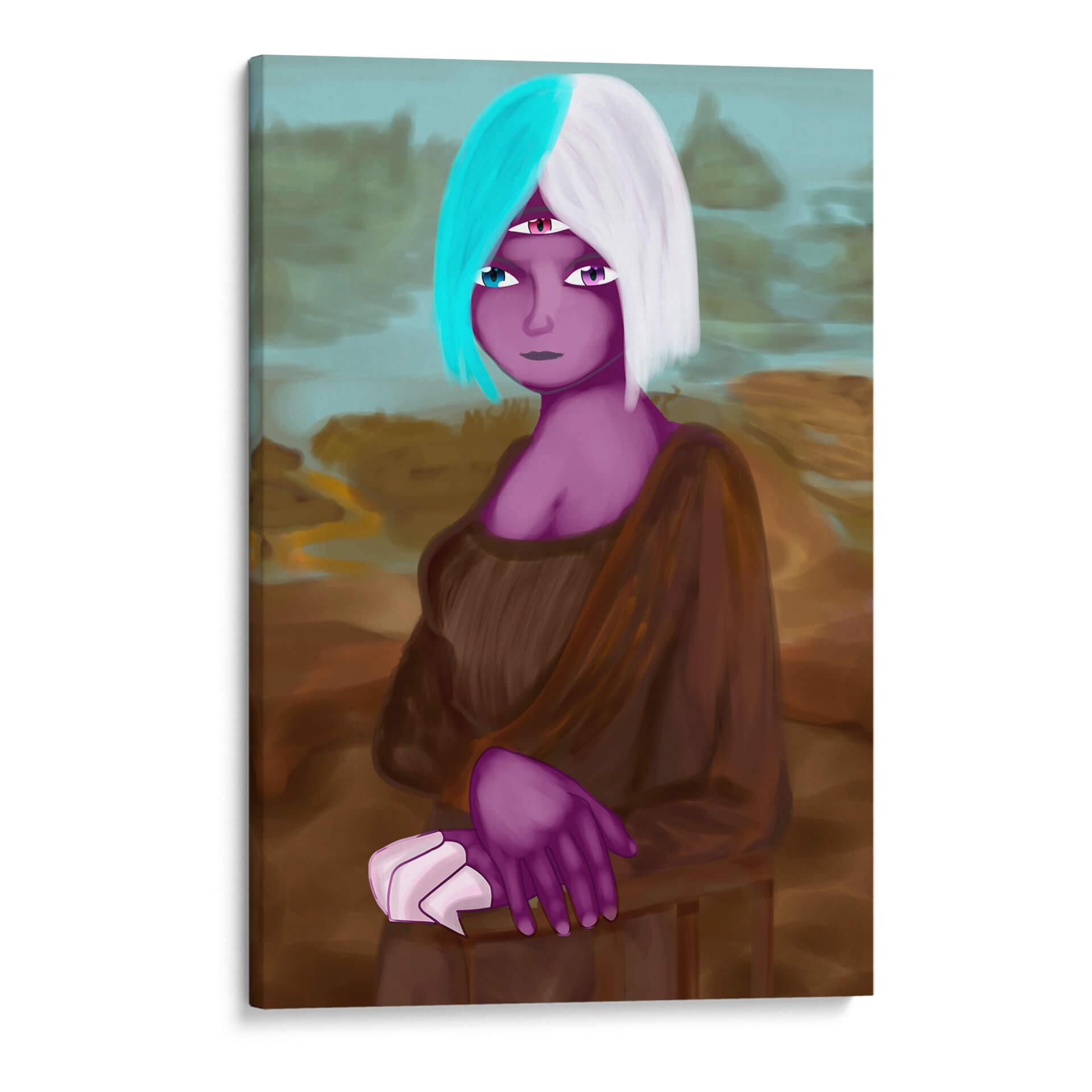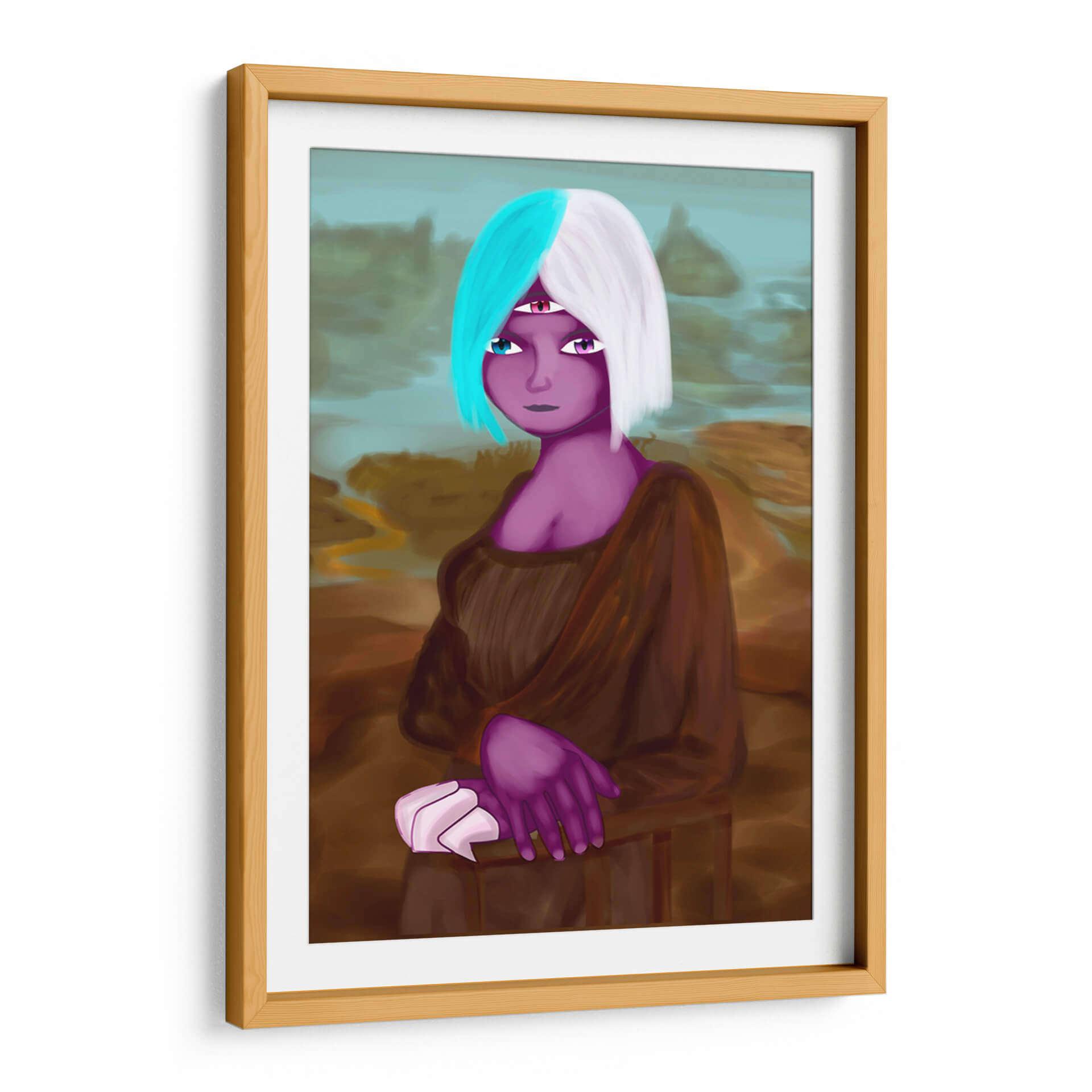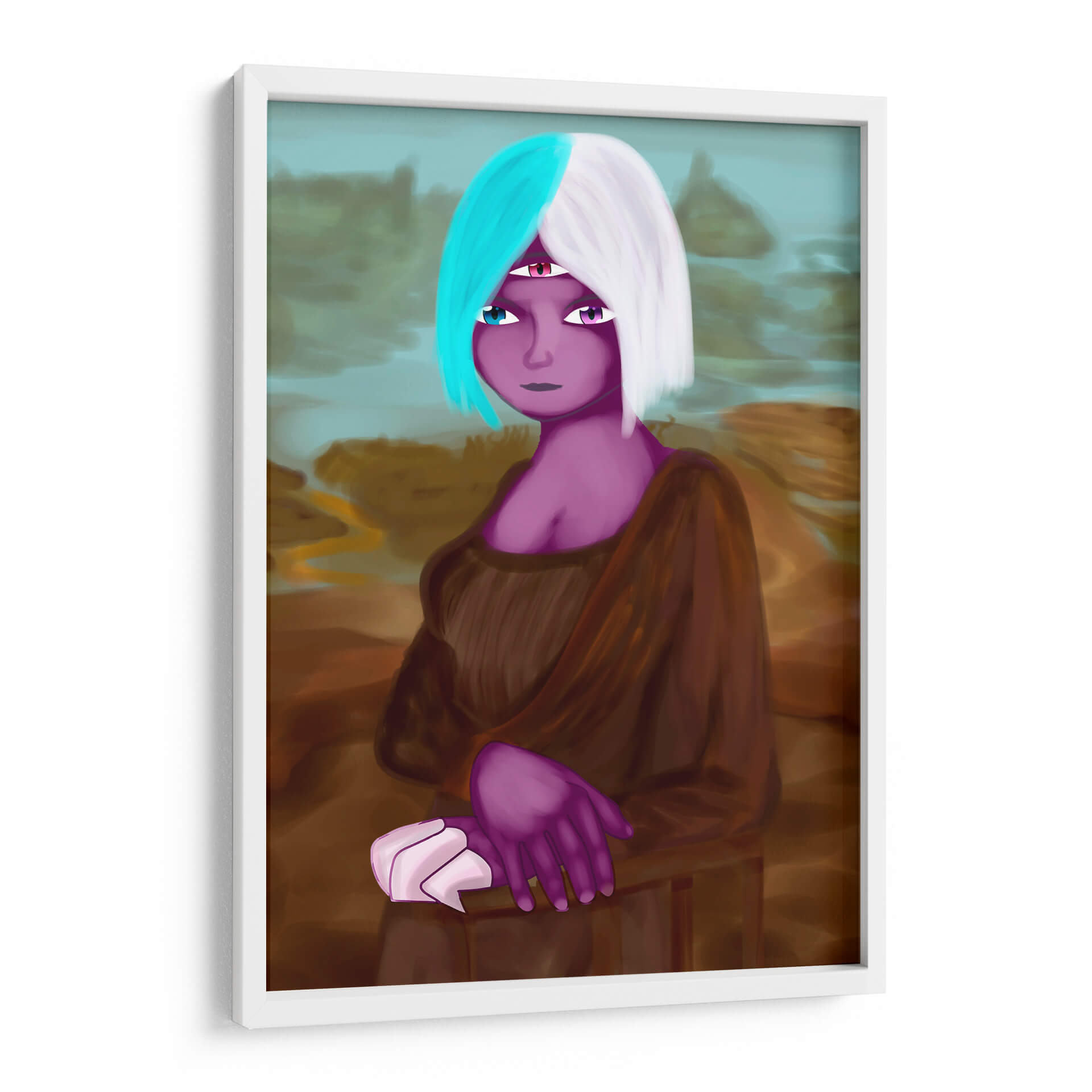 Sumérgete en el enigmático universo de "Mona Kiblan" de Charly Kaoz, una obra de arte digital que reimagina el icónico retrato con un giro surrealista y contemporáneo. Esta pieza cautiva la mirada con su figura central de piel púrpura y mirada penetrante, acentuada por tres ojos que añaden una dimensión mística y de introspección. Su cabello, dividido en vibrantes mechones turquesa y blancos puros, contrasta audazmente con la paleta de tonos tierra y ocres del paisaje de fondo, evocando una sensación de serenidad etérea y misterio. "Mona Kiblan" no es solo un cuadro decorativo; es una invitación a explorar la dualidad y la percepción, ideal para quienes buscan añadir un toque de originalidad y profundidad a sus espacios. Su estilo neo-surrealista la convierte en una pieza focal perfecta para salas de estar modernas, estudios creativos u oficinas que buscan inspirar conversaciones y reflejar un gusto vanguardista. Añade esta pieza única a tu colección y transforma cualquier habitación en una galería personal que despierte la imaginación.
