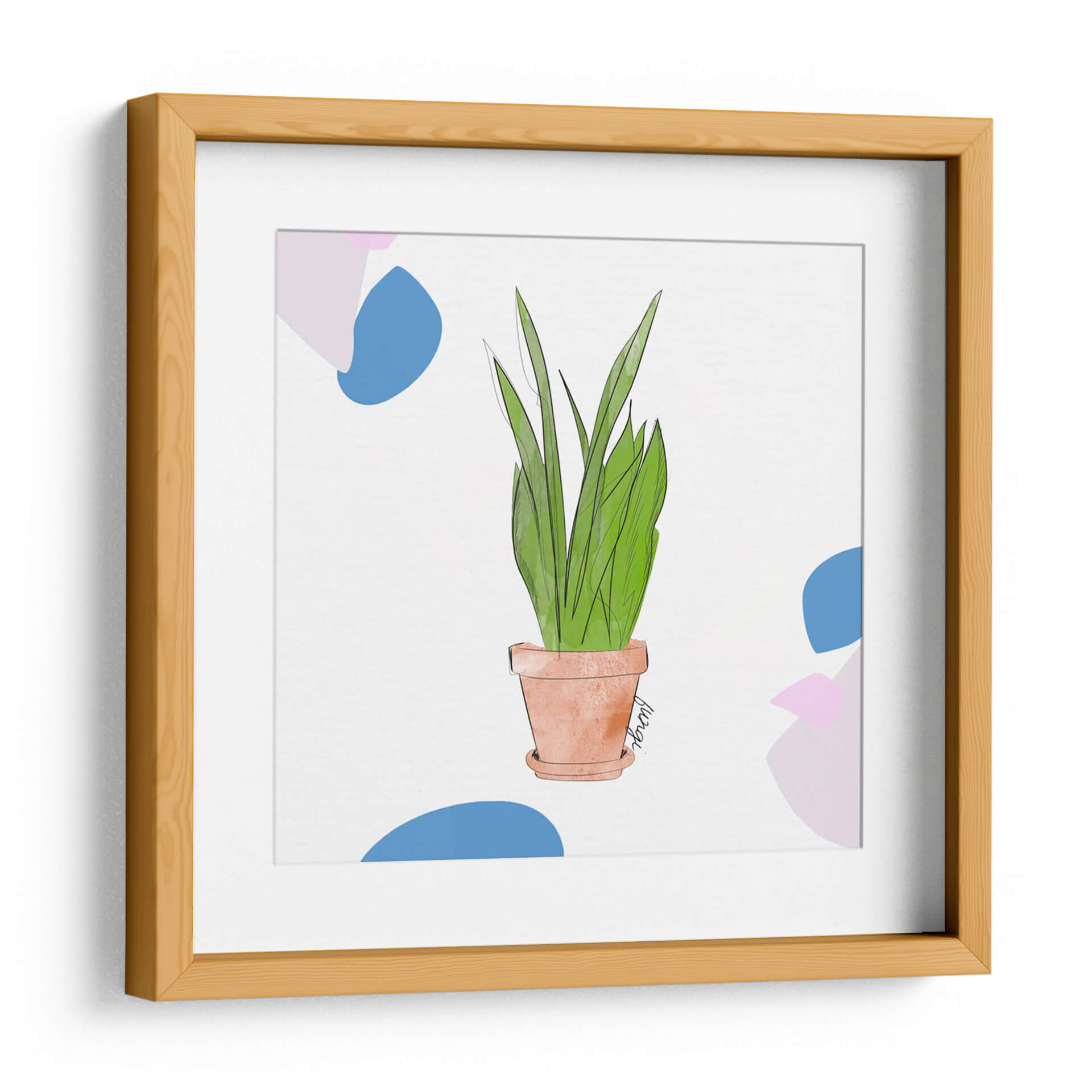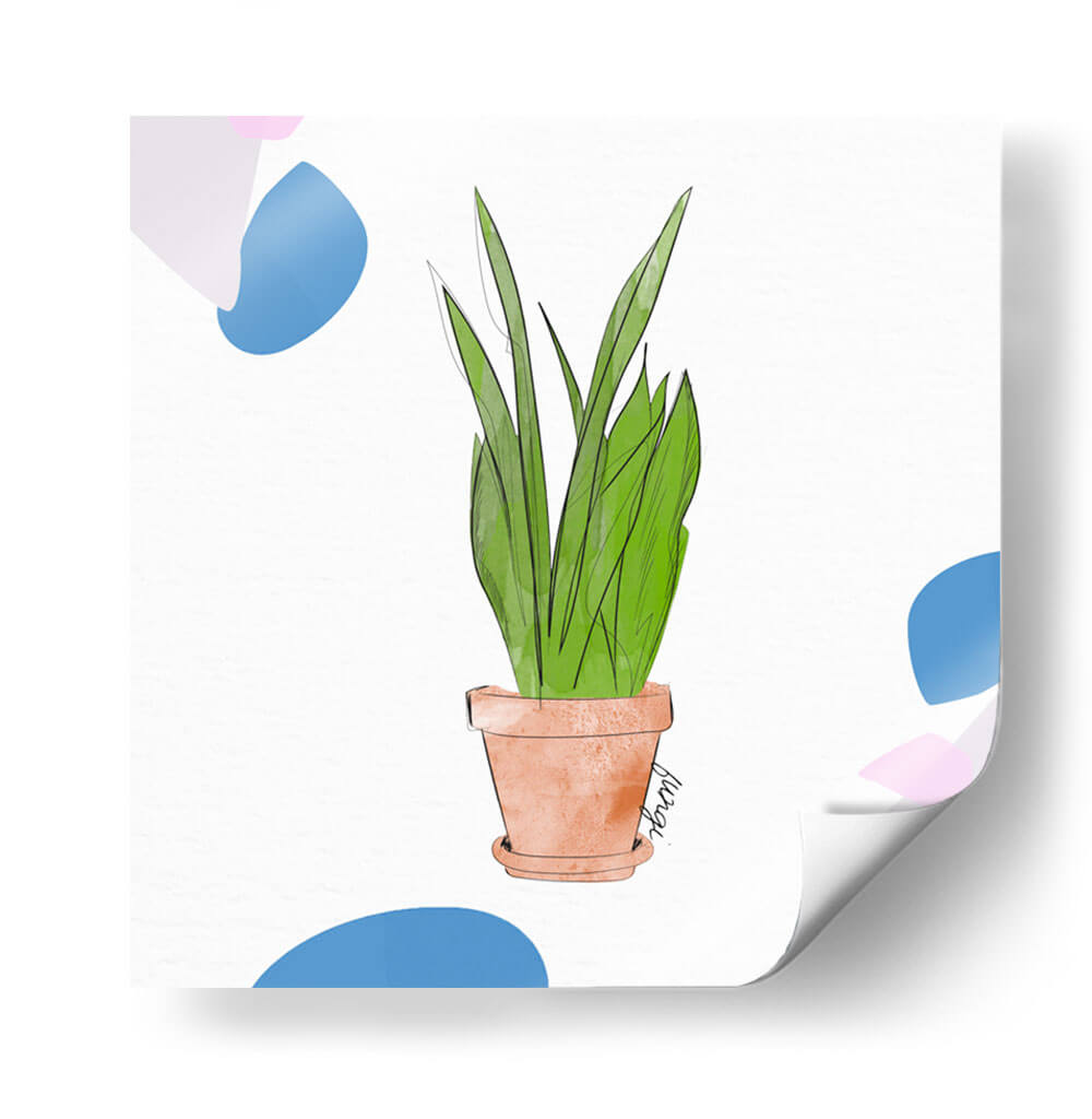Sumérgete en la frescura botánica con este cautivador cuadro decorativo de una planta de serpiente, también conocida como Sansevieria. La obra presenta una representación estilizada y moderna de esta popular planta de interior, con sus características hojas alargadas y esbeltas, pintadas en vibrantes tonos de verde que transmiten vitalidad y crecimiento. El detalle de las hojas, con un contorno negro audaz y un sombreado acuarelado, le otorga una textura visual interesante y un aire de dibujo a mano alzada. La planta se asienta en una maceta de terracota, cuyo color cálido y terroso contrasta sutilmente con el verdor, anclando la composición. El fondo neutro y texturizado se ve realzado por formas orgánicas y abstractas en tonos pastel de rosa y azul, que añaden un toque contemporáneo y lúdico sin distraer del sujeto principal. Esta pieza es ideal para espacios que buscan un toque de naturaleza y serenidad, aportando vida y un aire de simplicidad elegante a cualquier habitación, desde un salón moderno hasta una oficina minimalista o un dormitorio tranquilo. Su estilo combina lo botánico con lo abstracto, resultando en una decoración de pared única que inspira calma y frescura.