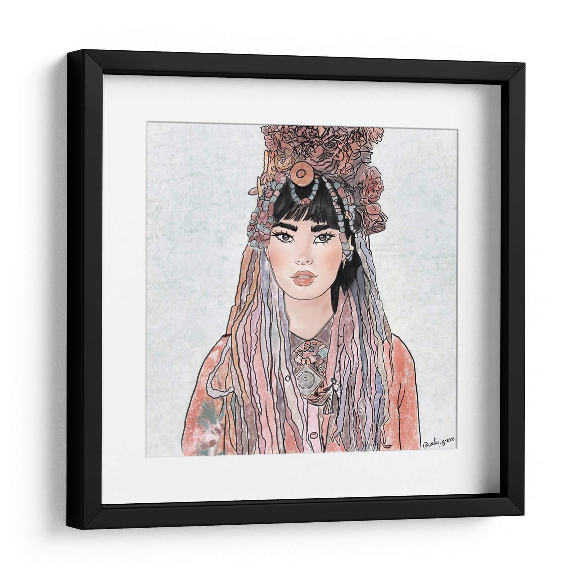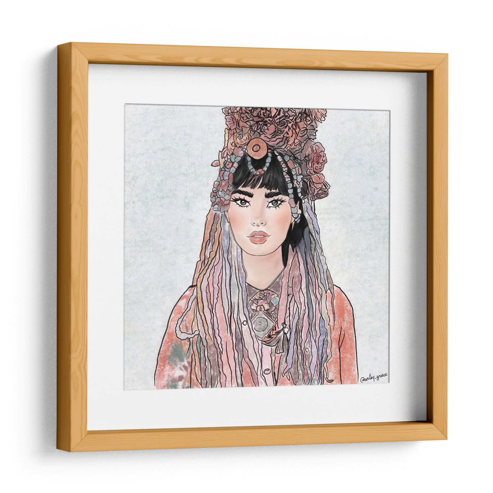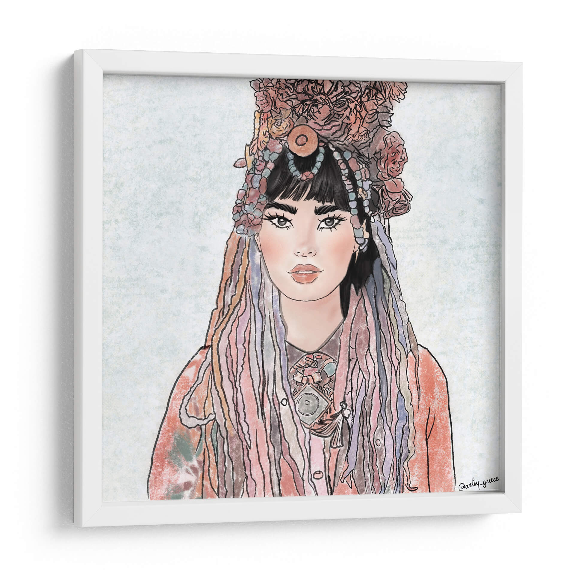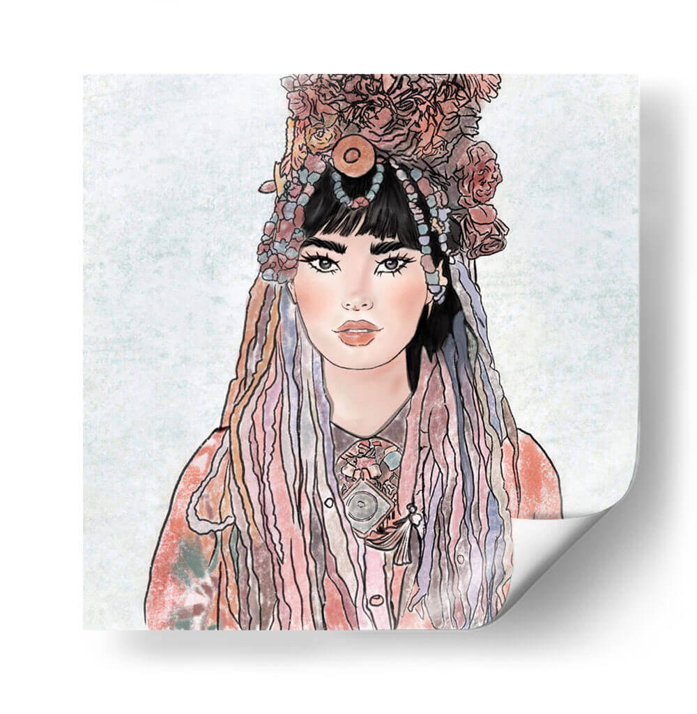 Sumérgete en la enigmática belleza de "Princesa Oriental", una obra de arte digital que evoca un aura de misterio y elegancia. Esta pieza cautivadora presenta el retrato estilizado de una joven con un elaboradísimo tocado floral y adornos tribales, cuyas largas y fluidas hebras de cabello caen como cascadas de color. La paleta cromática se centra en tonos pastel y terrosos, con delicados toques de coral y melocotón que aportan calidez y sofisticación. La técnica de ilustración, que combina trazos finos y definidos con un acabado texturizado, otorga a la obra un carácter único y contemporáneo. La mirada introspectiva de la protagonista y la riqueza de los detalles en su atuendo sugieren una narrativa sutil, invitando a la reflexión y a la contemplación. Este cuadro decorativo es perfecto para añadir un toque de distinción y personalidad a cualquier espacio, ya sea una sala de estar moderna, un dormitorio acogedor o un estudio creativo. "Princesa Oriental" no es solo una decoración de pared, sino una ventana a un mundo de fantasía y encanto, ideal para quienes buscan piezas de arte que inspiren y transmitan emociones.