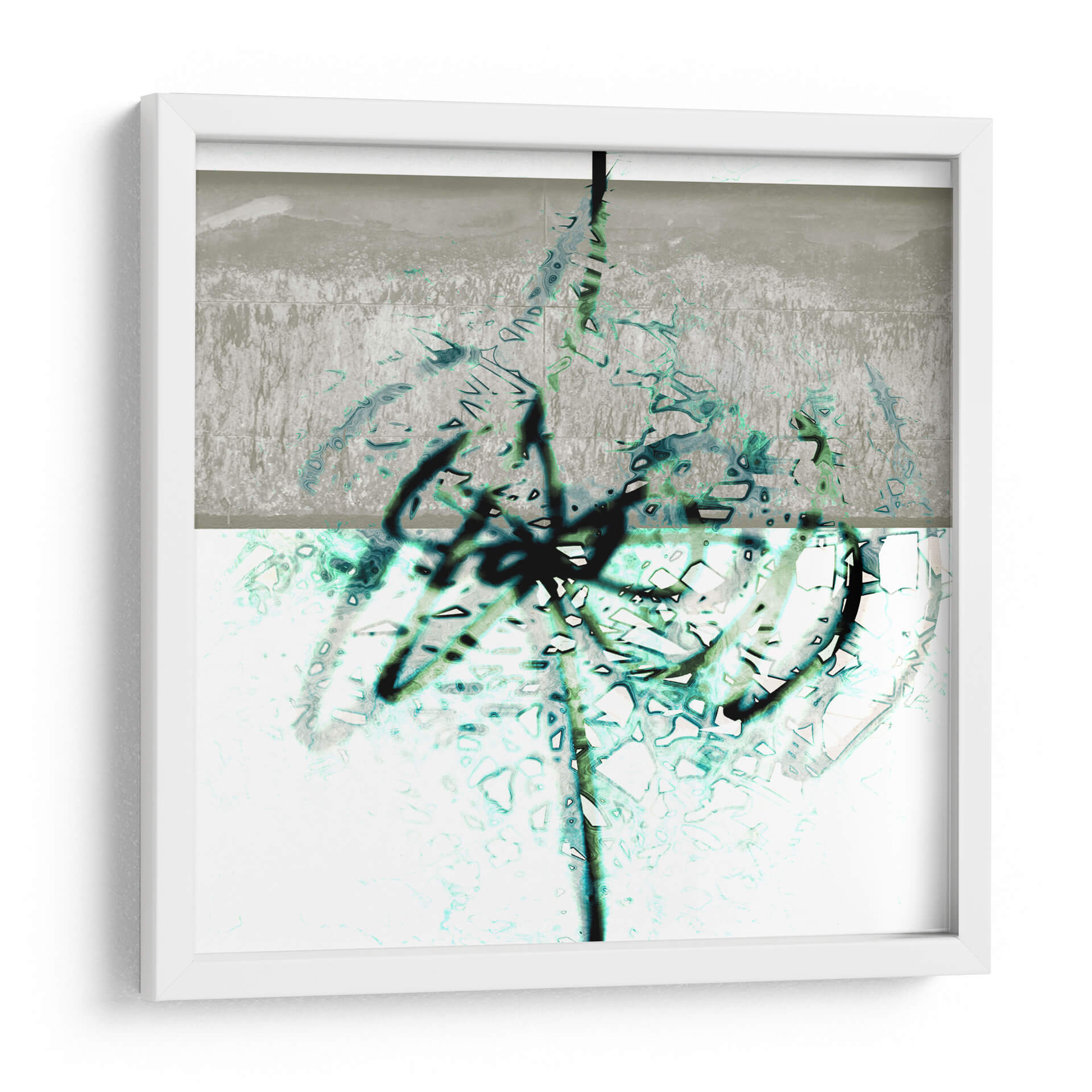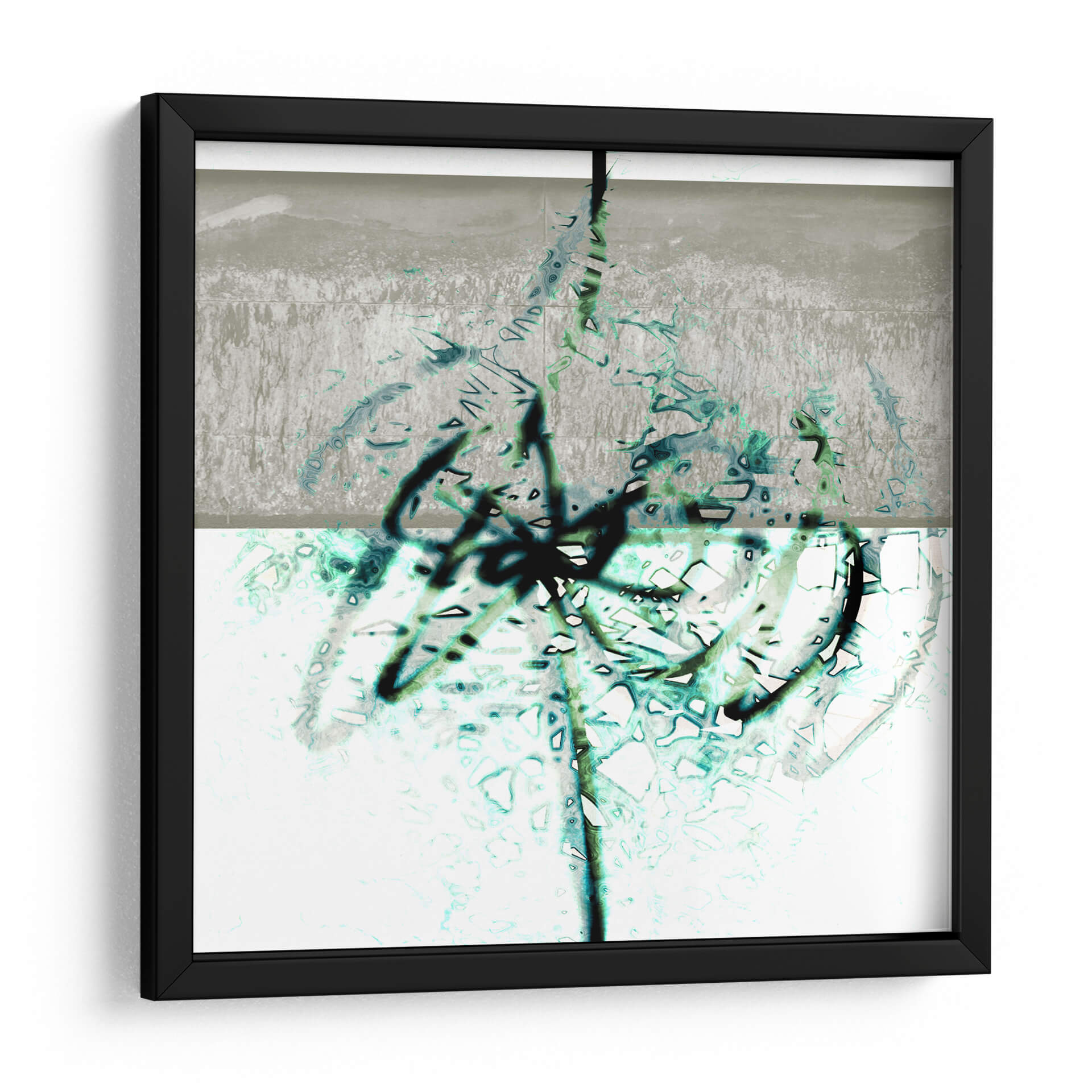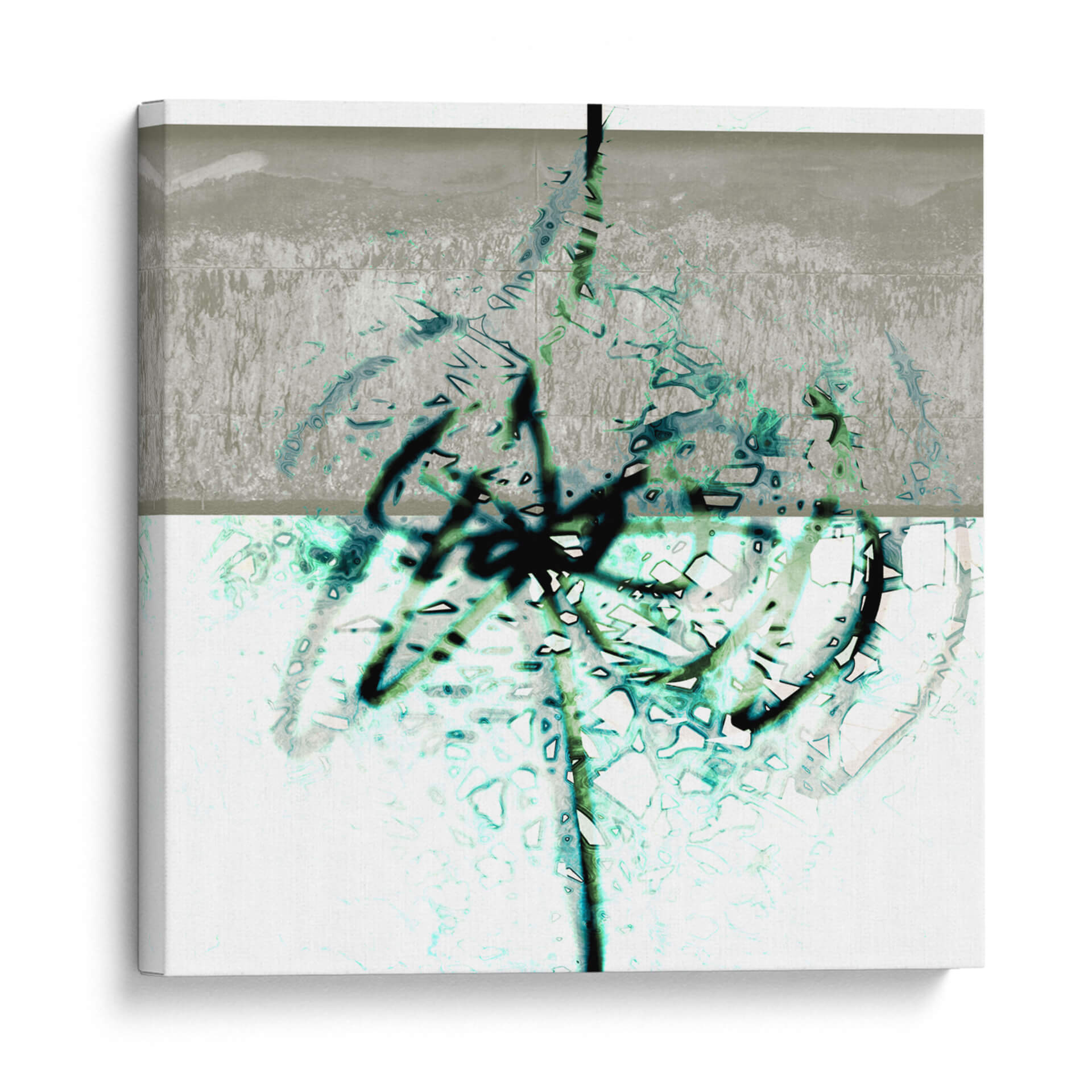 Sumérgete en la profundidad y el dinamismo de 'Textura 2', una obra de arte abstracto que cautiva por su audaz exploración de formas y colores. El artista LAGUREN presenta una composición dividida en dos planos, donde un área superior de tonos grises y texturas rugosas da paso a una sección inferior de base blanca, enriquecida con vibrantes trazos en azul verdoso y negro. Estos trazos, que parecen evocar la fluidez de la tinta o la espontaneidad del grafiti, crean un contraste fascinante con las sutiles texturas y el fondo claro. La obra transmite una sensación de energía contenida y movimiento orgánico, invitando a la contemplación. Ideal para espacios modernos y contemporáneos, este cuadro decorativo es perfecto para añadir un toque de sofisticación abstracta a salones, oficinas o estudios. Su paleta de colores, aunque limitada, es impactante, combinando la neutralidad del gris y el blanco con la vitalidad del azul verdoso y la audacia del negro. 'Textura 2' es más que una simple decoración; es una ventana a la expresión artística contemporánea que dialoga con el espectador, creando ambientes llenos de carácter e intriga.