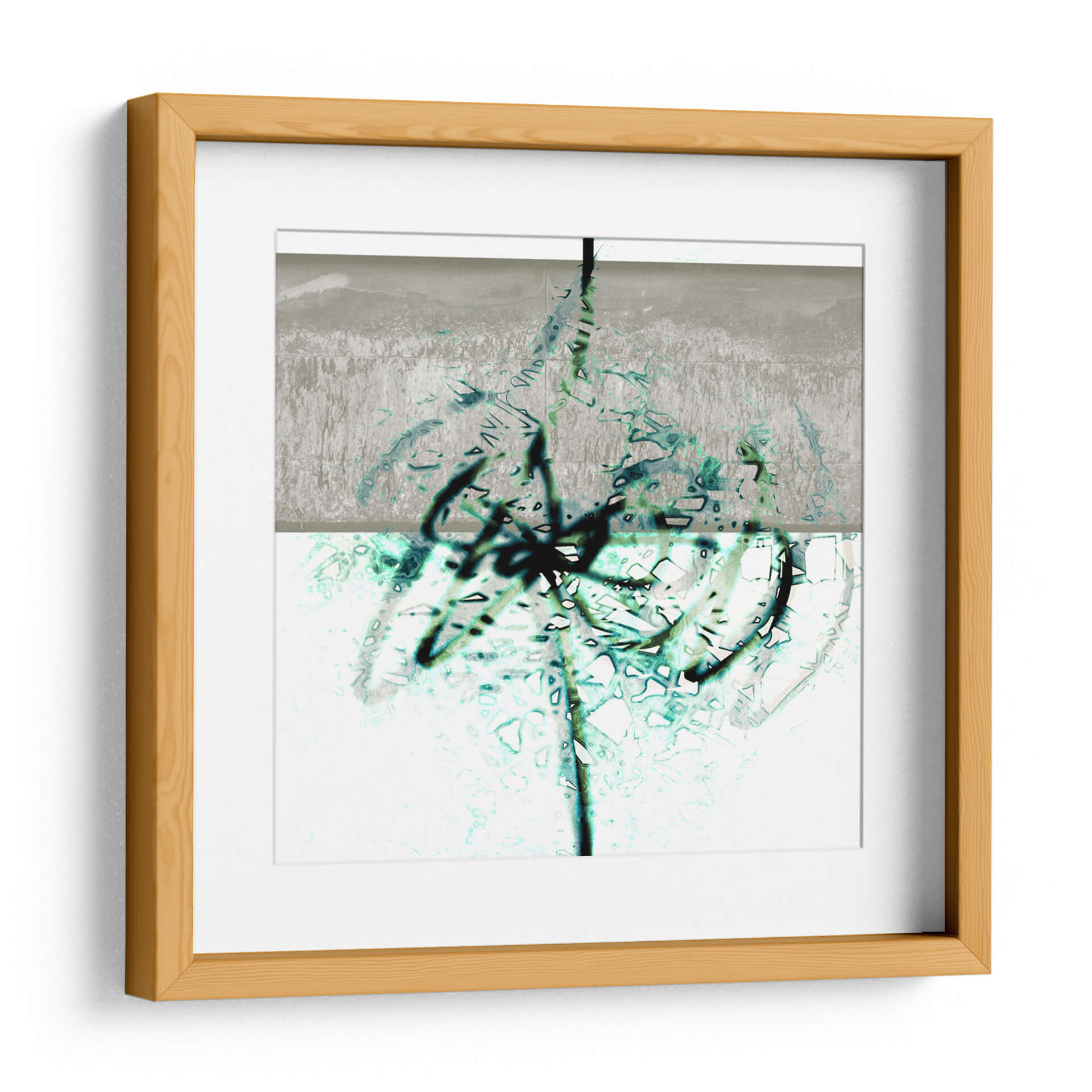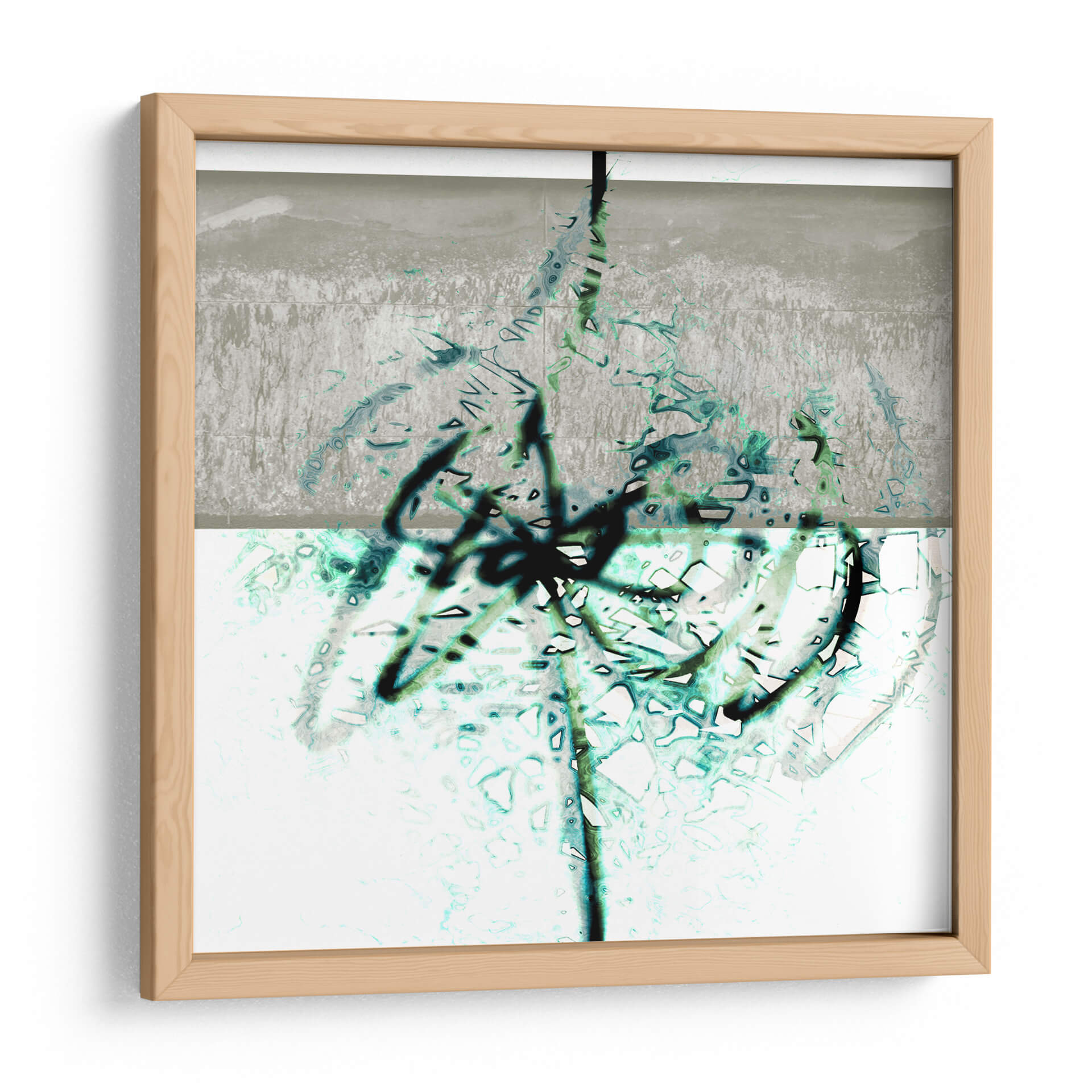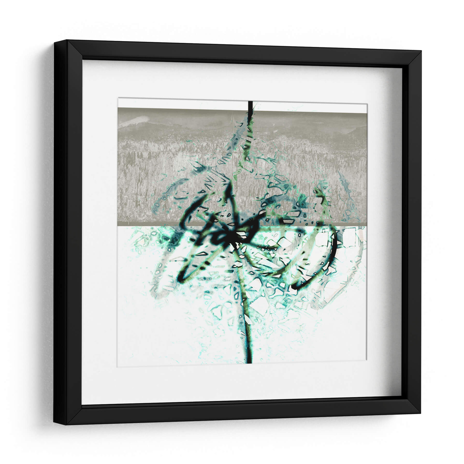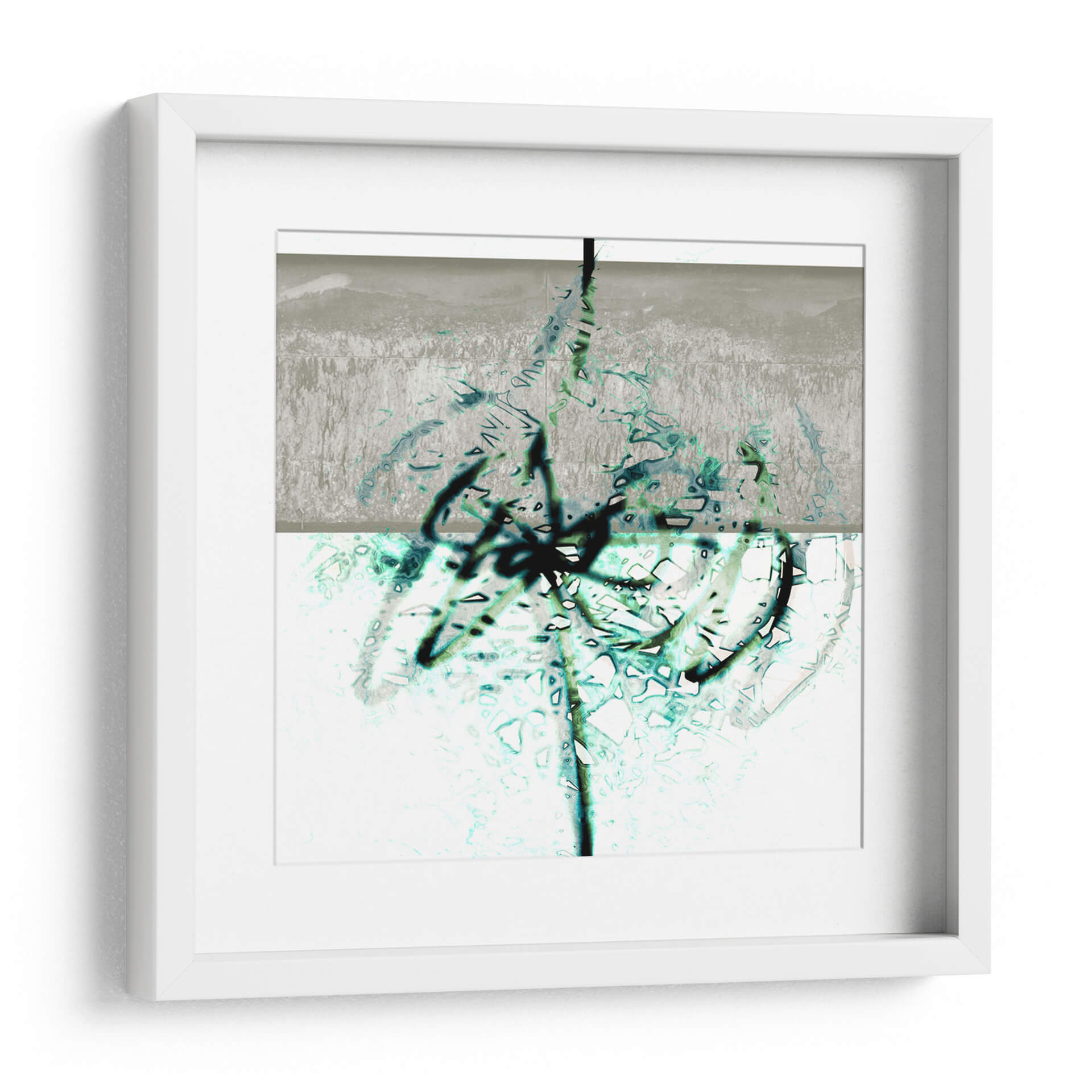 Sumérgete en la profundidad y el dinamismo de 'Textura 2', una obra de arte abstracto que cautiva por su audaz exploración de formas y colores. El artista LAGUREN presenta una composición dividida en dos planos, donde un área superior de tonos grises y texturas rugosas da paso a una sección inferior de base blanca, enriquecida con vibrantes trazos en azul verdoso y negro. Estos trazos, que parecen evocar la fluidez de la tinta o la espontaneidad del grafiti, crean un contraste fascinante con las sutiles texturas y el fondo claro. La obra transmite una sensación de energía contenida y movimiento orgánico, invitando a la contemplación. Ideal para espacios modernos y contemporáneos, este cuadro decorativo es perfecto para añadir un toque de sofisticación abstracta a salones, oficinas o estudios. Su paleta de colores, aunque limitada, es impactante, combinando la neutralidad del gris y el blanco con la vitalidad del azul verdoso y la audacia del negro. 'Textura 2' es más que una simple decoración; es una ventana a la expresión artística contemporánea que dialoga con el espectador, creando ambientes llenos de carácter e intriga.