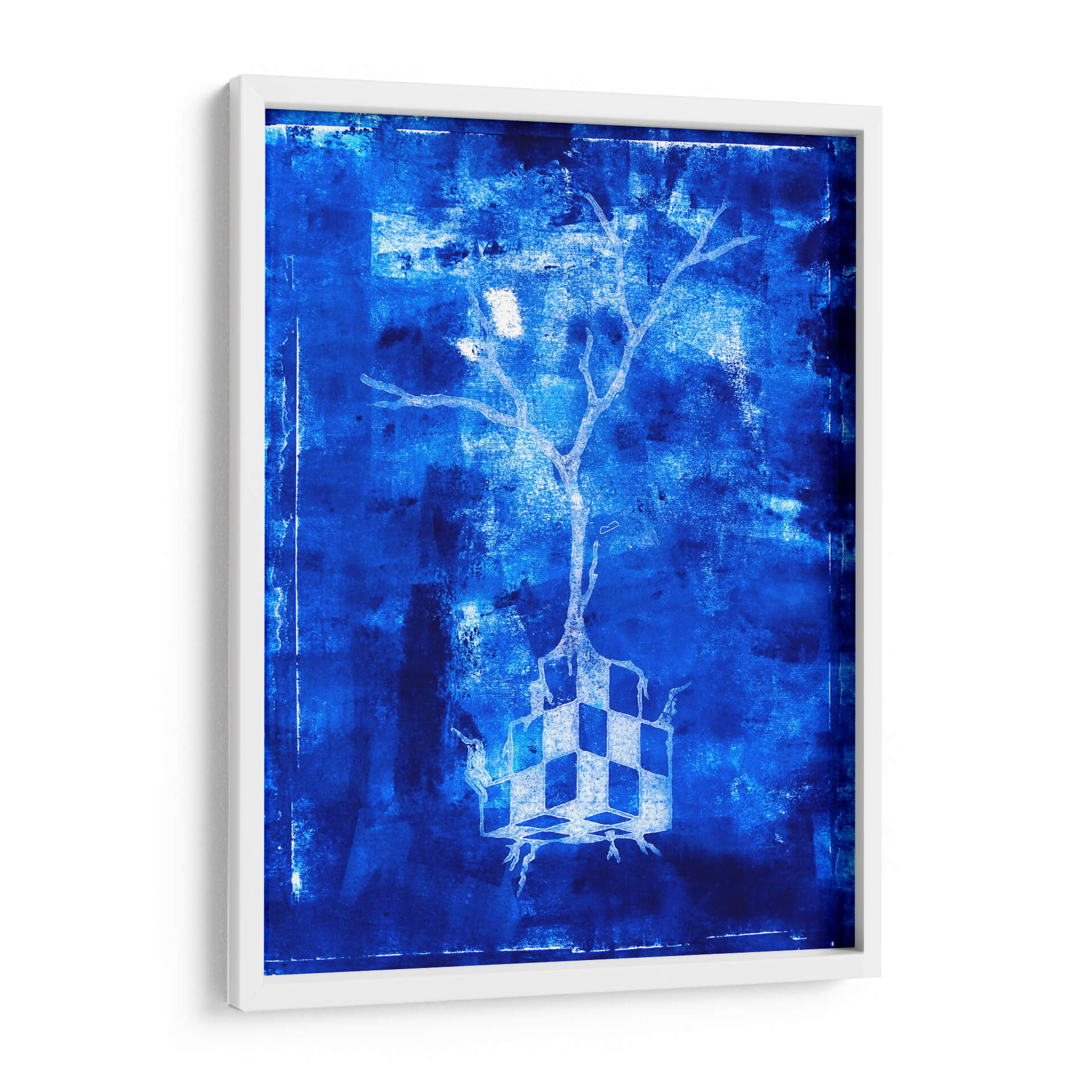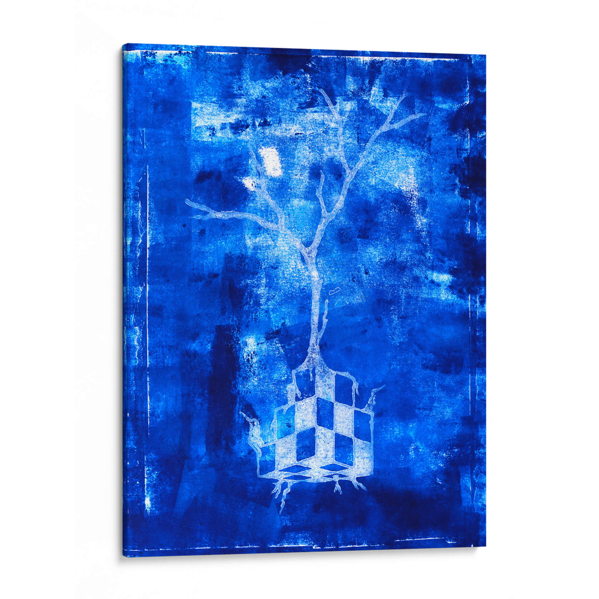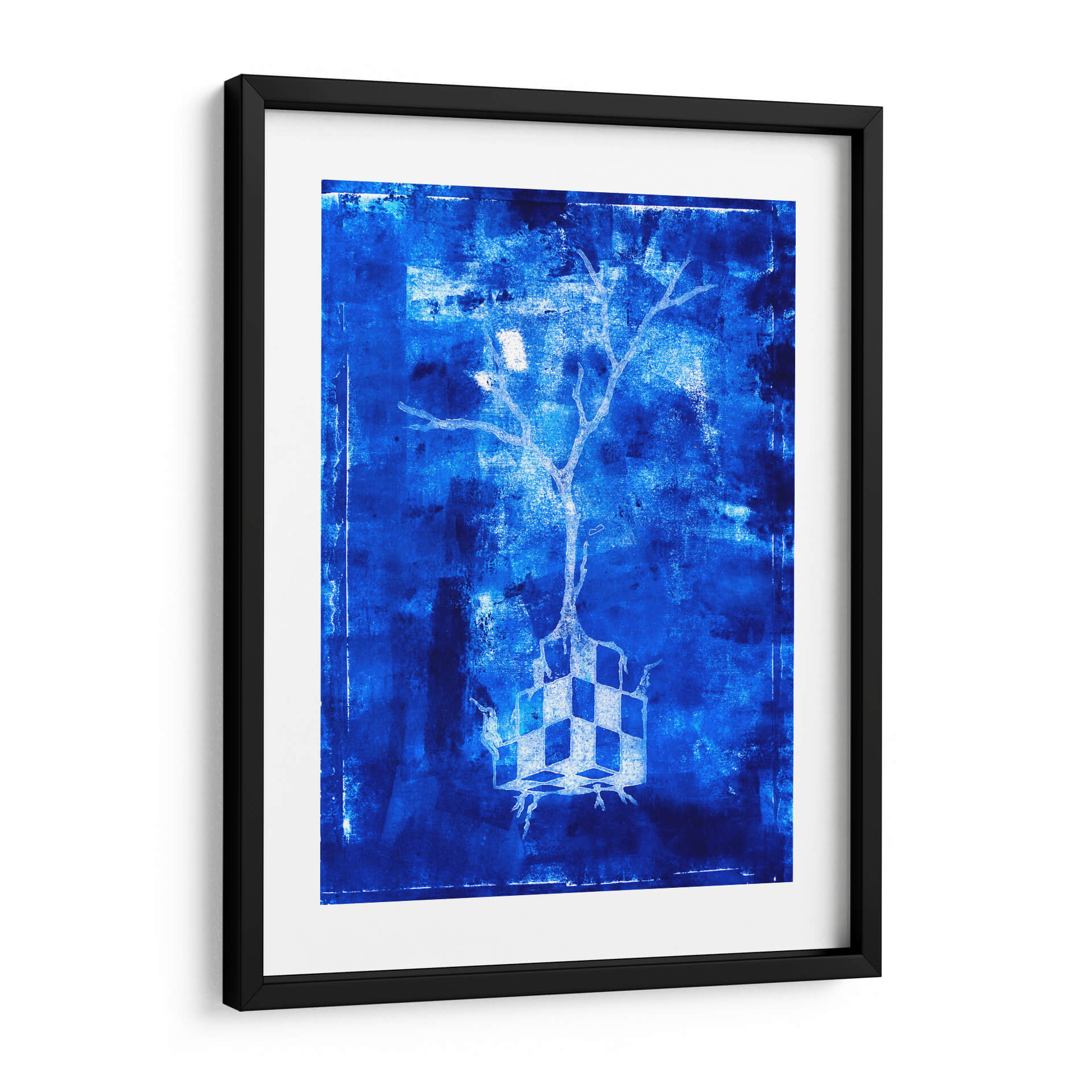 Sumérgete en la profundidad del azul con "The Cube", una cautivadora obra de arte de Mauricio Silerio. Este cuadro decorativo abstracto presenta una vibrante paleta de intensos tonos azules, creando una atmósfera de misterio y serenidad. En el centro, una figura estilizada que evoca un árbol florece desde una base geométrica en forma de cubo a cuadros, todo ello representado en un delicado blanco sobre el saturado fondo azul. La técnica sugiere una impresión o un collage digital, con texturas que añaden una dimensión intrigante. La composición es equilibrada, atrayendo la mirada hacia el contraste entre la figura etérea y el poderoso telón de fondo cromático. Ideal para espacios que buscan un toque de sofisticación contemporánea y contemplación, este cuadro abstracto es perfecto para salas de estar modernas, estudios o cualquier lugar donde se desee evocar calma y reflexión. Aporta una dosis de arte moderno y abstracto a tu decoración, convirtiendo tu pared en un lienzo de expresión artística.