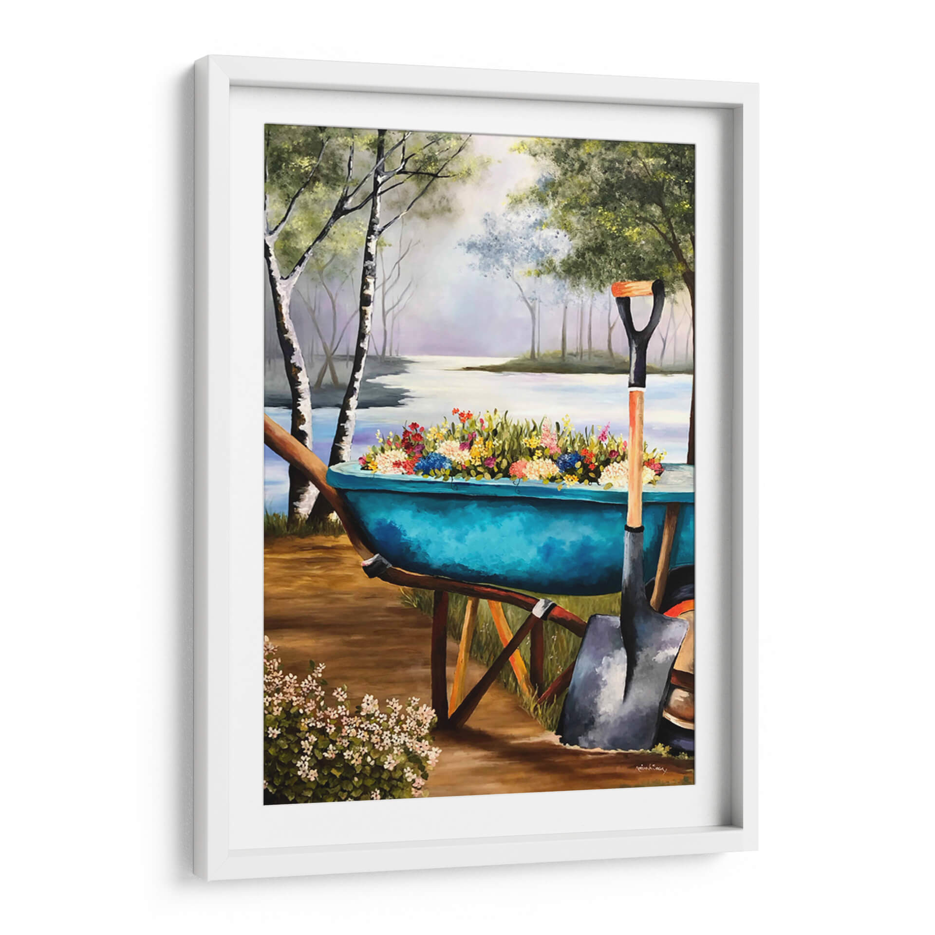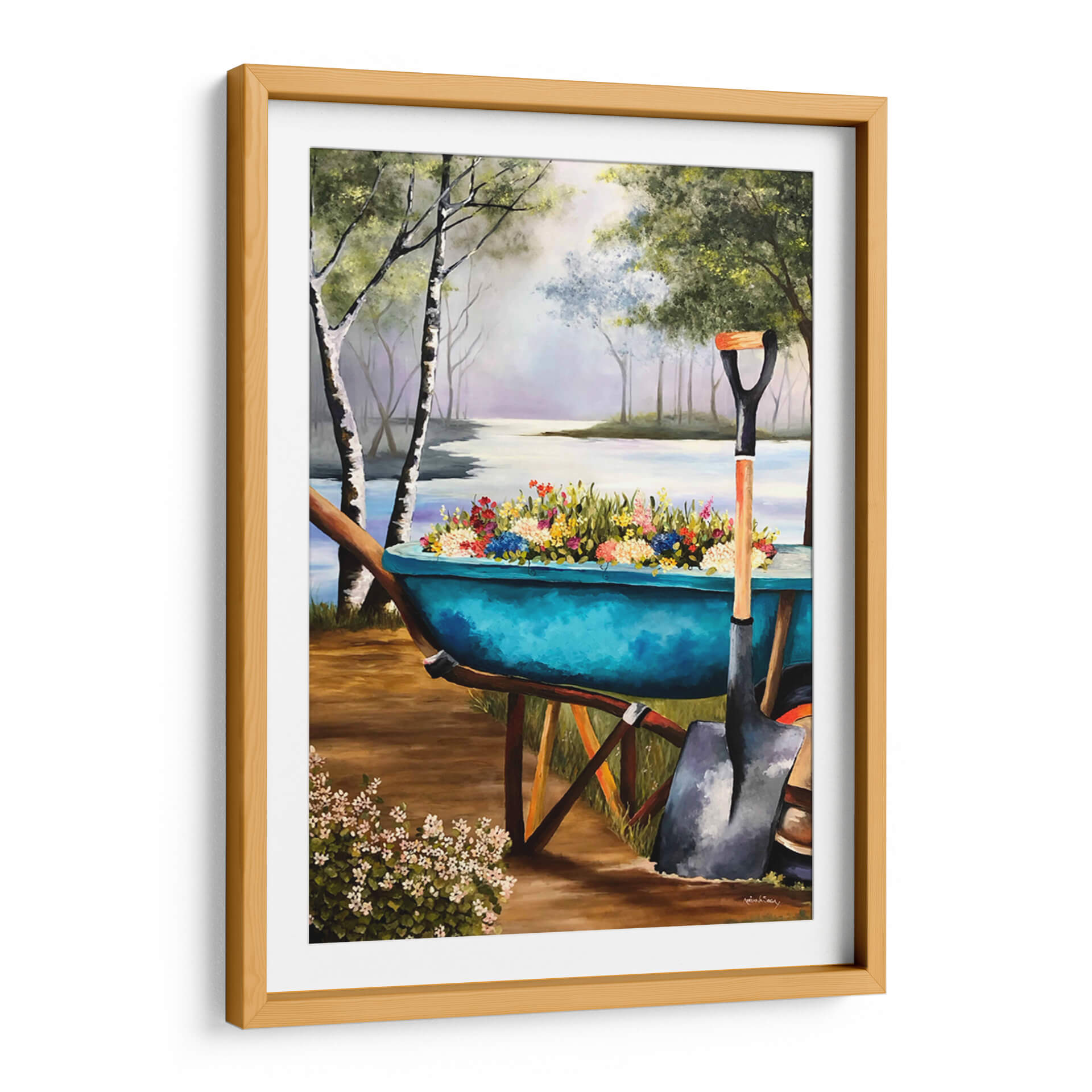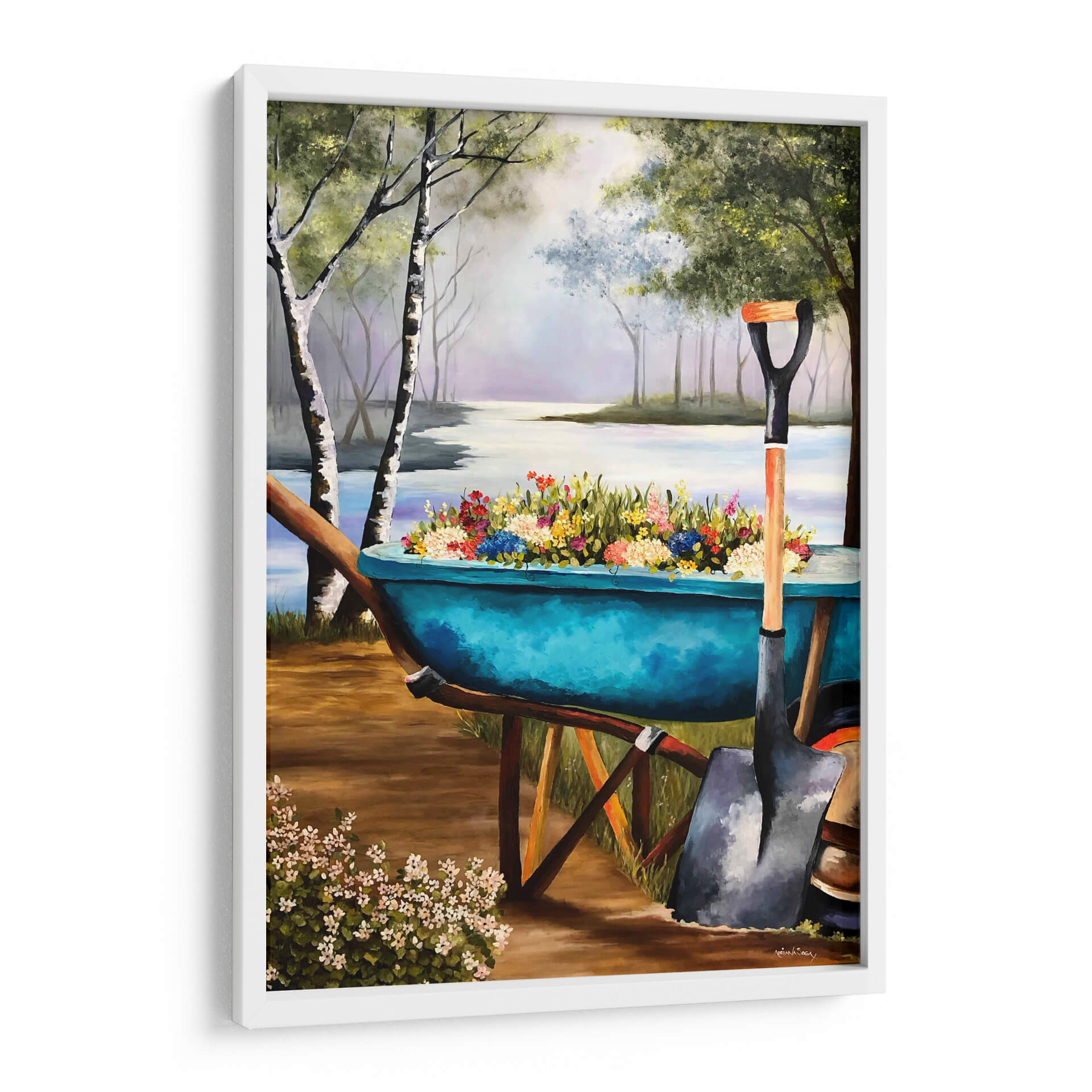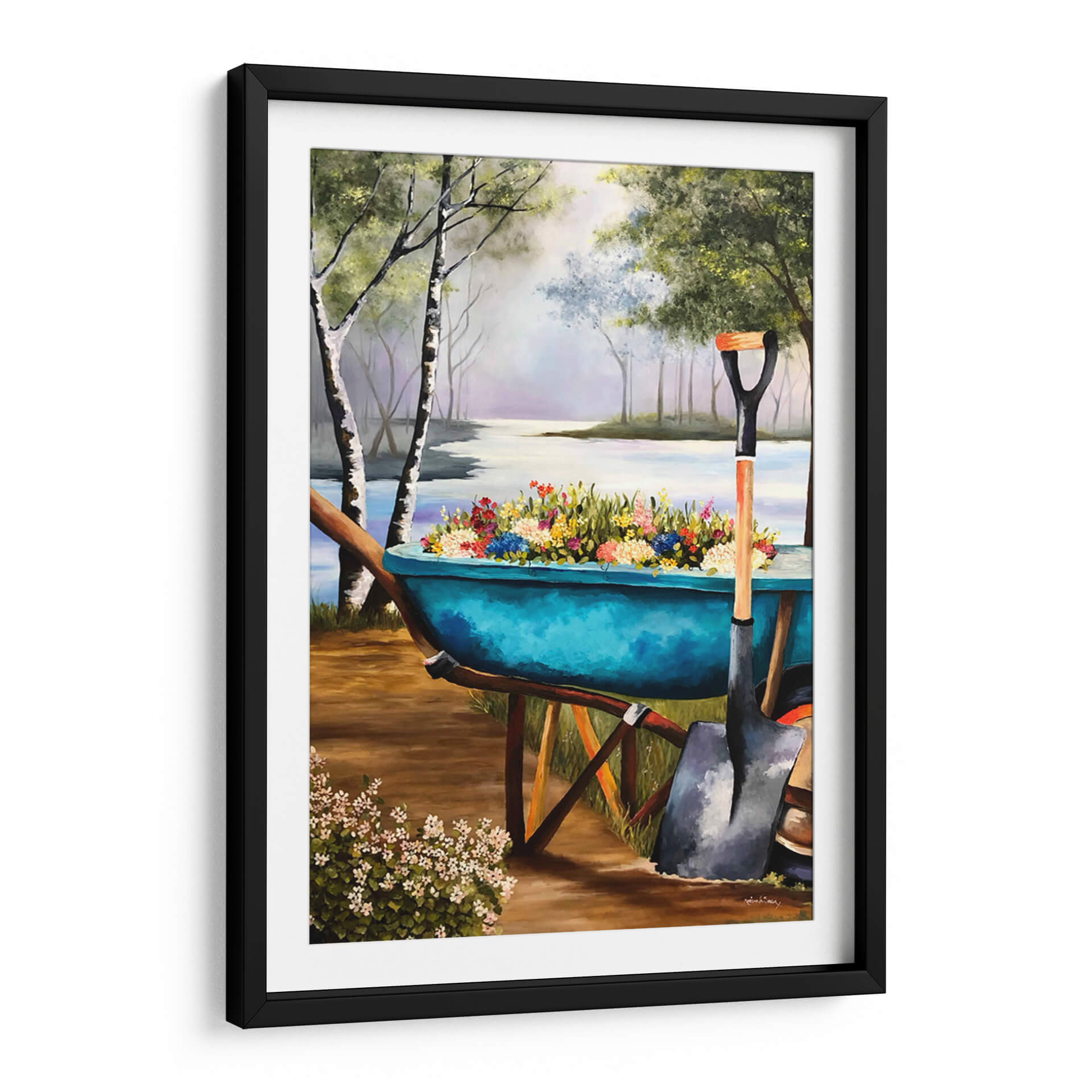 Sumérgete en la serenidad del campo con "Tiempo de Introspección", una obra de arte cautivadora de Adriana Sosa. Este cuadro decorativo captura un momento idílico de contemplación en la naturaleza, presentando un vibrante carro de jardinería rebosante de flores de colores. Los tonos verdes y azules predominantes, junto con toques de rojo, amarillo y rosa, crean una atmósfera tranquila y a la vez alegre. El estilo pictórico, con pinceladas expresivas y un enfoque en la luz y el color, evoca una sensación de paz y conexión con el entorno natural. Las siluetas de árboles esbeltos y un cuerpo de agua sereno al fondo añaden profundidad y misterio a la composición. Esta pieza es ideal para transformar cualquier espacio, ya sea una sala de estar, un comedor o un estudio, en un refugio de calma y belleza natural. El carro azul, un elemento central inesperado, añade un toque de color y personalidad, invitando a la reflexión sobre la belleza encontrada en las tareas cotidianas y en la simple contemplación de la naturaleza. "Tiempo de Introspección" es más que una decoración; es una invitación a pausar, respirar y apreciar la quietud que nos rodea, aportando una dosis de vitalidad y serenidad a tu hogar u oficina.