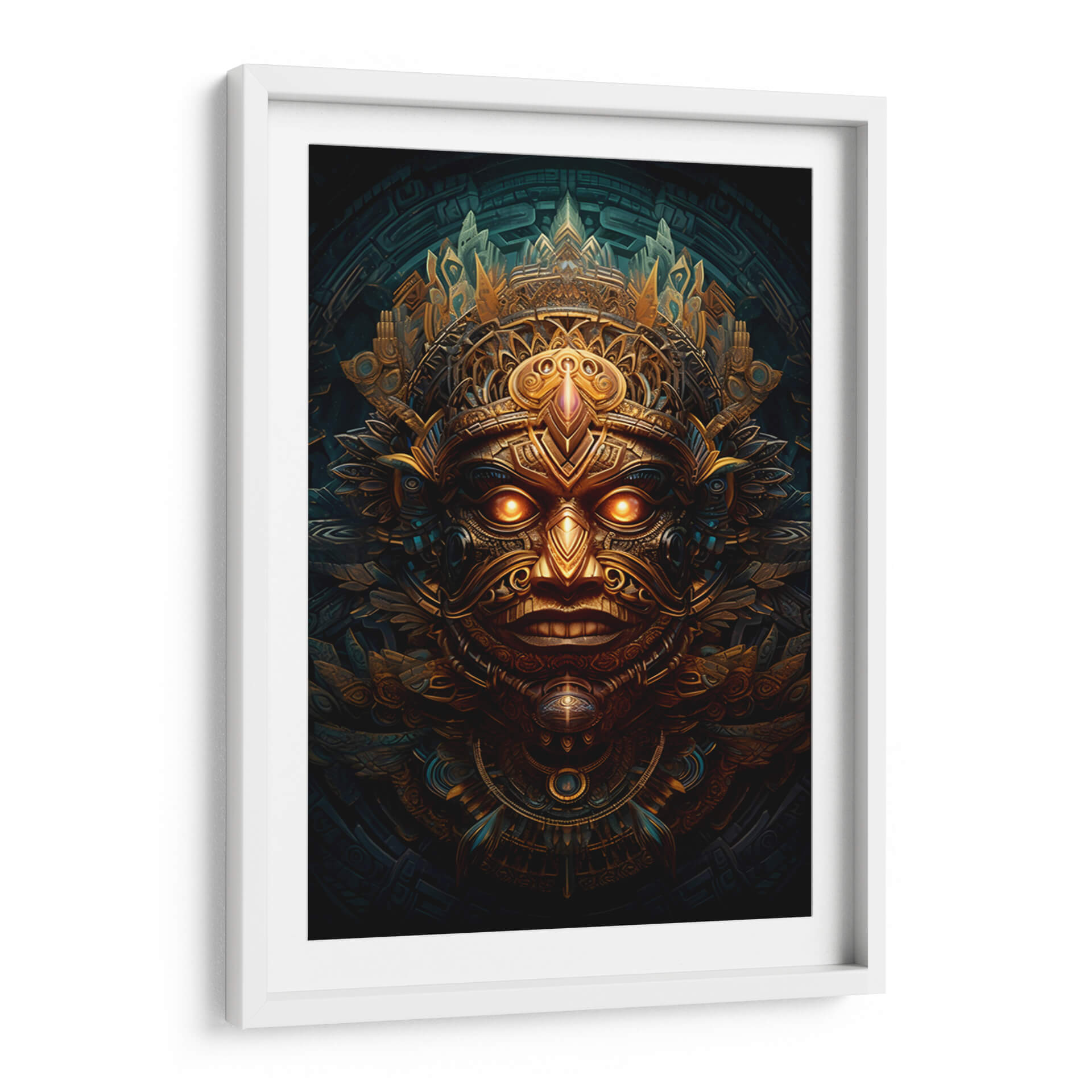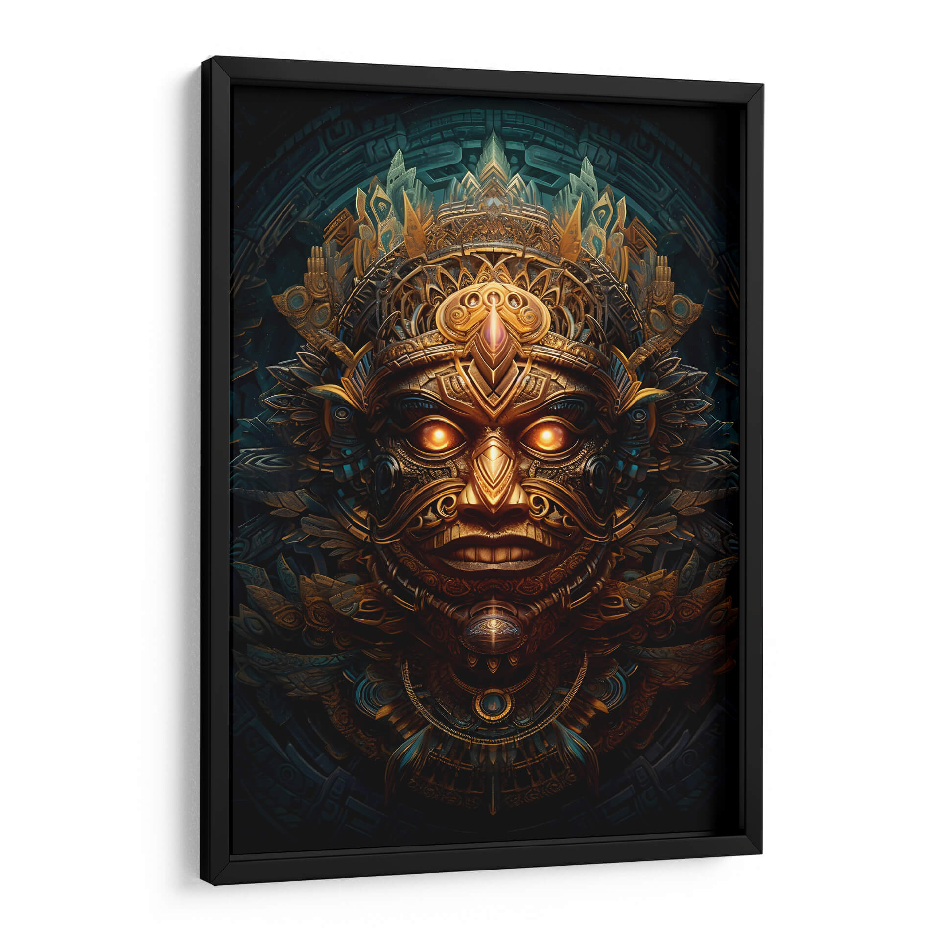 Sumérgete en el misterio y la magnificencia de "Tlaloc4", una obra de arte digital que captura la esencia de una deidad antigua con una estética moderna y detallada. Este cuadro decorativo presenta una máscara intrincada y ricamente ornamentada, dominada por tonos dorados y cobrizos que contrastan con un fondo oscuro y texturizado en tonos azul verdoso. Los ojos brillantes de la máscara irradian una luz intensa, añadiendo un toque enigmático y cautivador a la pieza. La complejidad de los patrones y la arquitectura que rodea la figura principal sugieren una profundidad cultural y una narrativa visual fascinante. "Tlaloc4" es ideal para aquellos que buscan infundir sus espacios con un sentido de poder, historia y un toque de lo sobrenatural. Su diseño detallado y la paleta de colores rica lo convierten en un punto focal impresionante para salas de estar, estudios u oficinas, aportando un aire de sofisticación y misterio. Este cuadro decorativo contemporáneo, con su estilo surrealista y de fantasía, es perfecto para inspirar conversaciones y añadir un carácter único a cualquier ambiente moderno o ecléctico.