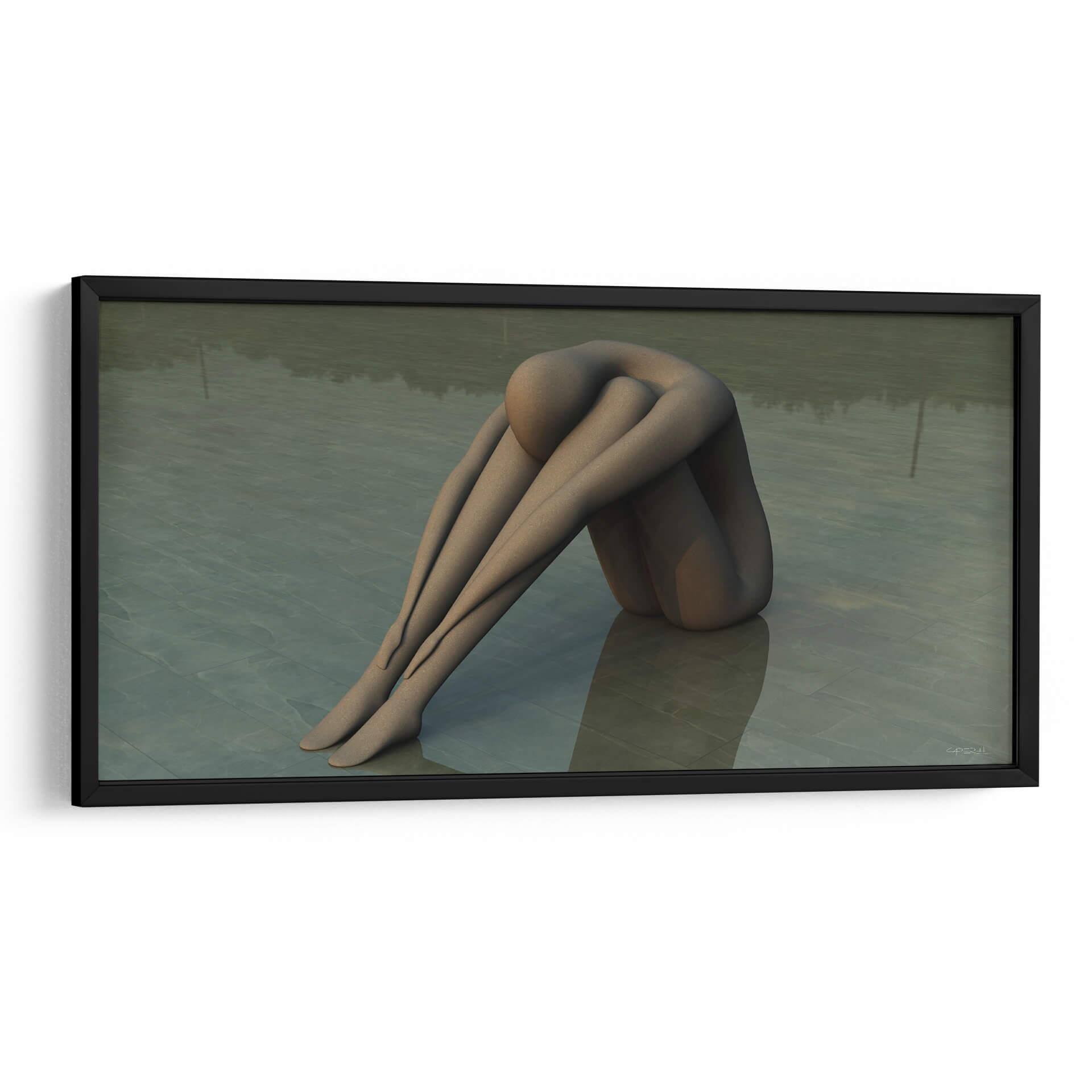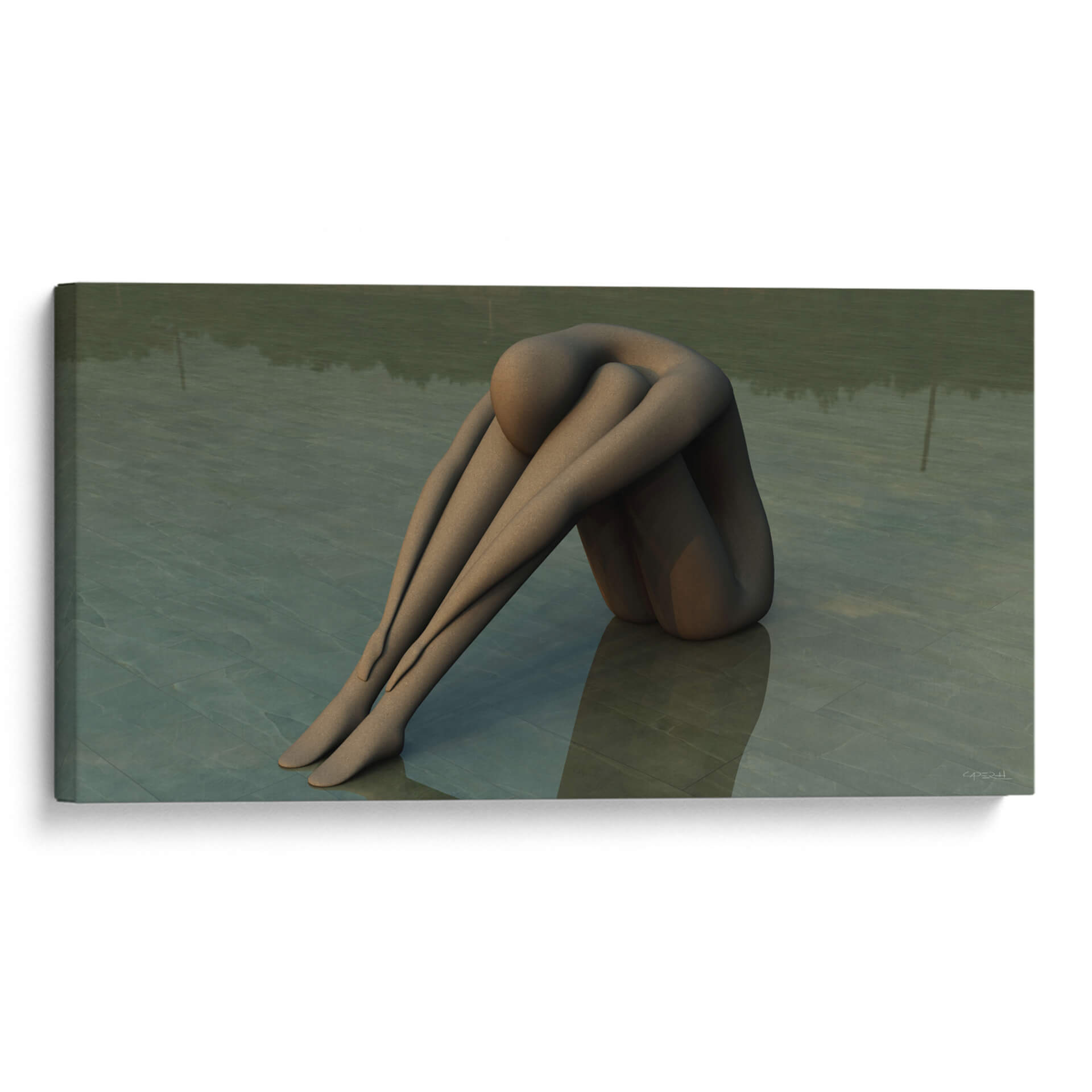 Sumérgete en la emotiva obra de arte 'Tristeza' del artista Caperh, un cuadro decorativo que captura la esencia de la introspección y la vulnerabilidad humana. La pieza presenta una figura humana en una pose recogida, evocando sentimientos de melancolía y contemplación. La paleta de colores, dominada por tonos fríos y apagados como verdes musgo y grises, crea una atmósfera serena pero introspectiva, ideal para espacios que buscan transmitir calma y profundidad. El estilo, que se inclina hacia lo abstracto y figurativo, permite una interpretación personal, invitando al espectador a conectar con sus propias emociones. Las sutiles texturas y la iluminación tenue realzan la forma de la figura, otorgándole una presencia etérea y conmovedora. Este cuadro decorativo es perfecto para añadir un toque de reflexión y sofisticación a tu sala de estar, dormitorio o estudio, transformando cualquier rincón en un espacio de meditación personal. Su composición minimalista y su temática universal lo convierten en una adición versátil y poderosa a cualquier colección de arte contemporáneo, capaz de generar diálogo y evocar empatía en quienes lo contemplan. Descubre la belleza en la melancolía con esta pieza única.