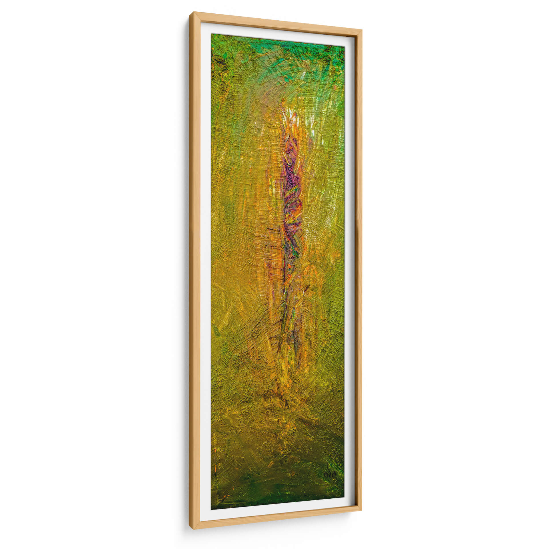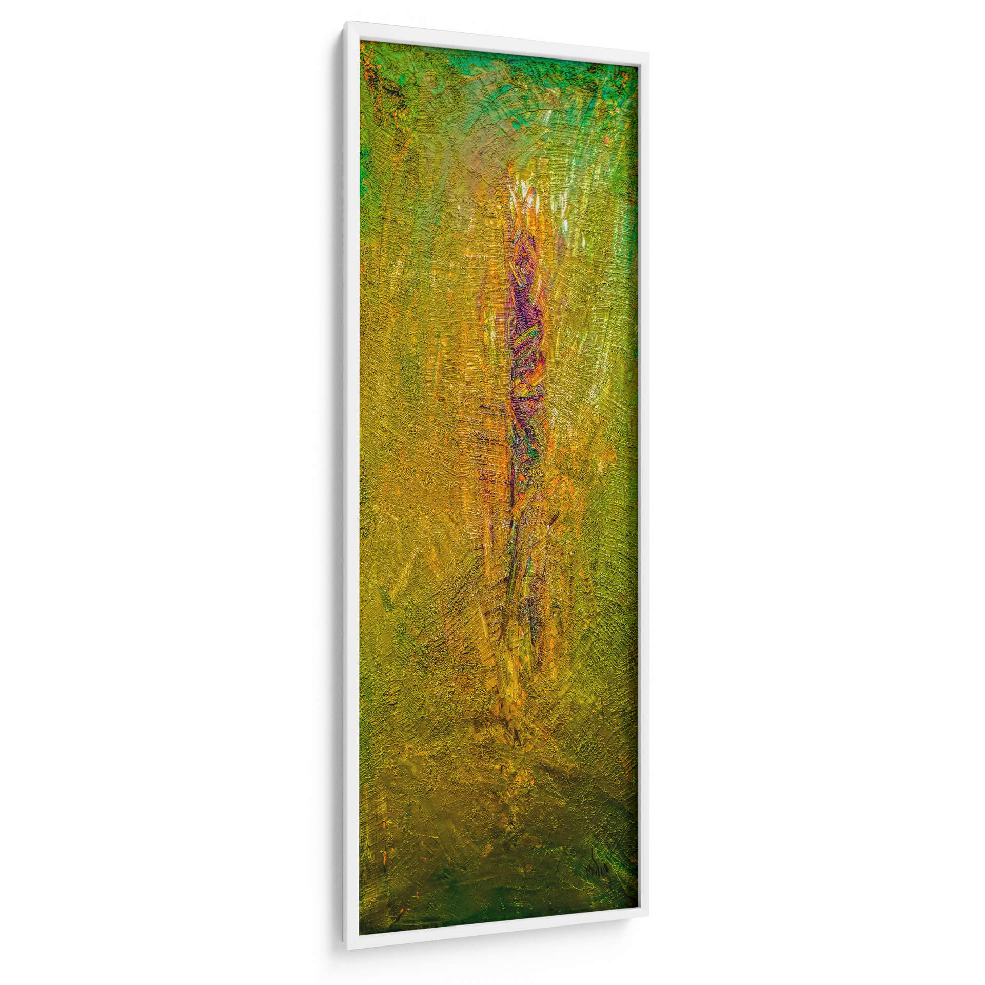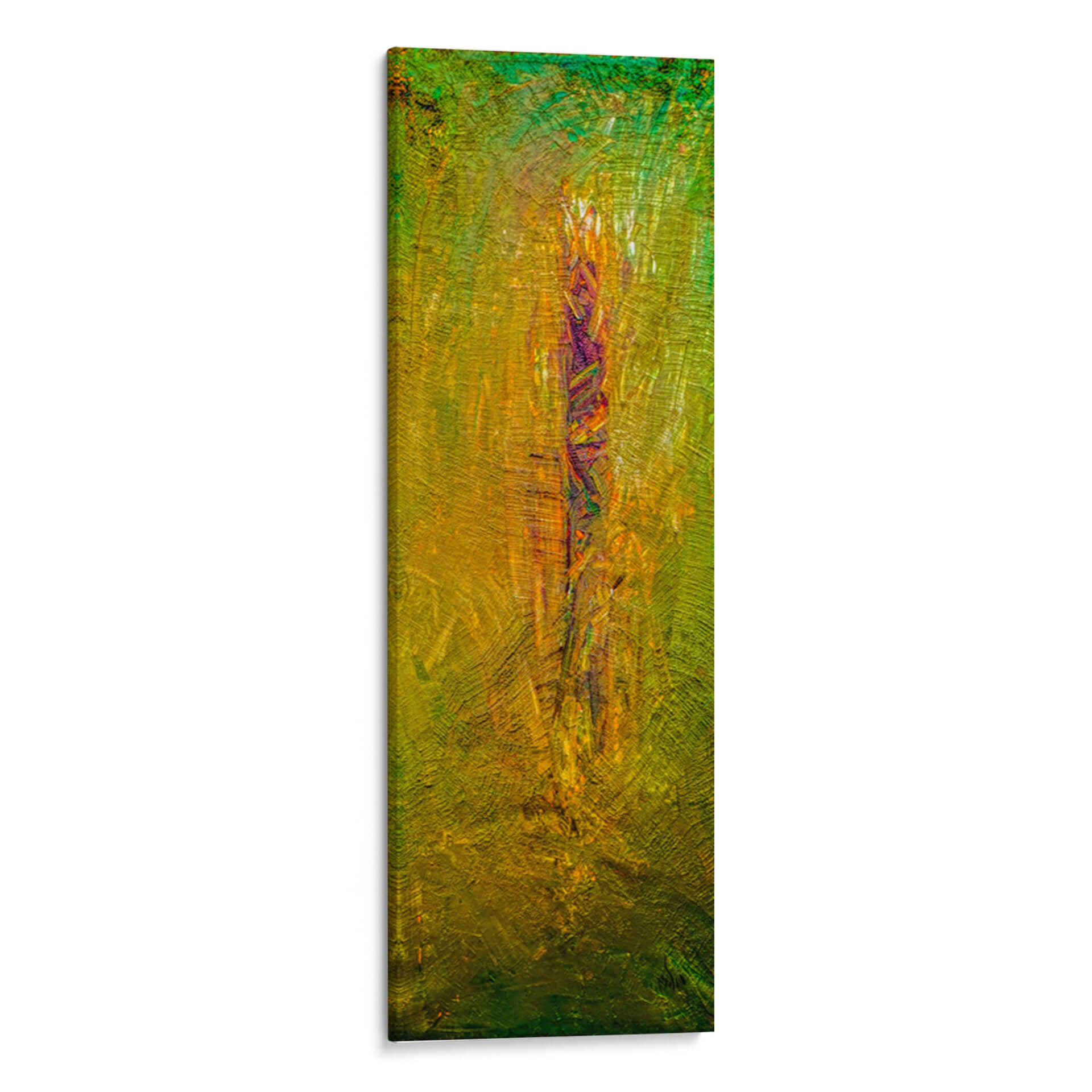 Sumérgete en la vibrante abstracción de "Uno" de Mauricio Silerio, una obra de arte contemporáneo que irradia energía y profundidad. Este cuadro decorativo destaca por su audaz uso de tonos verdes intensos y amarillos cálidos, que se entrelazan para crear una atmósfera envolvente y natural. En el centro, una sutil pincelada vertical en tonos púrpuras y anaranjados añade un punto focal intrigante, sugiriendo una forma alargada o un tronco de árbol estilizado, evocando la fuerza y la resiliencia de la naturaleza. La textura rica y las pinceladas visibles aportan una cualidad táctil a la pieza, invitando a la contemplación. "Uno" es una elección excepcional para quienes buscan infundir vida y un toque orgánico en espacios modernos, salones o estudios. Este cuadro abstracto es perfecto para crear un ambiente sereno pero estimulante, ideal para complementar decoraciones minimalistas o de estilo bohemio. Añade una dimensión de color y emoción a tu hogar u oficina con esta pieza única y cautivadora del arte contemporáneo, diseñada para inspirar y transformar tu entorno.