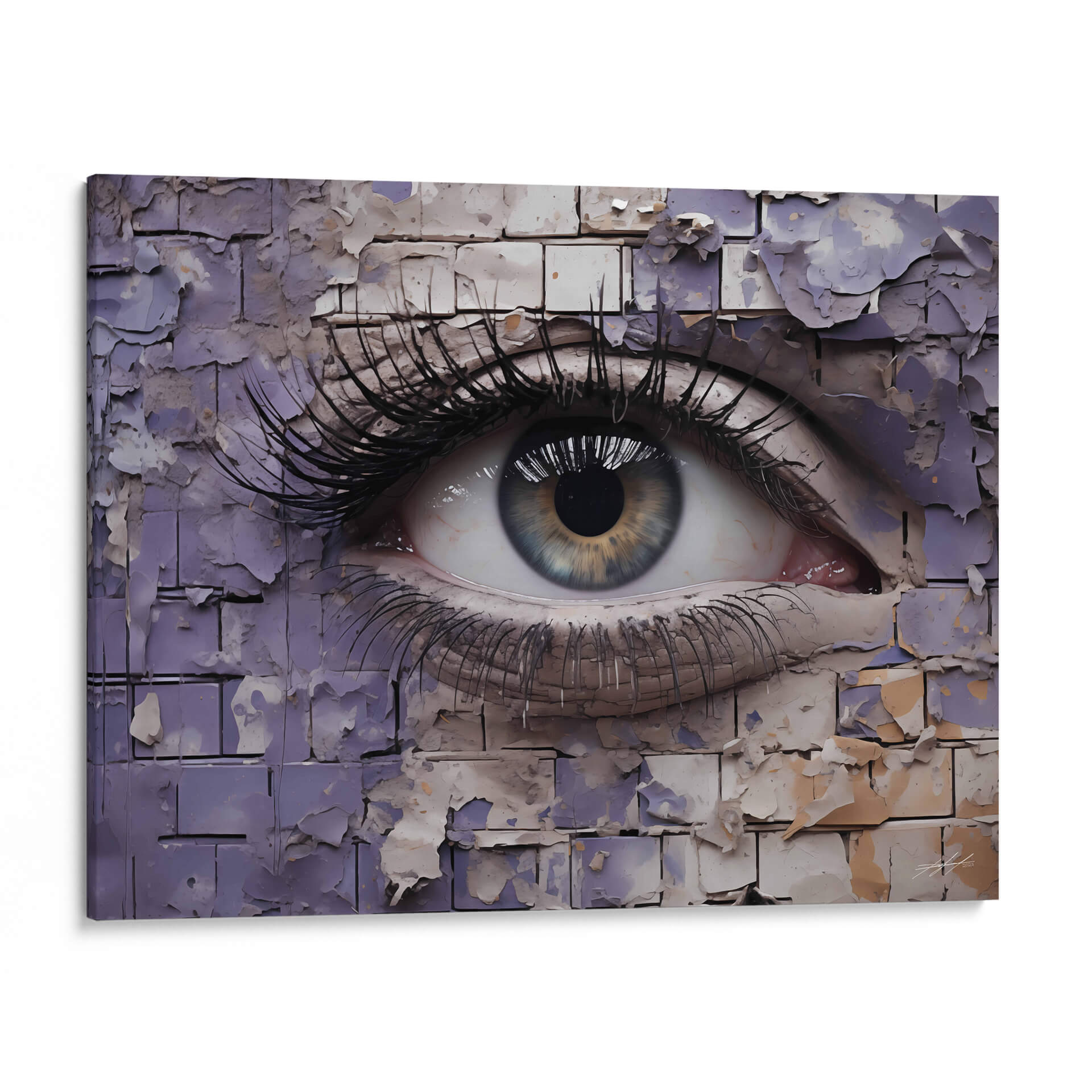 Sumérgete en la mirada penetrante de "VEO - 1", una obra de arte contemporáneo que redefine la percepción visual. Este cuadro decorativo presenta un primer plano intensamente detallado de un ojo humano, cuyas pupilas reflejan un mundo de matices y profundidades. El ojo parece emerger de una pared texturizada, con capas de pintura púrpura descascarada que añaden una dimensión de decadencia y misterio. La composición se centra en la intimidad del detalle, invitando a la reflexión sobre la observación y la introspección. Los colores varían desde el azul verdoso del iris hasta los tonos tierra y lavanda de la superficie agrietada, creando un contraste fascinante. La iluminación sutil resalta la humedad del globo ocular y la delicadeza de las pestañas, dotando a la pieza de un realismo impactante que dialoga con lo abstracto del fondo. Ideal para espacios que buscan un toque de intriga y sofisticación, como salones modernos, estudios privados o incluso oficinas creativas, "VEO - 1" es una pieza que cautiva y provoca conversación, invitando a mirar más allá de la superficie. Su estilo único fusiona lo figurativo con lo textural, resultando en una declaración artística audaz y memorable para tu decoración.