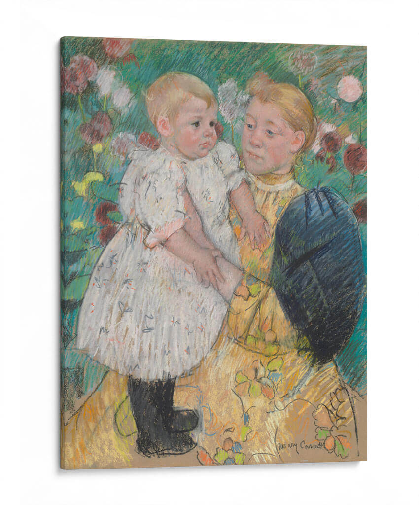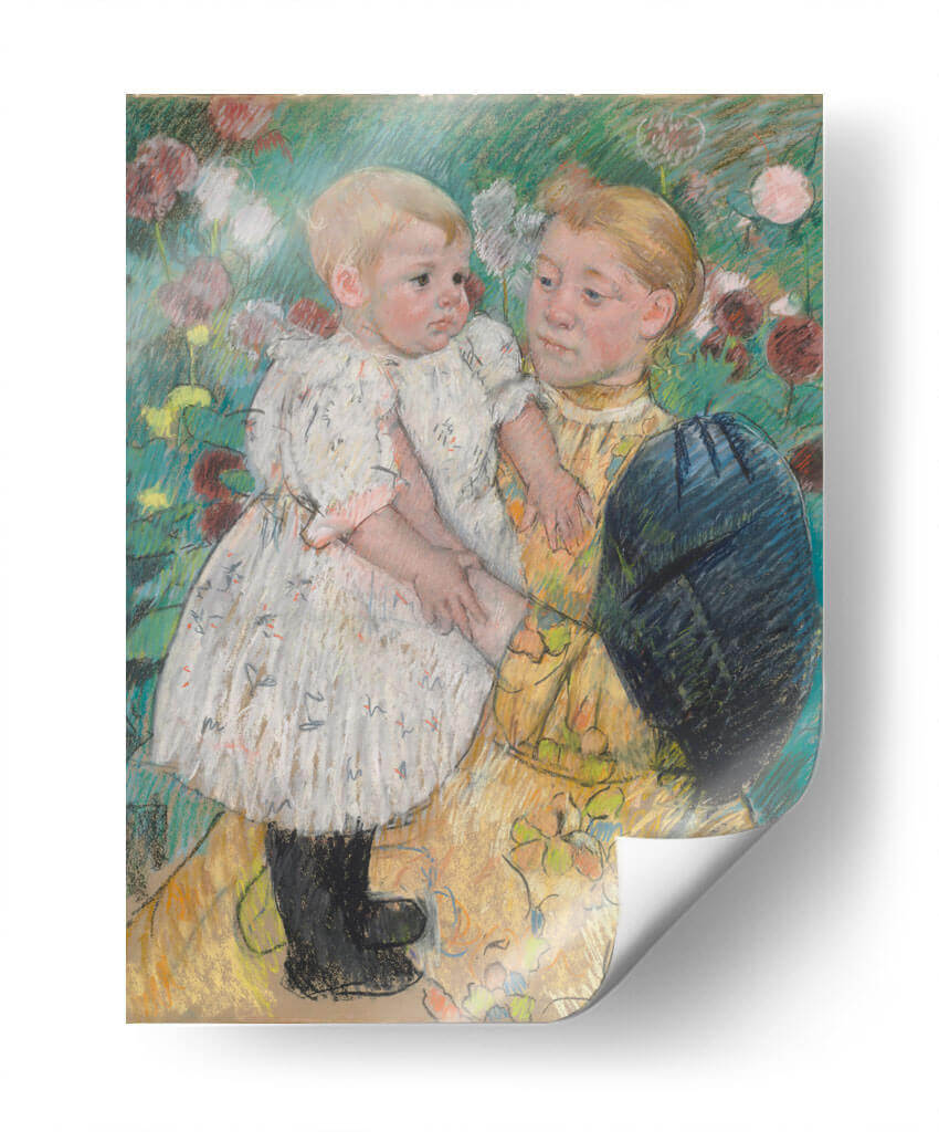 Sumérgete en la ternura y la intimidad con "En el Jardín", una obra maestra del arte de Mary Cassatt. Este cuadro decorativo captura un momento tierno entre una madre y su hijo en un entorno floral vibrante. Los colores pastel y las pinceladas suaves evocan una sensación de paz y calidez, perfecta para añadir un toque de serenidad a tu hogar. Las figuras, representadas con una delicadeza impresionista, interactúan de forma conmovedora, creando una atmósfera de conexión y afecto que trasciende el tiempo. El fondo, lleno de flores y follaje en tonos verdes y rosados, aporta profundidad y vitalidad a la composición, haciendo de esta pieza un punto focal cautivador. Ideal para salones, dormitorios o cualquier espacio que busque transmitir dulzura y un ambiente familiar acogedor. Este cuadro decorativo es una invitación a la contemplación y al disfrute de la belleza cotidiana, añadiendo un toque de elegancia atemporal a tu decoración.