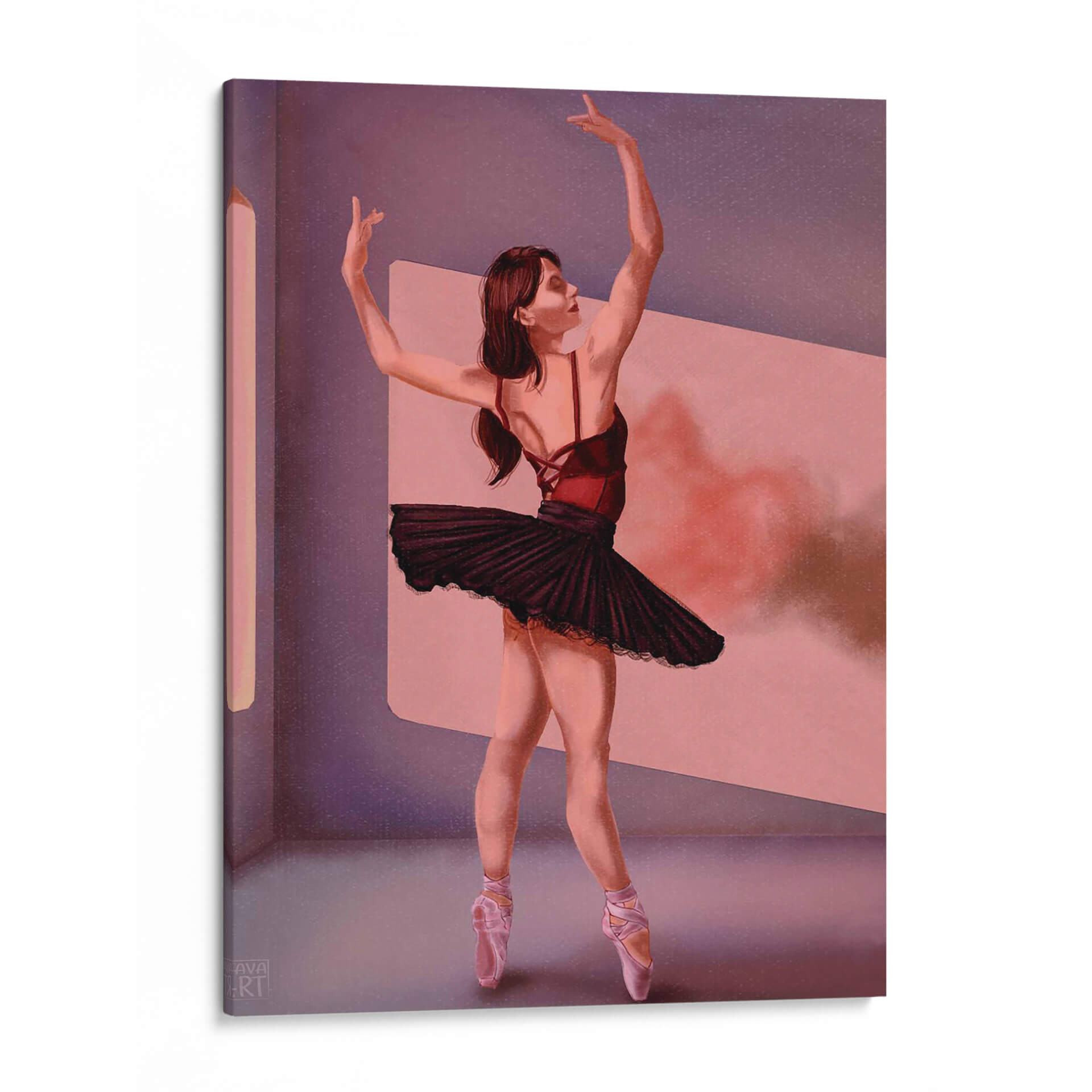 Sumérgete en la gracia y la fuerza con "Fuerte y Delicada 1", una obra de arte cautivadora del artista Chava.art. Esta pieza pictórica digital captura un momento de pura elegancia y dedicación, presentando a una bailarina de ballet en plena ejecución de una pose delicada. La obra destaca por su paleta de colores sutiles y evocadores, dominada por tonos púrpuras, rosados y rojizos que crean una atmósfera íntima y soñadora. La composición, centrada en la figura de la bailarina, resalta la fluidez de sus movimientos y la tensión de su disciplina, transmitiendo una profunda sensación de pasión y resiliencia. Los detalles en el vestuario, como el tutú negro y las zapatillas de punta rosadas, añaden un toque de realismo a la escena, mientras que el fondo abstracto y suavemente texturizado envuelve a la figura en un aura de concentración. "Fuerte y Delicada 1" es ideal para espacios que buscan un toque de sofisticación y emoción, como salas de estar modernas, estudios de danza o dormitorios que inspiren calma y belleza. Este cuadro decorativo es una invitación a apreciar la dualidad de la fortaleza y la fragilidad en el arte y en la vida. Una adición perfecta para coleccionistas de arte contemporáneo y amantes de las artes escénicas.