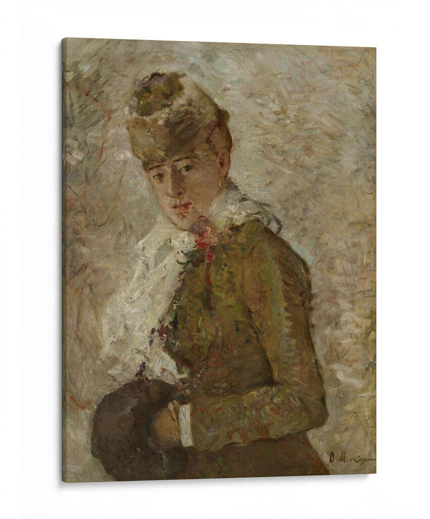 Sumérgete en la delicadeza del Impresionismo con "Mujer con manguito" de Berthe Morisot. Esta cautivadora obra maestra retrata a una joven con una expresión serena y una mirada introspectiva, capturada con pinceladas sueltas y luminosas que definen el estilo de la artista. La paleta de colores, dominada por tonos tierra, verdes apagados y toques de blanco y rosa, crea una atmósfera íntima y acogedora. La figura central, vestida con un elegante manguito y un cuello de encaje voluminoso, se recorta sobre un fondo sutilmente texturizado que resalta su presencia. "Mujer con manguito" evoca una sensación de calma y elegancia atemporal, perfecta para añadir un toque de sofisticación a cualquier estancia. Su composición equilibrada y el tratamiento de la luz la convierten en una pieza ideal para espacios como salones, estudios o dormitorios, donde busca crear un ambiente de refinada tranquilidad y apreciación por el arte clásico. Explora la belleza del impresionismo francés y aporta un aire de distinción a tu hogar con este lienzo excepcional.