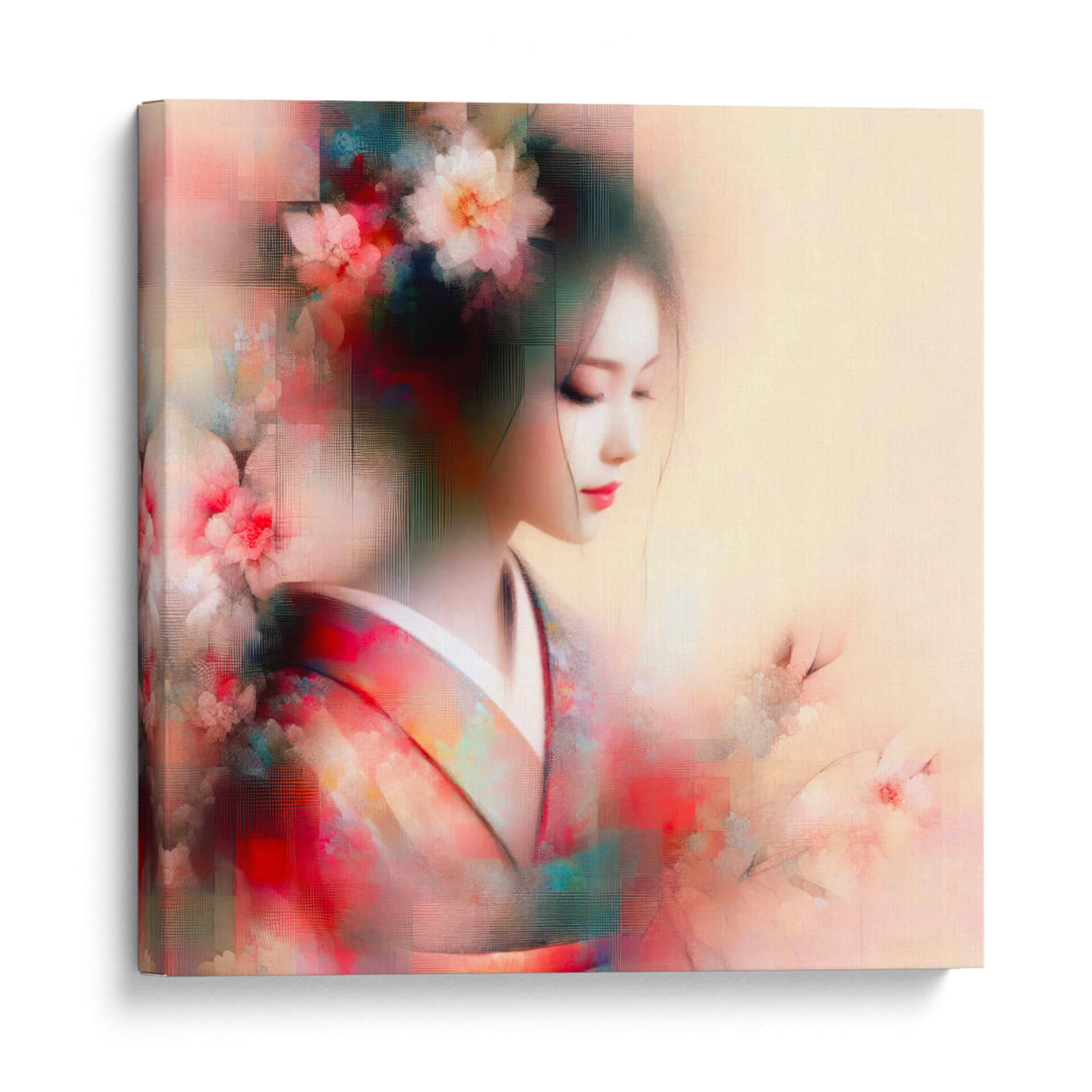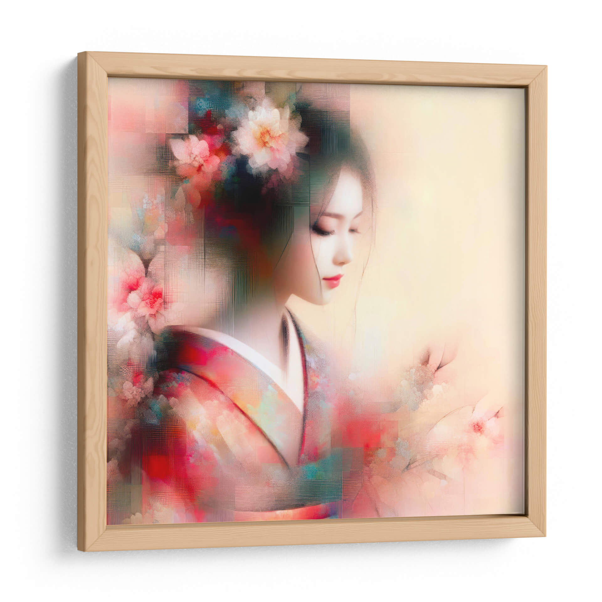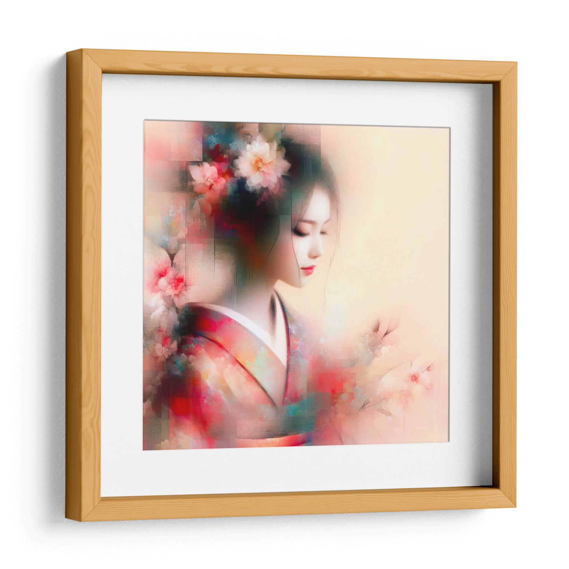 Sumérgete en la delicada belleza de 'Dama Japonesa', una obra de arte digital que captura la serenidad y la elegancia de una mujer asiática adornada con vibrantes flores. Los tonos pastel se entrelazan con toques de rojo intenso y verde azulado, creando una atmósfera etérea y soñadora. La composición, que fusiona trazos suaves con texturas digitales pixeladas, aporta una dimensión contemporánea a la figura tradicional. Ideal para quienes buscan añadir un toque de sofisticación y calma a su hogar u oficina, este cuadro decorativo es una ventana a la tranquilidad y la apreciación de la belleza sutil. La obra evoca una sensación de introspección y paz, convirtiéndose en un punto focal cautivador en cualquier espacio. Perfecta para salas de estar, dormitorios o estudios que buscan inspiración oriental y un diseño moderno.