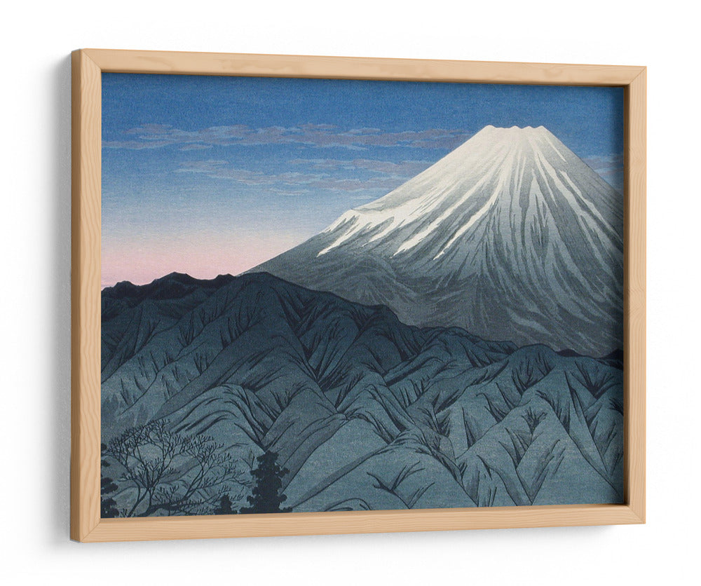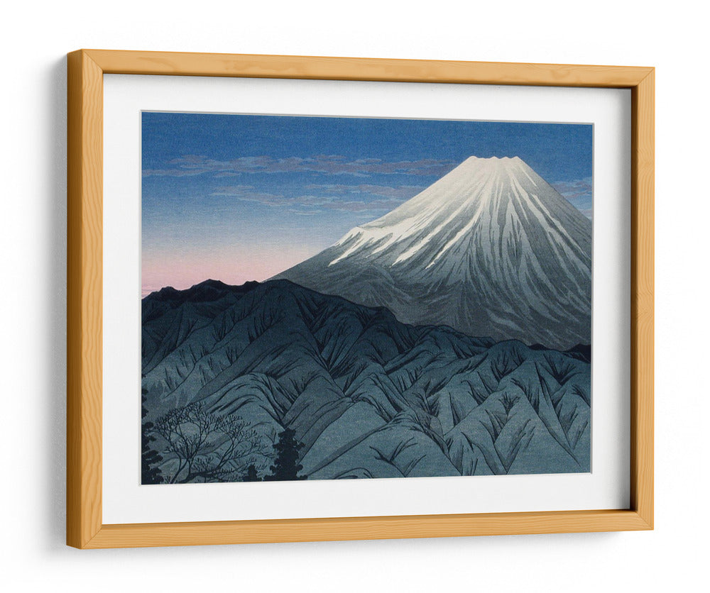 Transporta tu hogar a las majestuosas alturas de Japón con este impresionante cuadro decorativo del Monte Fuji desde Hakone. Obra del reconocido artista Hiroaki Takahashi, esta pieza captura la icónica montaña nevada emergiendo de un mar de colinas ondulantes bajo un cielo azul vibrante. La paleta de colores, dominada por profundos azules, grises y toques de rosa pálido al amanecer o atardecer, crea una atmósfera de serenidad y grandeza. Las detalladas líneas que definen las laderas de las montañas añaden una textura visual fascinante, mientras que la imponente silueta del Fuji evoca una sensación de paz y contemplación. Este cuadro decorativo es ideal para añadir un toque de sofisticación y calma a cualquier espacio, ya sea un salón moderno, un sereno dormitorio o un estudio de inspiración. Su diseño atemporal y su temática paisajística lo convierten en una adición perfecta para aquellos que aprecian la belleza de la naturaleza y el arte clásico japonés. Integra esta obra maestra en tu decoración y permite que su aura de tranquilidad y poder natural transforme tu ambiente, invitando a la reflexión y la admiración en cada mirada. Un símbolo de fuerza y belleza que perdura en el tiempo.