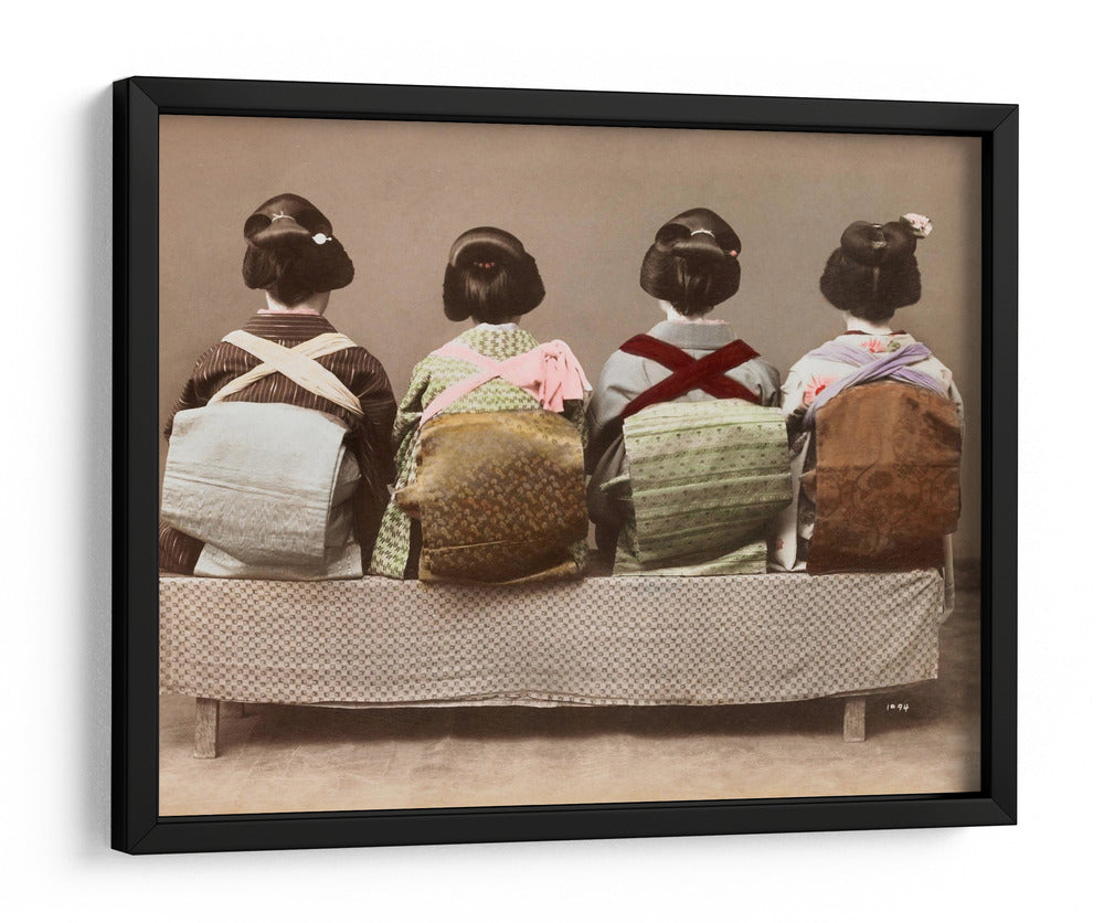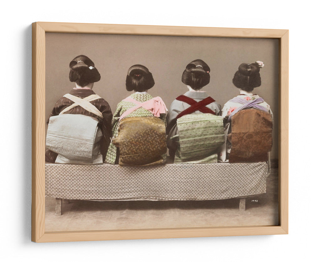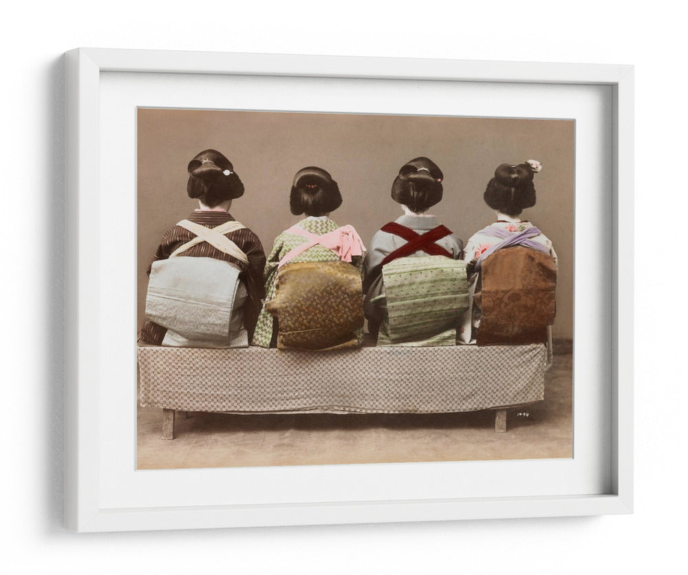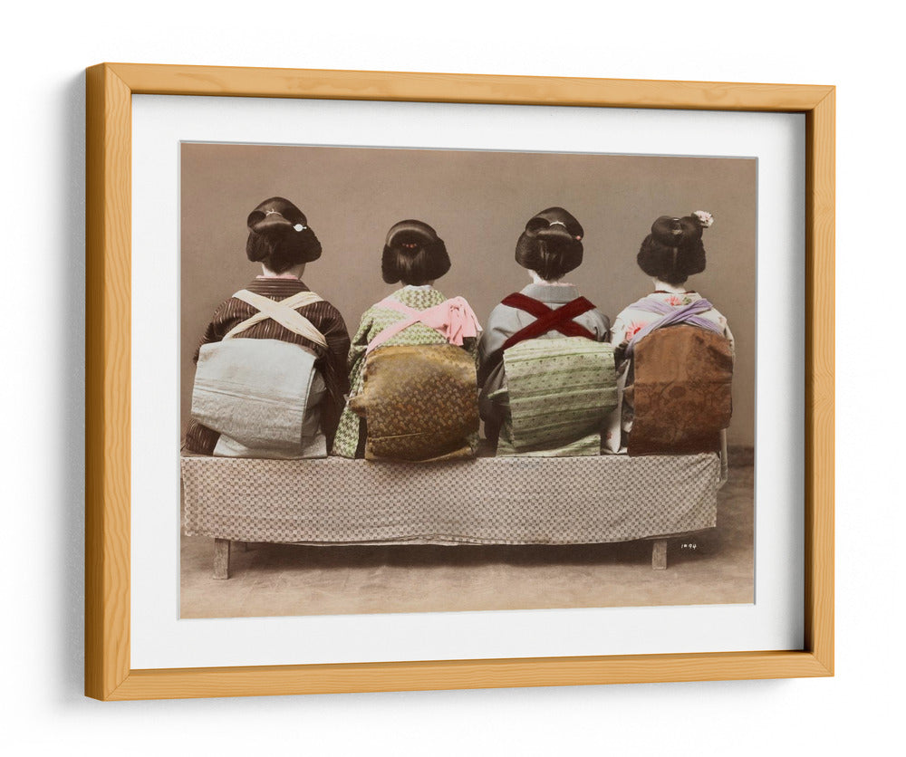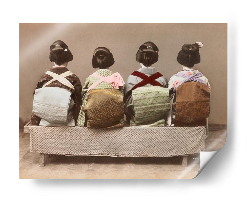Sumérgete en la elegancia serena de Japón con este cautivador cuadro decorativo, "Mostrando el estilo de espalda (siglos XIX-XX) mujer japonesa sentada", del aclamado fotógrafo Kusakabe Kimbei. Esta obra maestra captura la esencia de la belleza tradicional japonesa a través de cuatro mujeres vestidas con kimonos intrincados, sentadas juntas, mostrando la parte trasera de sus elaborados peinados y sus ricos atuendos. La paleta de colores, dominada por tonos tierra, verdes suaves y acentos de color en los kimonos, crea una atmósfera de calma y sofisticación. La composición, centrada en la postura y los detalles textiles, invita a la contemplación y evoca una sensación de misterio y reverencia por la cultura asiática. Ideal para añadir un toque de refinamiento histórico y cultural a tu sala de estar, dormitorio u oficina, este cuadro es una ventana a una época pasada, ofreciendo una pieza decorativa que es tanto una obra de arte como una declaración de estilo. Su presencia aportará un aire de tranquilidad y un punto de interés visual único a cualquier espacio, resonando con aquellos que aprecian la fotografía histórica, la estética japonesa y el arte de la decoración interior.