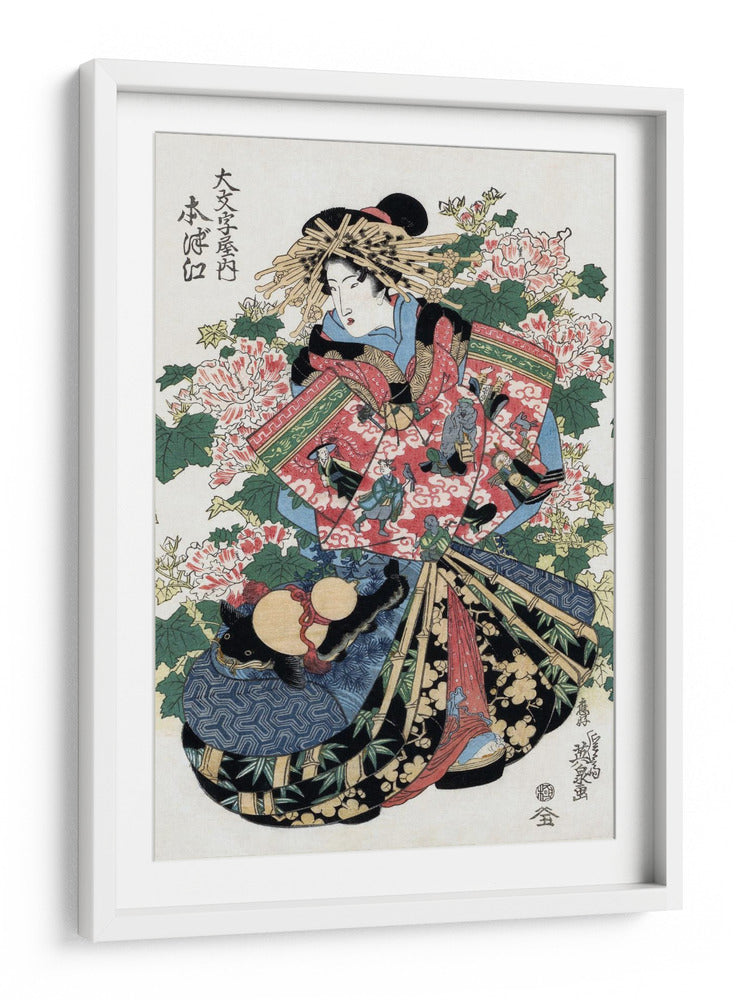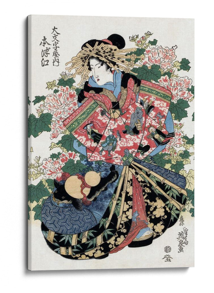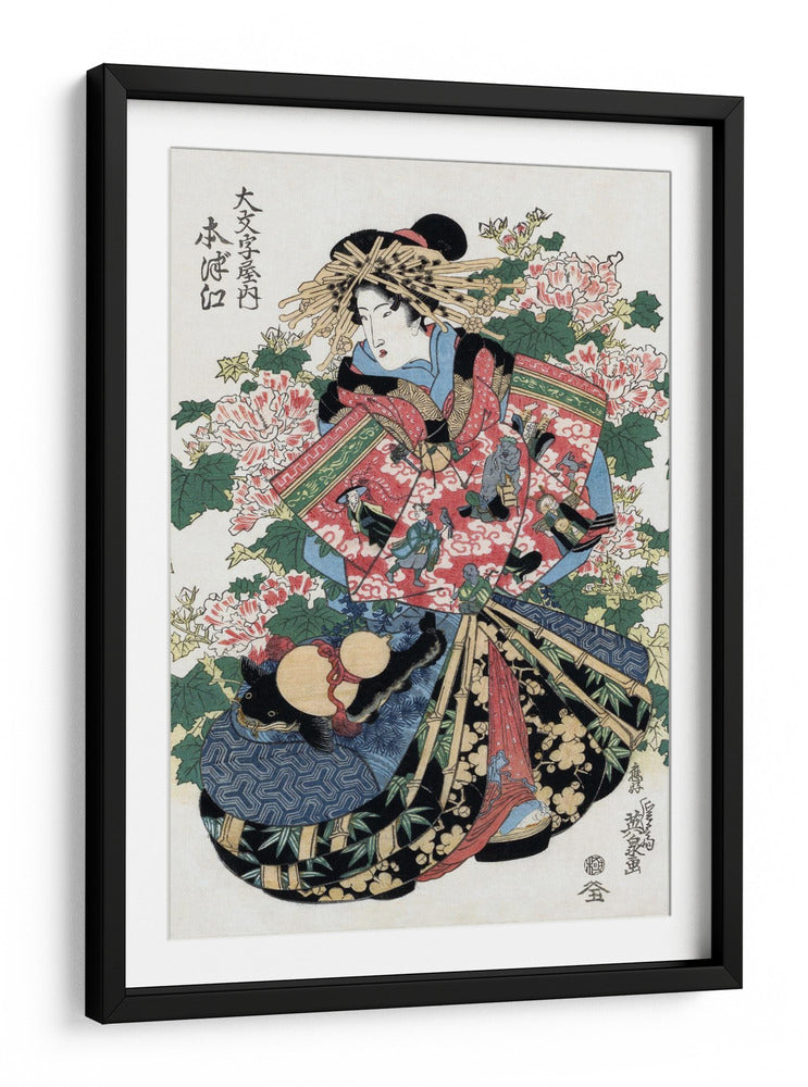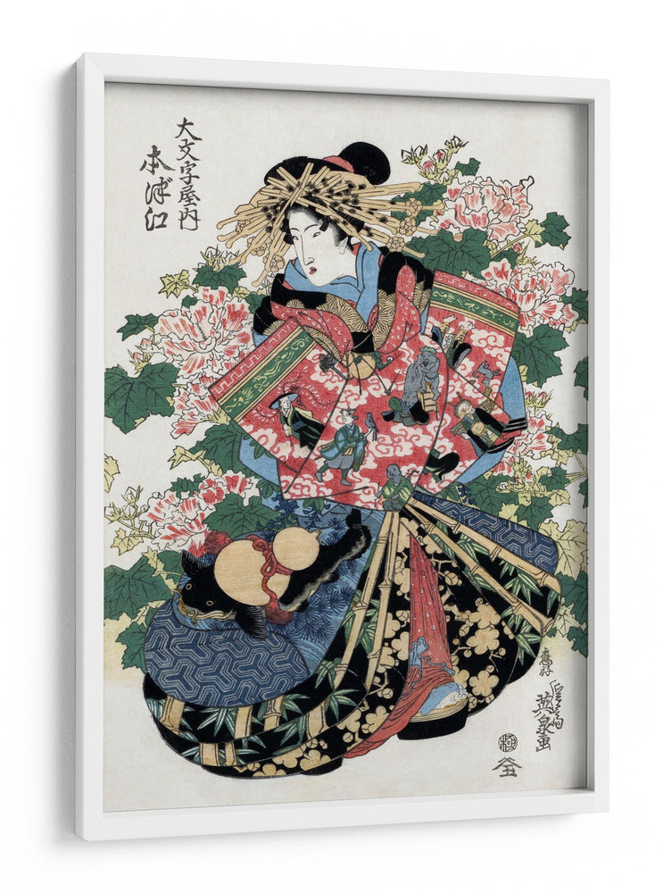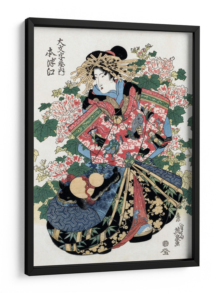 Sumérgete en la elegancia atemporal de la obra "Mujer japonesa", una pieza inspirada en el arte del siglo XIX del reconocido artista Keisai Eisen. Este cuadro decorativo captura la esencia de la belleza y la tradición japonesa con una paleta de colores vibrantes que combinan rojos intensos, azules profundos y verdes exuberantes, creando una atmósfera de sofisticación y misterio. La composición detallada presenta a una mujer con un atuendo tradicional, rodeada de exuberantes flores de peonía y elementos decorativos que añaden profundidad y narrativa a la pieza. Ideal para añadir un toque de refinamiento cultural a tu sala de estar, dormitorio u oficina, este cuadro es una ventana a un mundo de arte Ukiyo-e. Su estilo distintivo lo convierte en un punto focal cautivador, capaz de transformar cualquier espacio en una galería personal. Descubre la serenidad y la estética japonesa que "Mujer japonesa" aportará a tu hogar.