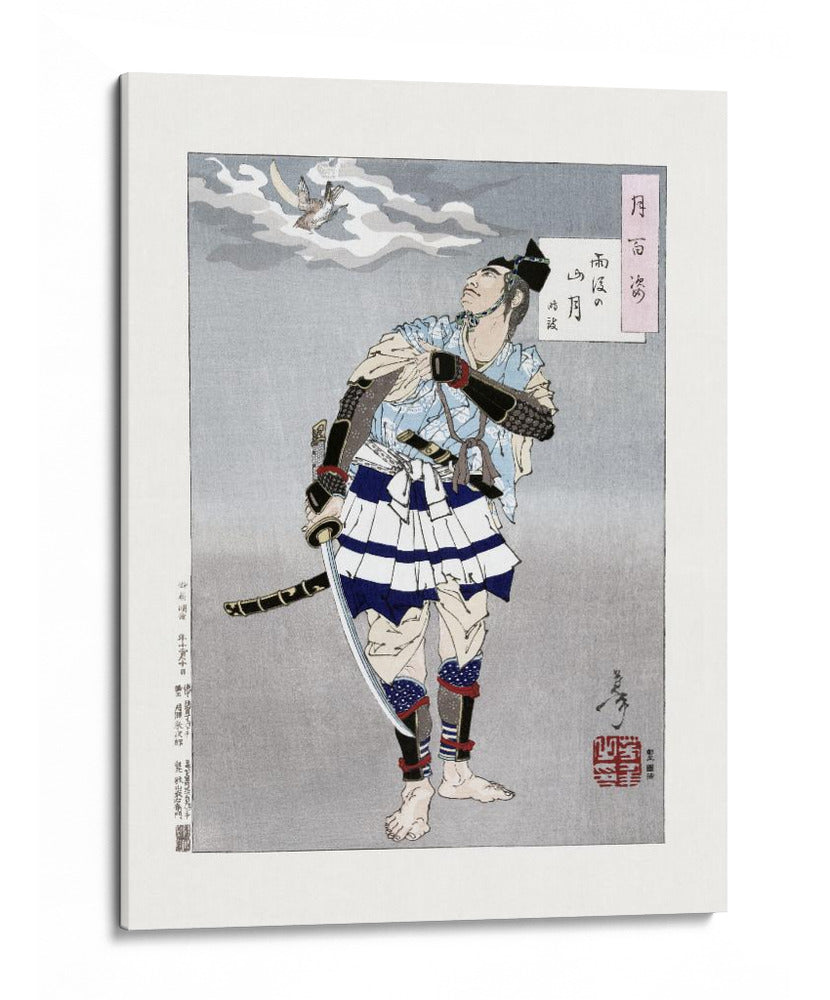 Sumérgete en la fuerza y la tradición con este cautivador cuadro decorativo del icónico artista japonés Tsukioka Yoshitoshi. Titulada 'Samurái japonés (1885)', esta obra maestra captura un momento de profunda contemplación o anticipación. Un samurái, vestido con ropajes tradicionales en tonos azules y blancos, se alza con determinación, su mirada elevada hacia el cielo nublado donde un ave revolotea. La composición, con su paleta de grises, azules y toques de rojo, evoca una atmósfera de solemnidad y resiliencia. Los detalles intrincados de su vestimenta y armadura, junto con la pose dinámica, invitan a la reflexión sobre el honor, el deber y la conexión con la naturaleza. Este cuadro decorativo es ideal para añadir un toque de historia y carácter a tu sala de estar, estudio u oficina, sirviendo como un punto focal que inspira respeto y admiración. Perfecto para los amantes del arte japonés, la historia samurái y las piezas con una narrativa visual potente.