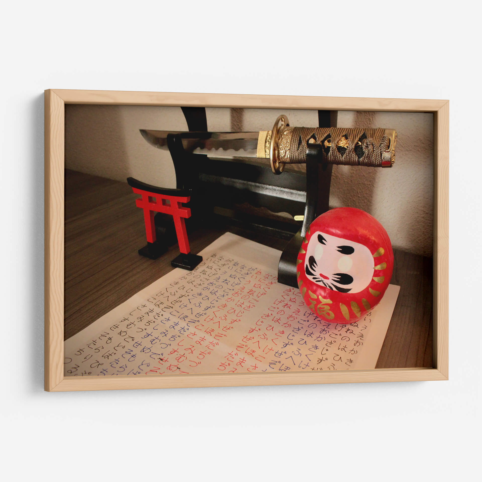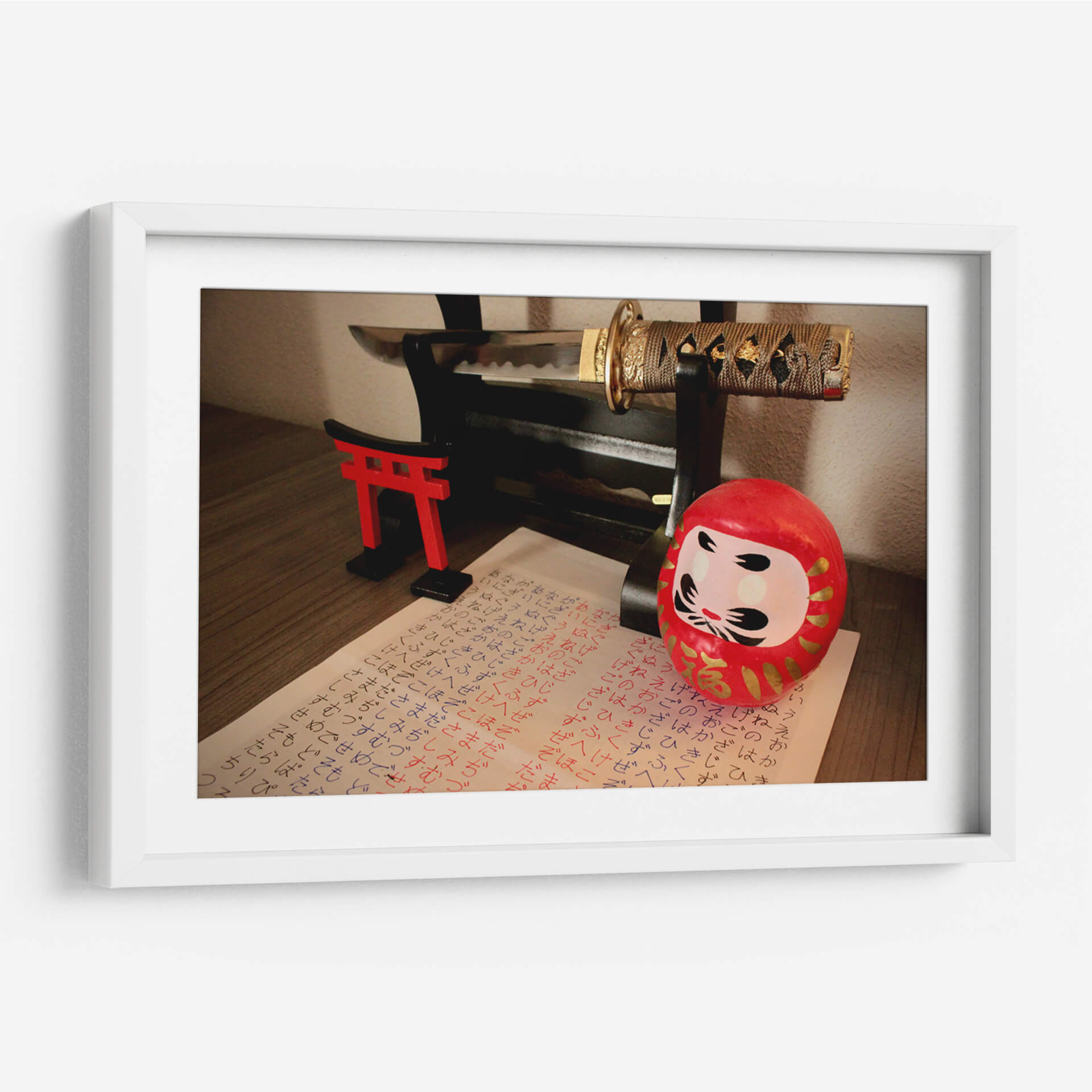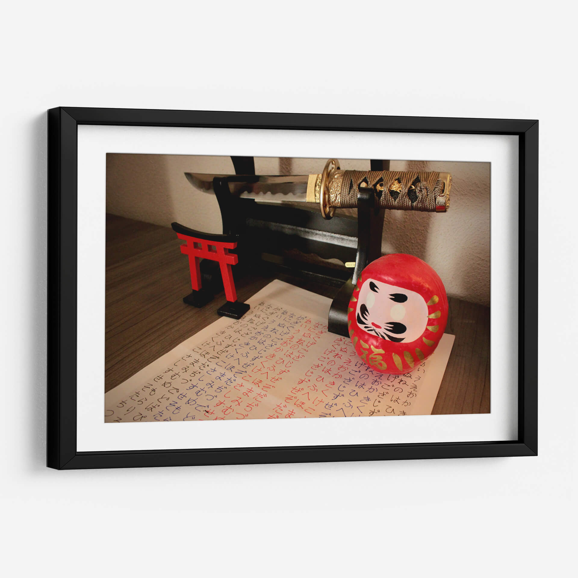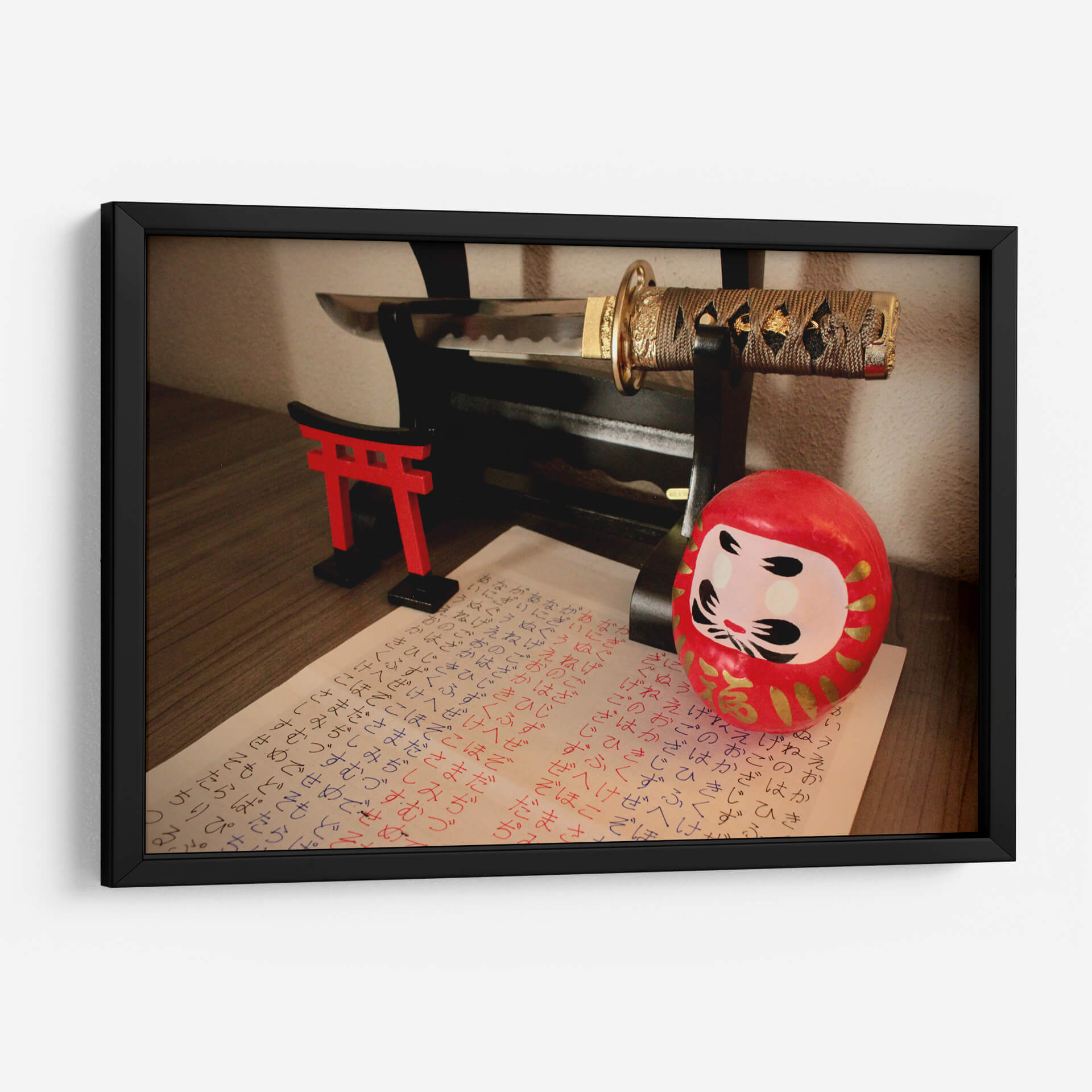 Adéntrate en la rica cultura japonesa con este cautivador cuadro decorativo, "Tradición en el Escritorio". Esta obra de arte captura la esencia de la disciplina y la serenidad, presentando elementos icónicos como una katana elegantemente exhibida en su soporte, un torii rojo vibrante que simboliza la entrada a lo sagrado, y un Daruma, el muñeco de la perseverancia, acompañado de un texto caligráfico. Los tonos cálidos y terrosos de la madera contrastan con el rojo intenso del torii y el Daruma, creando una atmósfera de respeto y contemplación. La composición detallada invita a la reflexión sobre la conexión entre la tradición, la introspección y el desarrollo personal. Ideal para espacios que buscan un toque de sofisticación oriental y un recordatorio visual de la importancia de la constancia y la automejora. Este cuadro decorativo es perfecto para oficinas, estudios o salas de estar, aportando un aire de calma reflexiva y apreciación estética. Su diseño único lo convierte en una pieza de conversación y un punto focal inspirador para cualquier amante del arte y la cultura japonesa. Transforma tu entorno con esta representación artística de valores atemporales.
