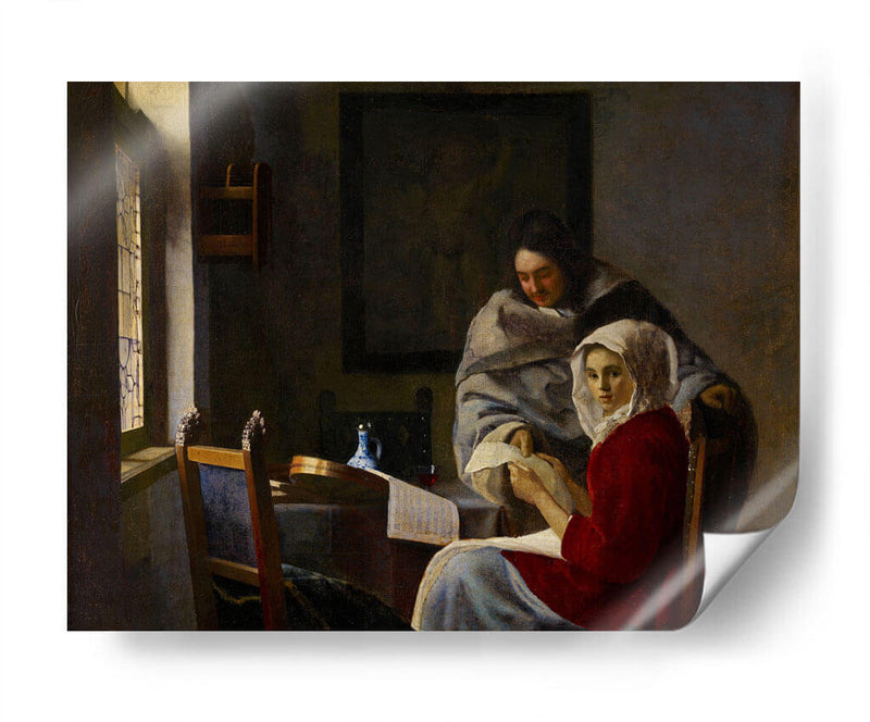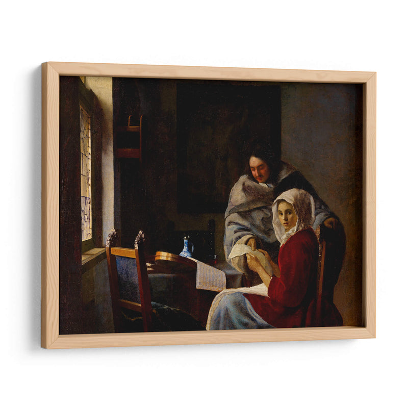 Sumérgete en la atmósfera íntima y reflexiva de 'La lección de música interrumpida', una obra maestra que captura un momento de quietud y conexión humana. Este cuadro decorativo, inspirado en el estilo barroco y la maestría de Johannes Vermeer, presenta a dos figuras en un interior iluminado por la luz natural que se filtra a través de una ventana enrejada. La paleta de colores, dominada por tonos cálidos y terrosos, acentuada por el vibrante rojo de la vestimenta de la mujer y los azules profundos, crea una sensación de profundidad y serenidad. Observa la delicada composición donde la luz y la sombra juegan un papel crucial, guiando la mirada del espectador a través de la escena. La obra evoca una sensación de calma, introspección y la belleza de los momentos cotidianos. Es una pieza perfecta para añadir un toque de sofisticación y profundidad a cualquier sala de estar, estudio o dormitorio, convirtiéndose en un punto focal que invita a la contemplación y la apreciación del arte clásico reinventado para espacios modernos. Transforma tu hogar con esta reproducción de arte que combina historia, emoción y estilo.