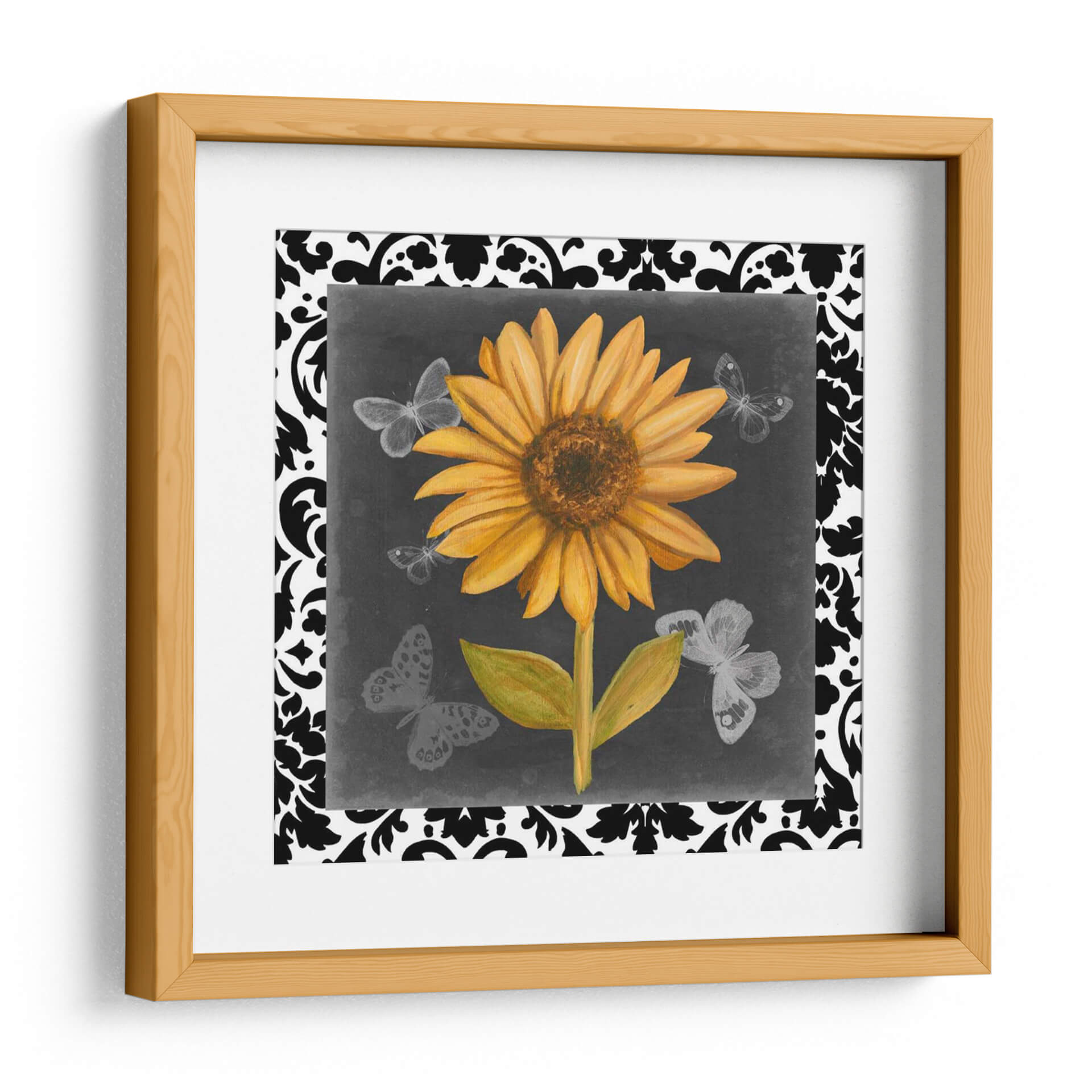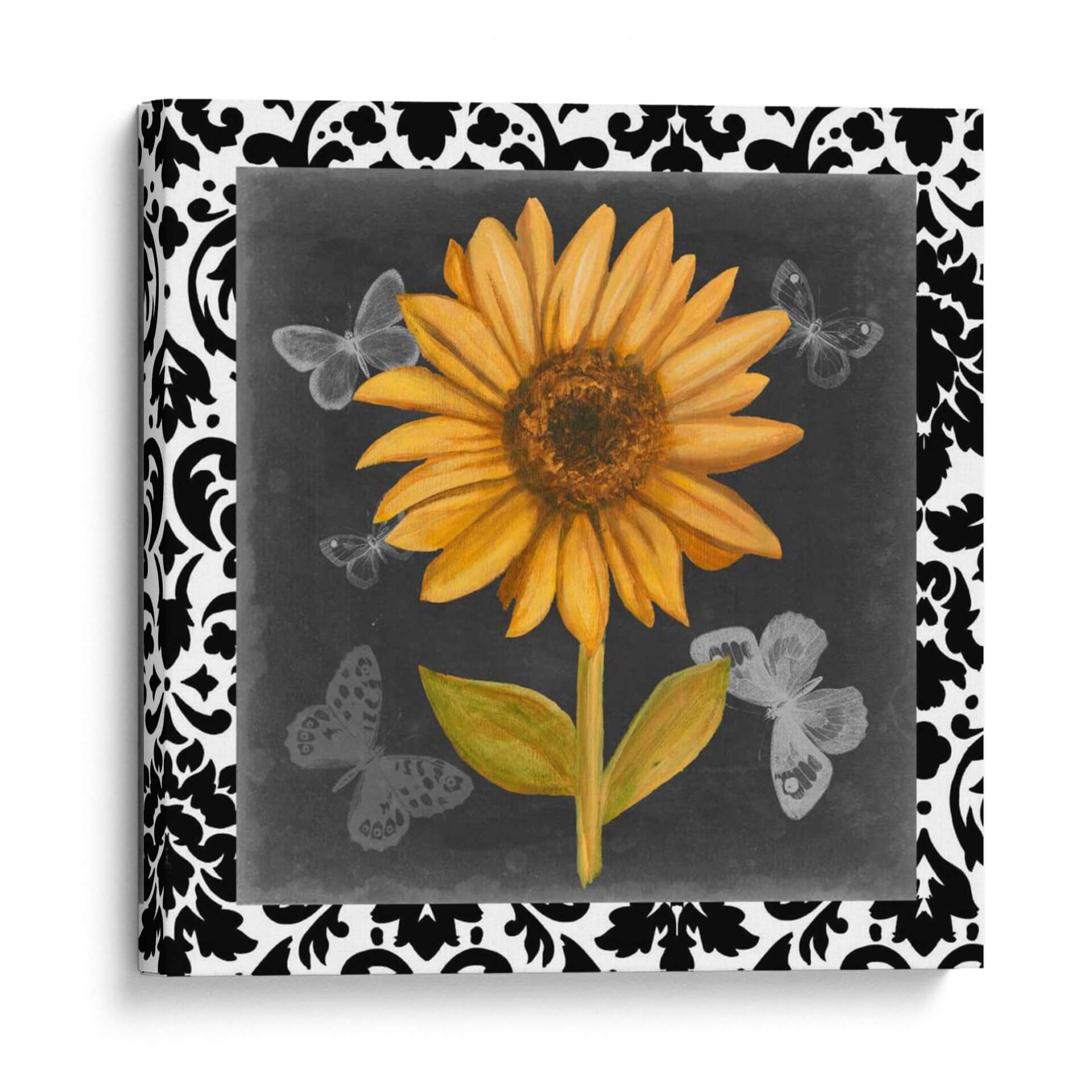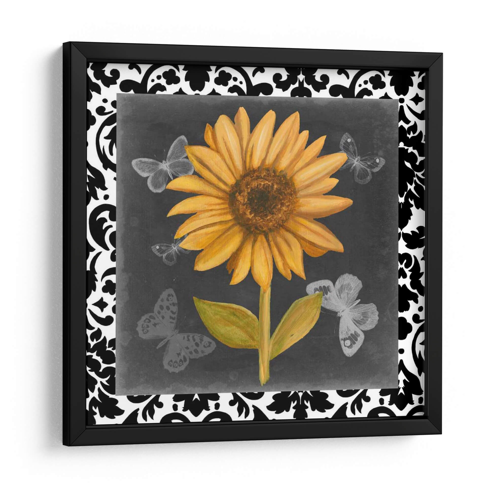 Embellece tu espacio con "Adornado Girasoles II", una obra de arte que captura la vibrante esencia de la naturaleza. Este cuadro decorativo presenta un girasol radiante en tonos amarillos y ocres intensos, que emerge de un fondo texturizado en gris pizarra. La composición se ve realzada por la delicada presencia de mariposas etéreas en un tono blanco translúcido, que parecen danzar alrededor del majestuoso girasol, añadiendo un toque de ensueño y movimiento. El estilo combina elementos realistas en el girasol con un tratamiento más etéreo para las mariposas, creando un contraste visual cautivador. La paleta de colores, dominada por el amarillo solar y el contraste del gris oscuro, genera una atmósfera de calidez y serenidad, a la vez que un punto de interés visual. Es la pieza perfecta para añadir un toque de optimismo y sofisticación a cualquier sala de estar, dormitorio u oficina. Imagina cómo este cuadro iluminará tus paredes, aportando vida y un recordatorio de la belleza simple y poderosa de la naturaleza. "Adornado Girasoles II" es más que una decoración; es una ventana a un jardín encantado, listo para transformar tu hogar en un refugio de estilo y alegría.