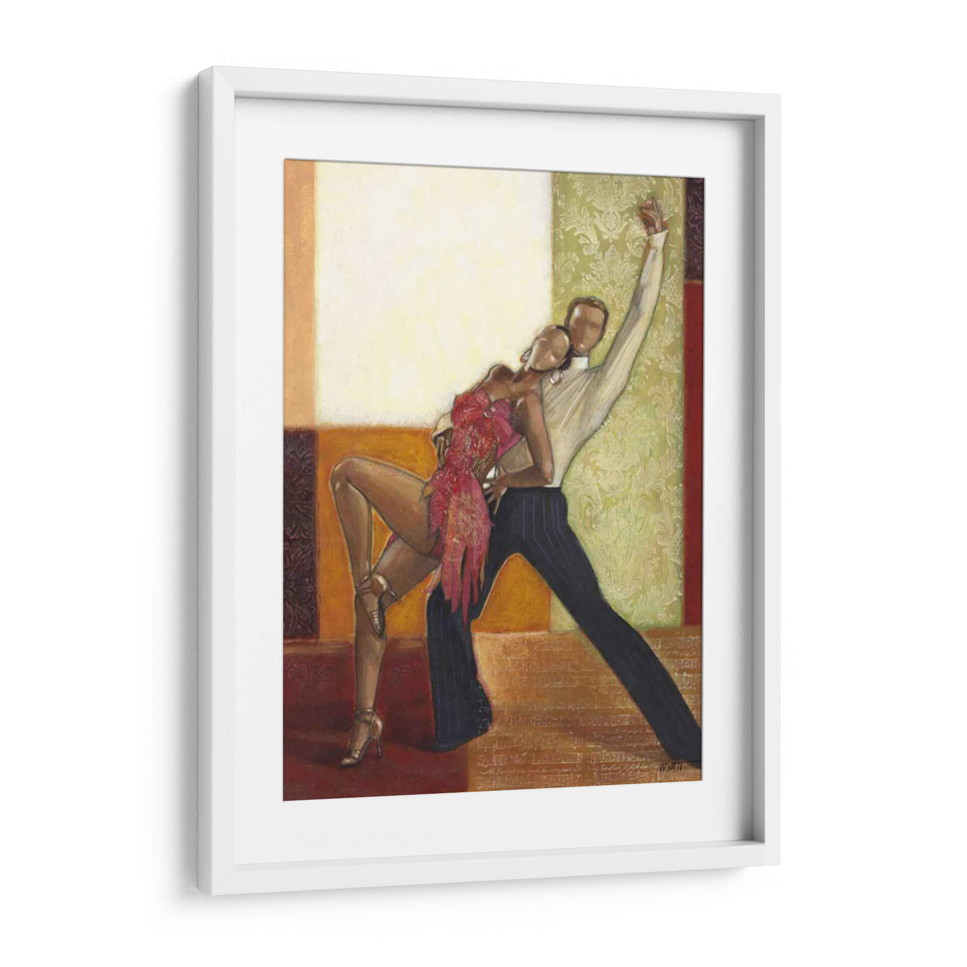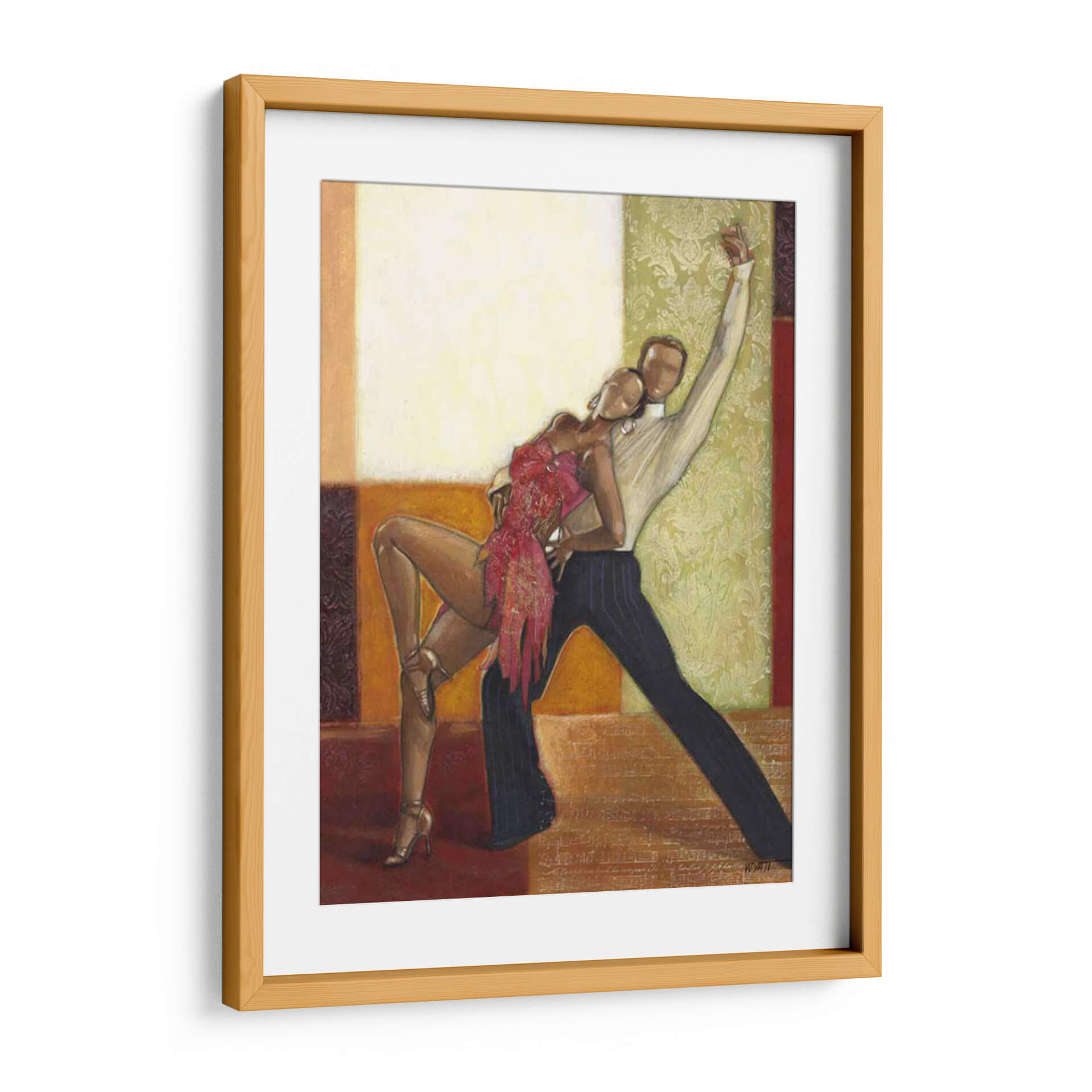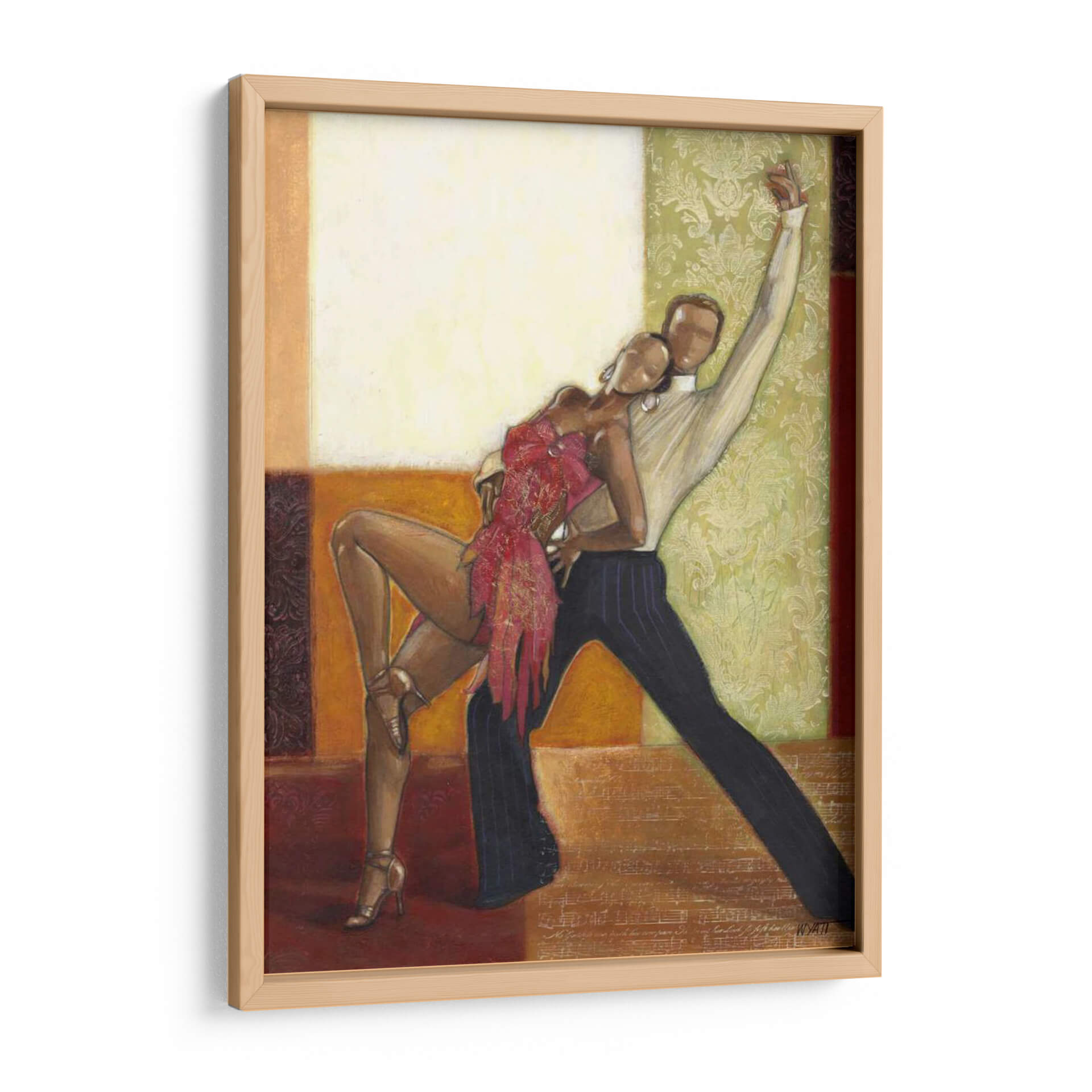 Sumérgete en la pasión y el ritmo con "Baile Yo", una obra de arte cautivadora del artista Norman Wyatt Jr. Este cuadro decorativo captura la esencia de la danza con una pareja en un abrazo íntimo y enérgico. La figura femenina, vestida con un vibrante traje rojo adornado con detalles que sugieren movimiento y seducción, se inclina con gracia, mientras que su compañero, en una camisa blanca impecable y pantalones de rayas oscuras, la sostiene con firmeza. La paleta de colores, rica en tonos tierra, rojos intensos y toques de dorado y verde pálido, crea una atmósfera de sofisticación y calidez. El fondo texturizado, con patrones sutiles y un efecto que evoca partituras musicales, añade profundidad y un aire de elegancia atemporal. El estilo de Wyatt Jr. combina elementos figurativos con una abstracción expresiva, permitiendo que las emociones fluyan libremente. "Baile Yo" es más que una simple imagen; es una celebración del movimiento, la conexión y la sensualidad. Ideal para añadir un punto focal dinámico y lleno de carácter a tu sala de estar, comedor o incluso un espacio de entretenimiento. Transforma tu hogar en una galería personal con esta pieza que evoca romance y energía.