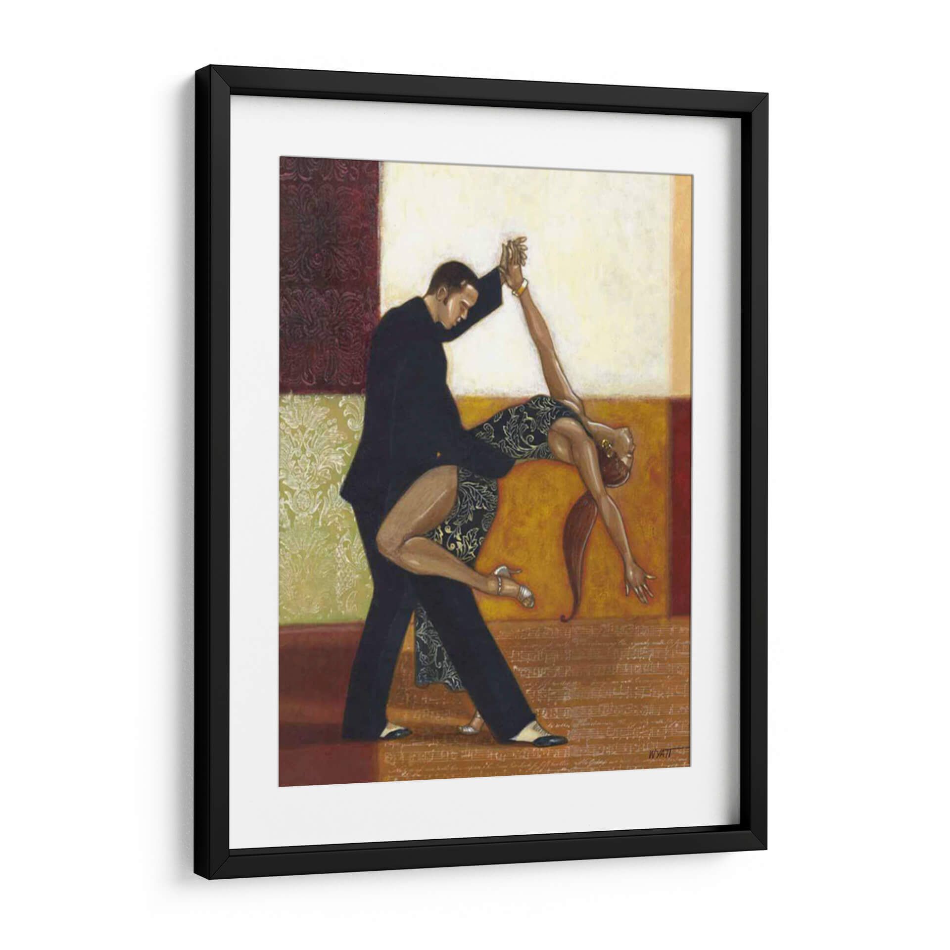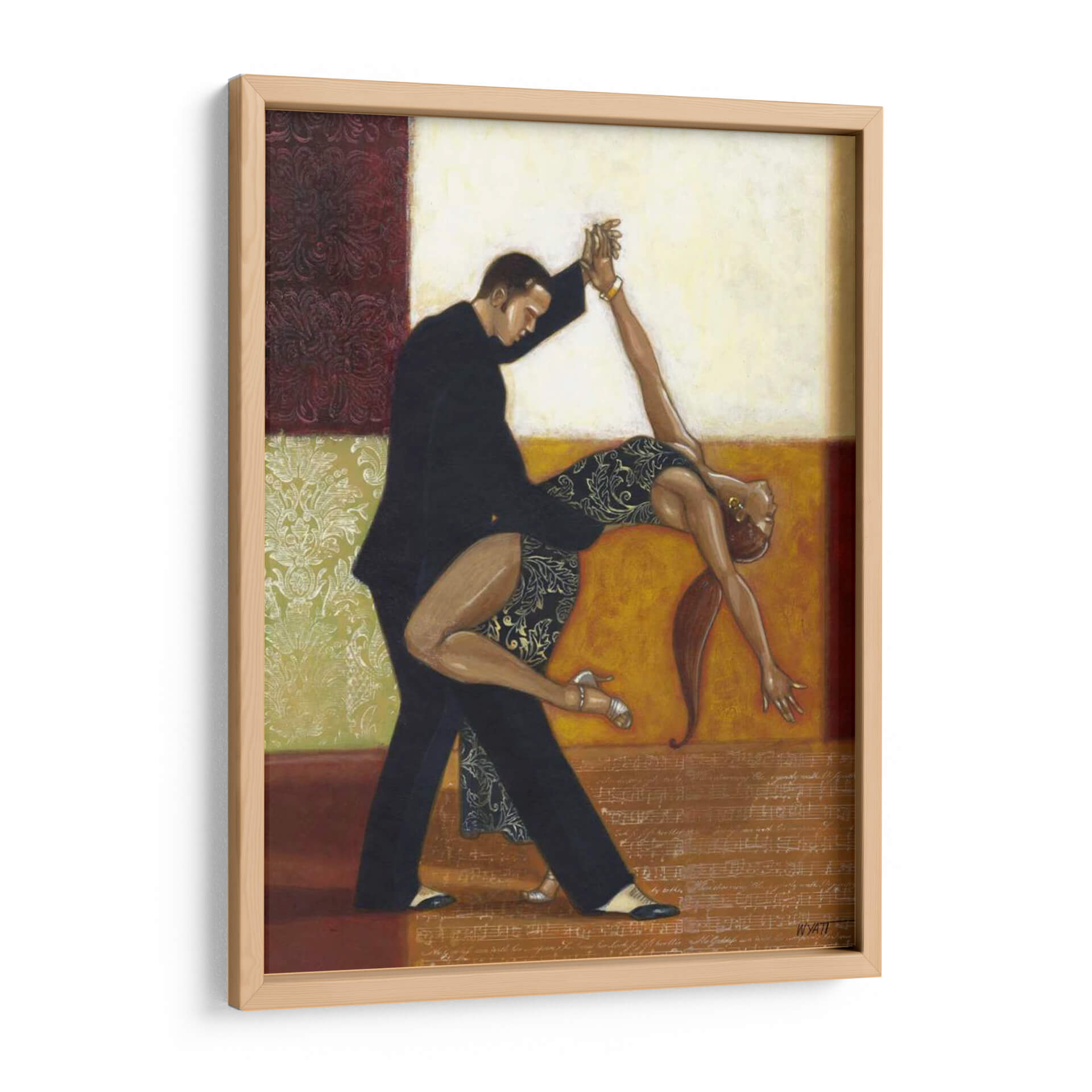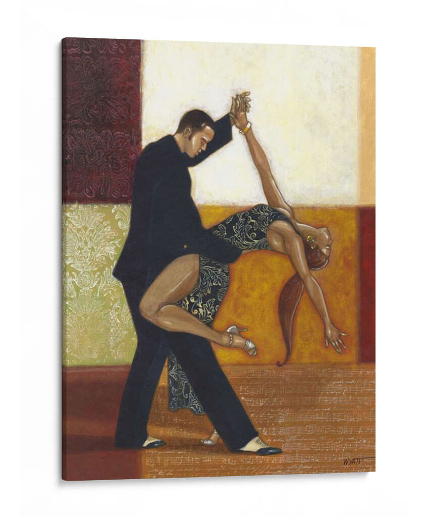 Sumérgete en la pasión y la elegancia de "Dance III" de Norman Wyatt Jr., una obra de arte que captura la intensidad de un baile de salón con una maestría excepcional. Este cuadro decorativo presenta a una pareja en un abrazo dinámico, donde la mujer, con un vestido adornado y una pose cautivadora, se inclina hacia atrás mientras su compañero la sostiene con firmeza. La paleta de colores cálidos, dominada por tonos tierra, ocres y acentos de borgoña y verde musgo, crea una atmósfera íntima y vibrante. El fondo, con texturas sutiles y un patrón damasco estilizado, añade profundidad y sofisticación a la composición. La técnica del artista evoca un estilo contemporáneo con toques de expresionismo, resaltando el movimiento y la conexión emocional entre los bailarines. "Dance III" es una pieza que irradia energía y sensualidad, perfecta para añadir un punto focal de carácter y estilo a tu sala de estar, comedor o incluso un espacio de entretenimiento. Su capacidad para evocar el arte de la danza lo convierte en una adición distinguida para cualquier amante del arte y la decoración.