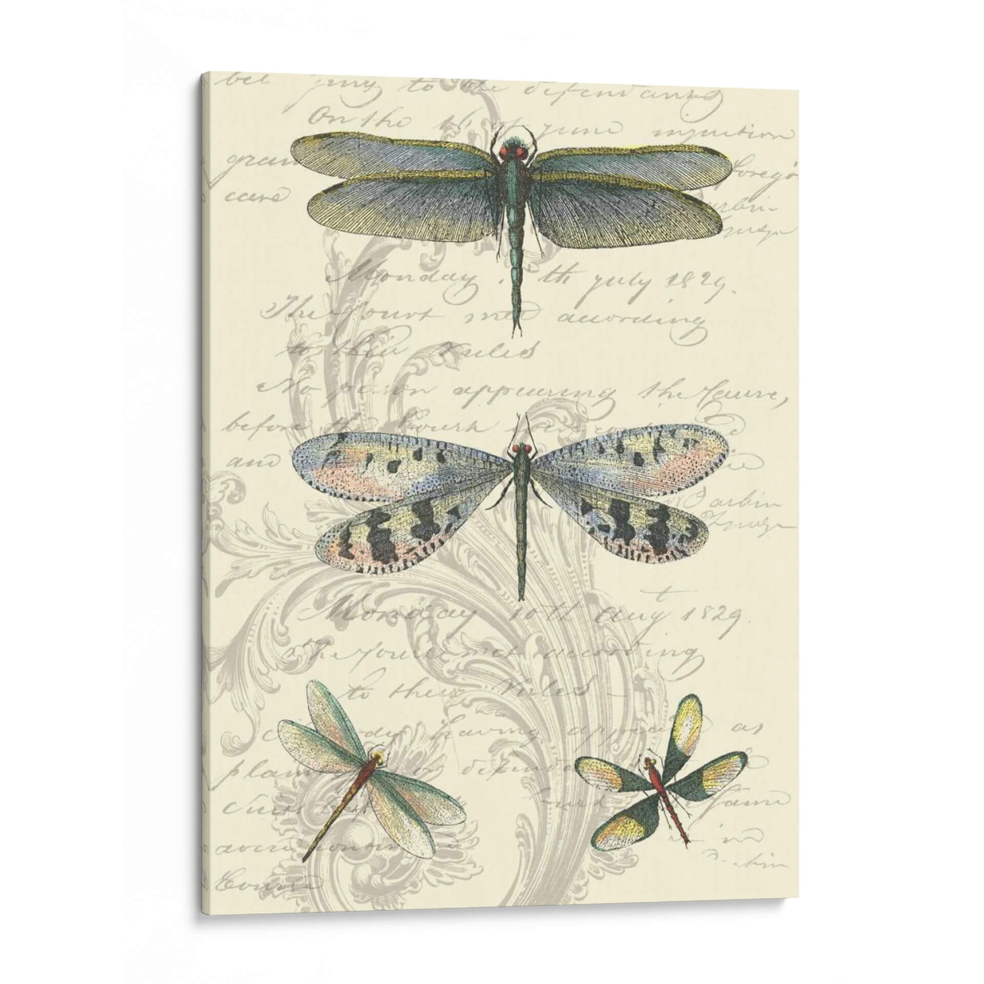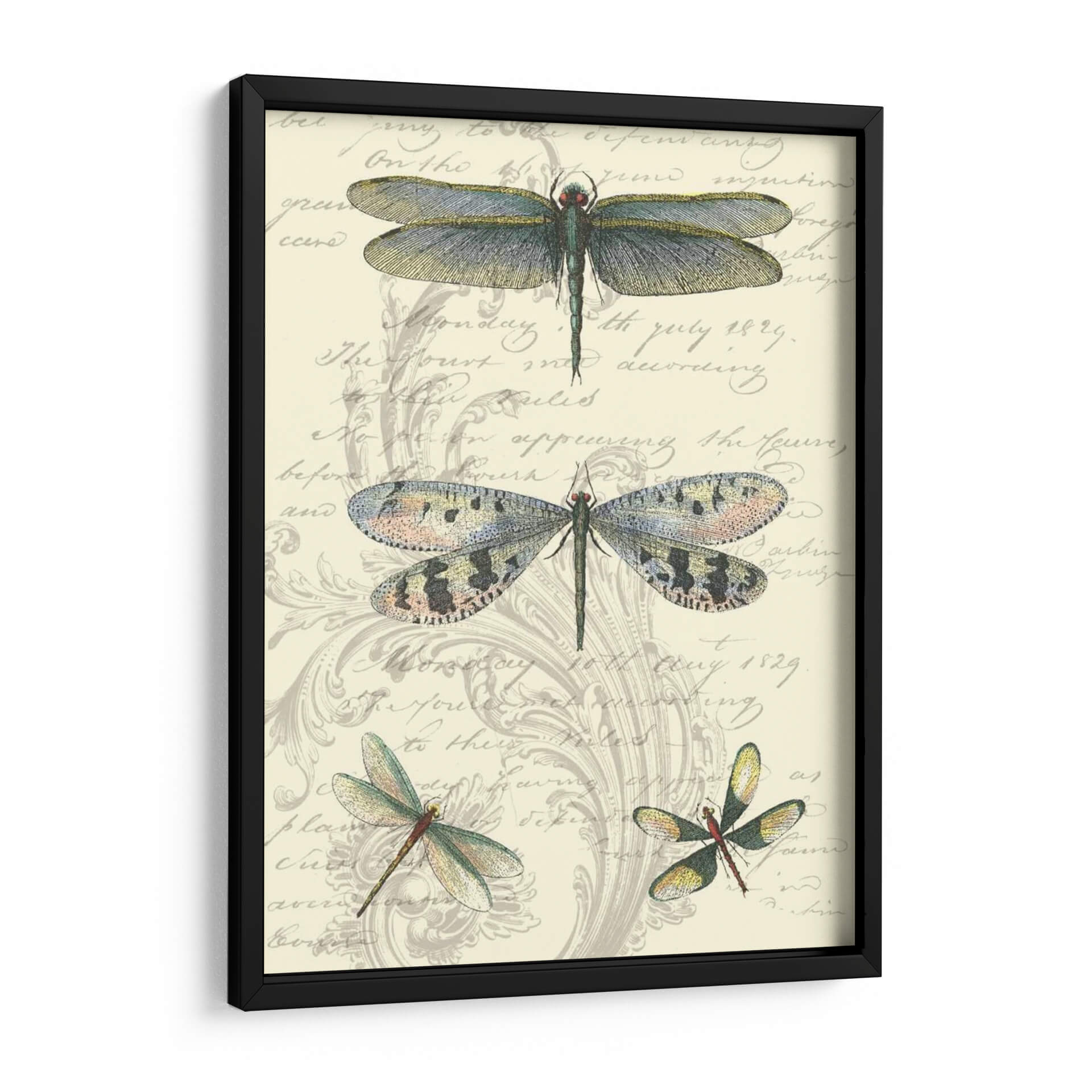 Captura la delicadeza y el encanto de la naturaleza con este exquisito cuadro decorativo de libélulas. La obra "Dragonfly Delight II" de Vision Studio presenta una composición etérea sobre un fondo de escritura antigua y ornamentos florales sutiles, evocando una sensación de nostalgia y elegancia atemporal. La paleta de colores se centra en tonos tierra y pasteles suaves, con acentos vibrantes en las alas de las libélulas, creando una armonía visual que aporta serenidad y sofisticación a cualquier espacio. Las detalladas ilustraciones de las libélulas, cada una con un diseño único, invitan a la contemplación y añaden un toque de maravilla natural al ambiente. Ideal para salones, dormitorios o estudios, este cuadro decorativo es perfecto para aquellos que aprecian la belleza sutil y los elementos inspirados en la entomología y la estética vintage. Transforma tu hogar u oficina en un santuario de calma y estilo con esta pieza inspiradora que celebra la intrincada belleza del mundo natural. Su diseño versátil lo convierte en el complemento perfecto para una variedad de estilos decorativos, desde el clásico hasta el contemporáneo.