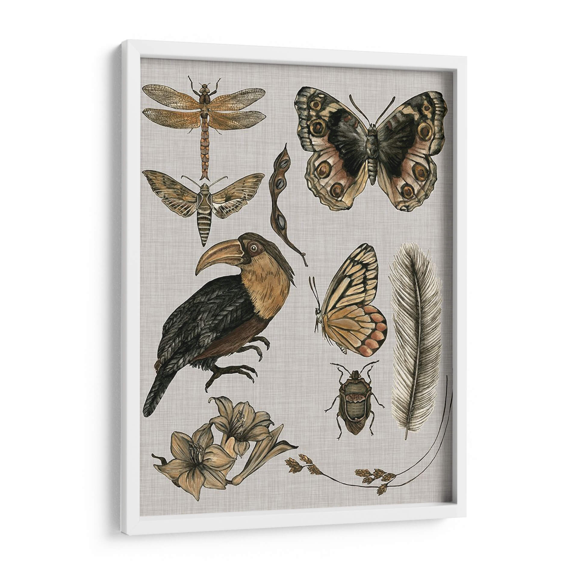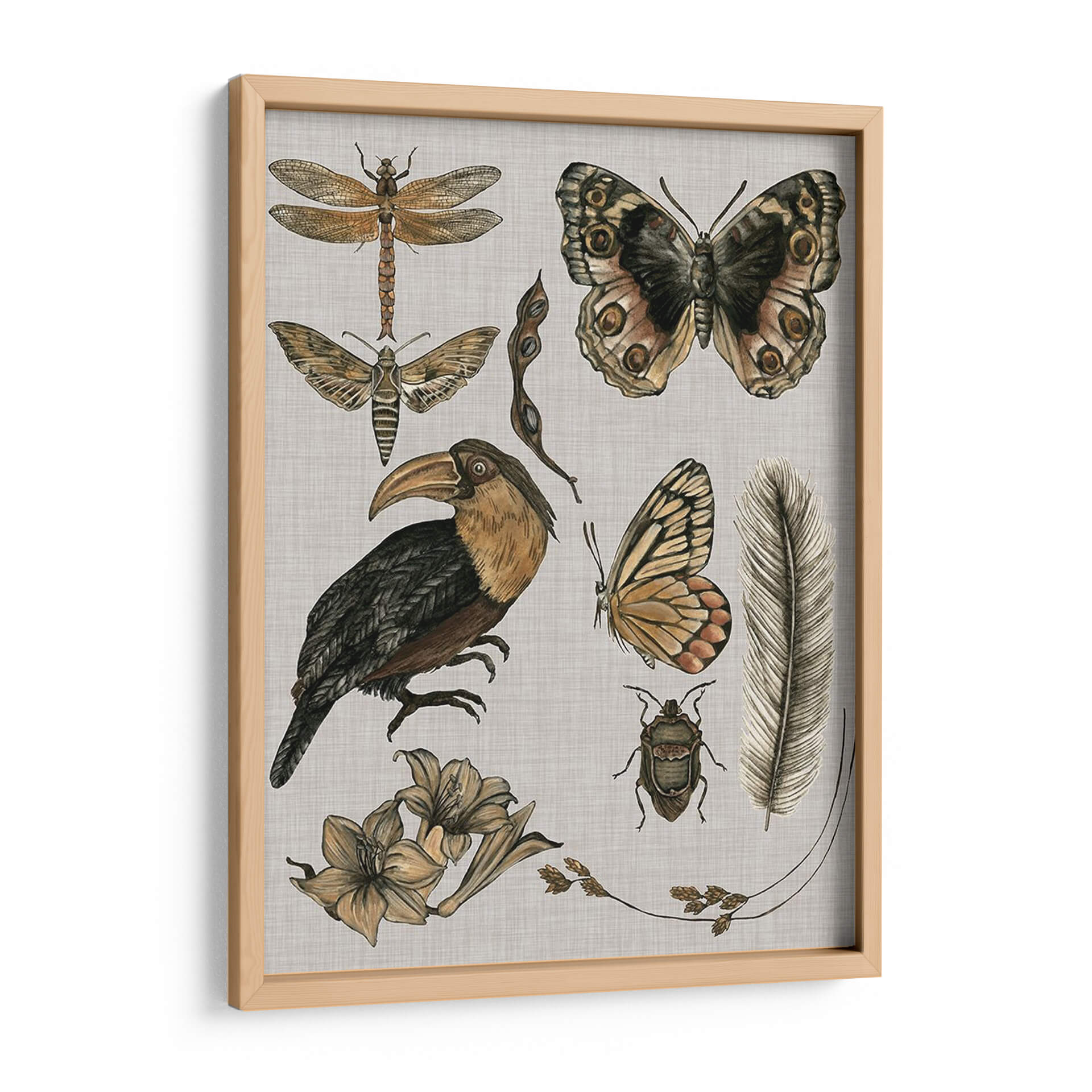 Embárcate en un viaje visual con "Estudios De La Naturaleza I", una cautivadora obra de arte de Melissa Wang que celebra la intrincada belleza del mundo natural. Este cuadro decorativo presenta una colección exquisita de insectos y elementos botánicos, meticulosamente representados con un estilo que evoca las ilustraciones científicas clásicas, pero con un toque contemporáneo. La paleta de colores, dominada por tonos tierra y sepia, imparte una sensación de calma y sofisticación atemporal, perfecta para añadir un toque de serenidad y elegancia a cualquier espacio. Observa la delicadeza de las mariposas, la imponente presencia de un ave exótica y la sutil textura de las vainas y plumas, todo ello dispuesto en una composición armónica sobre un fondo texturizado que recuerda a un lienzo natural. "Estudios De La Naturaleza I" es más que una simple decoración de pared; es una invitación a contemplar los detalles que a menudo pasamos por alto, transformando tu hogar u oficina en un santuario de inspiración natural. Ideal para salones, dormitorios o estudios que buscan un acento de la naturaleza con un aire de refinamiento.