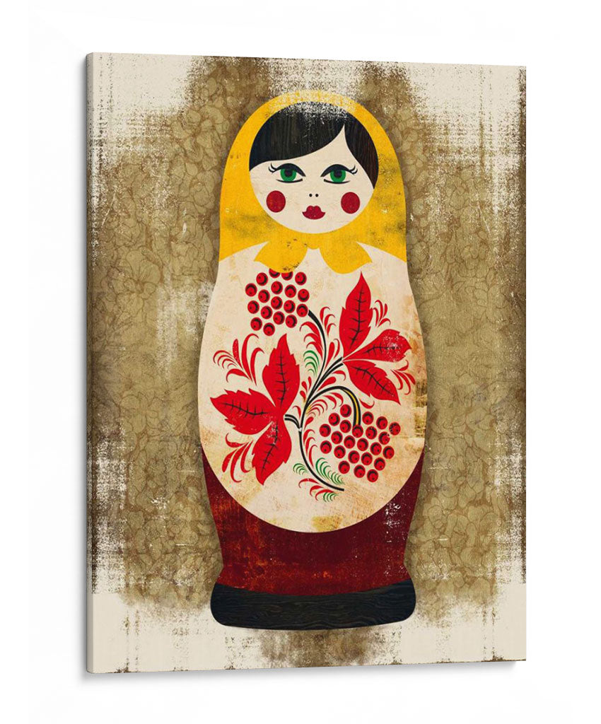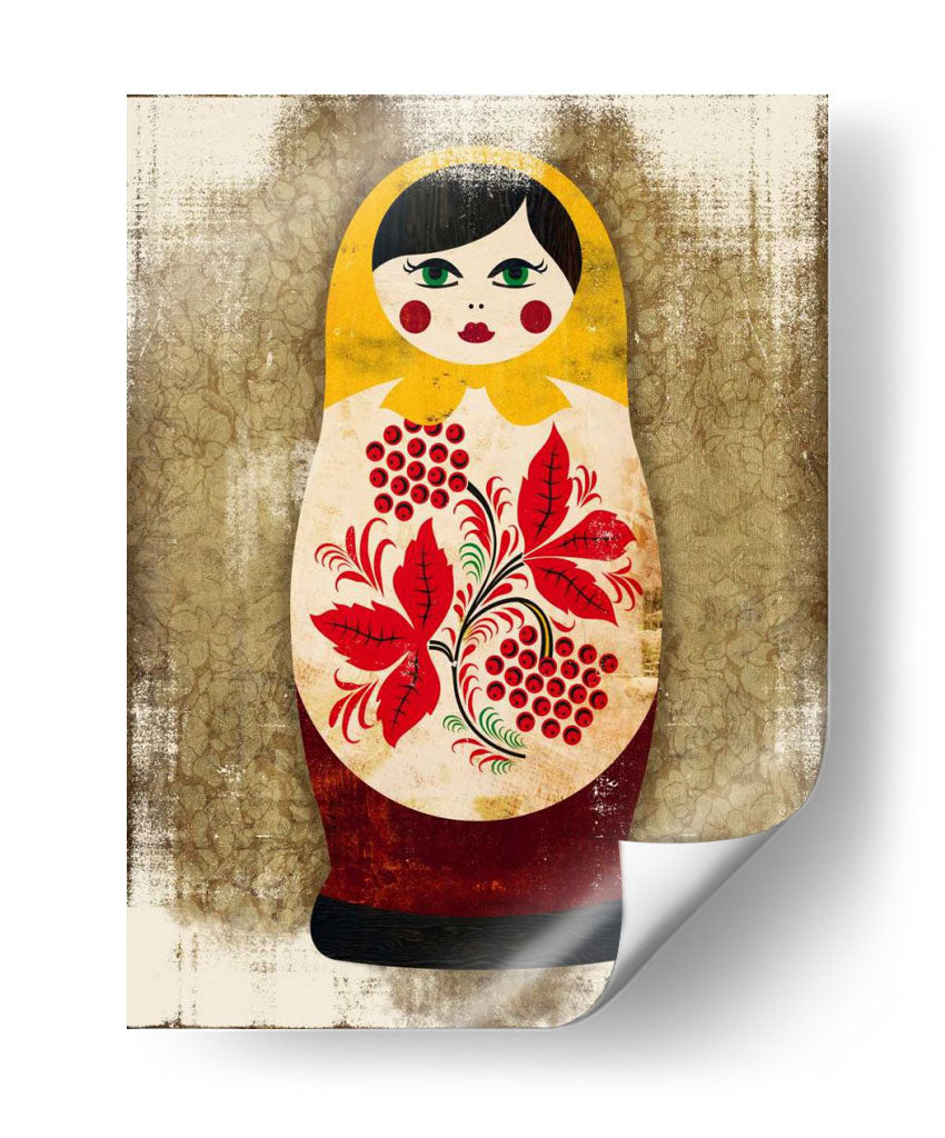 Sumérgete en la tradición y el encanto con "Muñecas De Anidación I", una obra de arte que captura la esencia de las icónicas muñecas rusas. Esta pieza, creada por el colectivo de artistas Art Collective, presenta una representación estilizada y vibrante de una muñeca Matrioshka, con una paleta de colores que combina el cálido amarillo de su tocado, el profundo rojo de su vestimenta y los intensos tonos rojos y verdes del intrincado diseño floral en su abdomen. El fondo texturizado en tonos tierra y beige añade una pátina de autenticidad y profundidad, evocando una sensación de historia y artesanía. La mirada penetrante de la muñeca y la delicadeza de los detalles florales invitan a la contemplación, aportando un toque de carácter y calidez a cualquier espacio. Ideal para salones, dormitorios o estudios, este cuadro decorativo es una elección perfecta para quienes buscan infundir sus hogares con un estilo único, influencias culturales y una atmósfera acogedora. Su diseño atemporal y su rica simbología lo convierten en una adición memorable a tu colección de arte de pared.