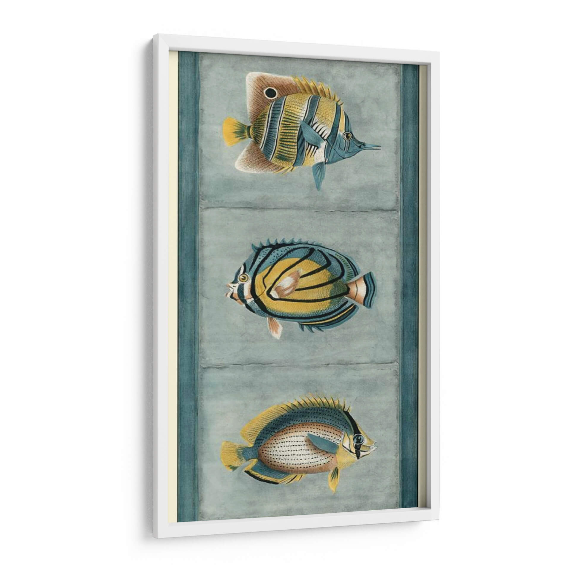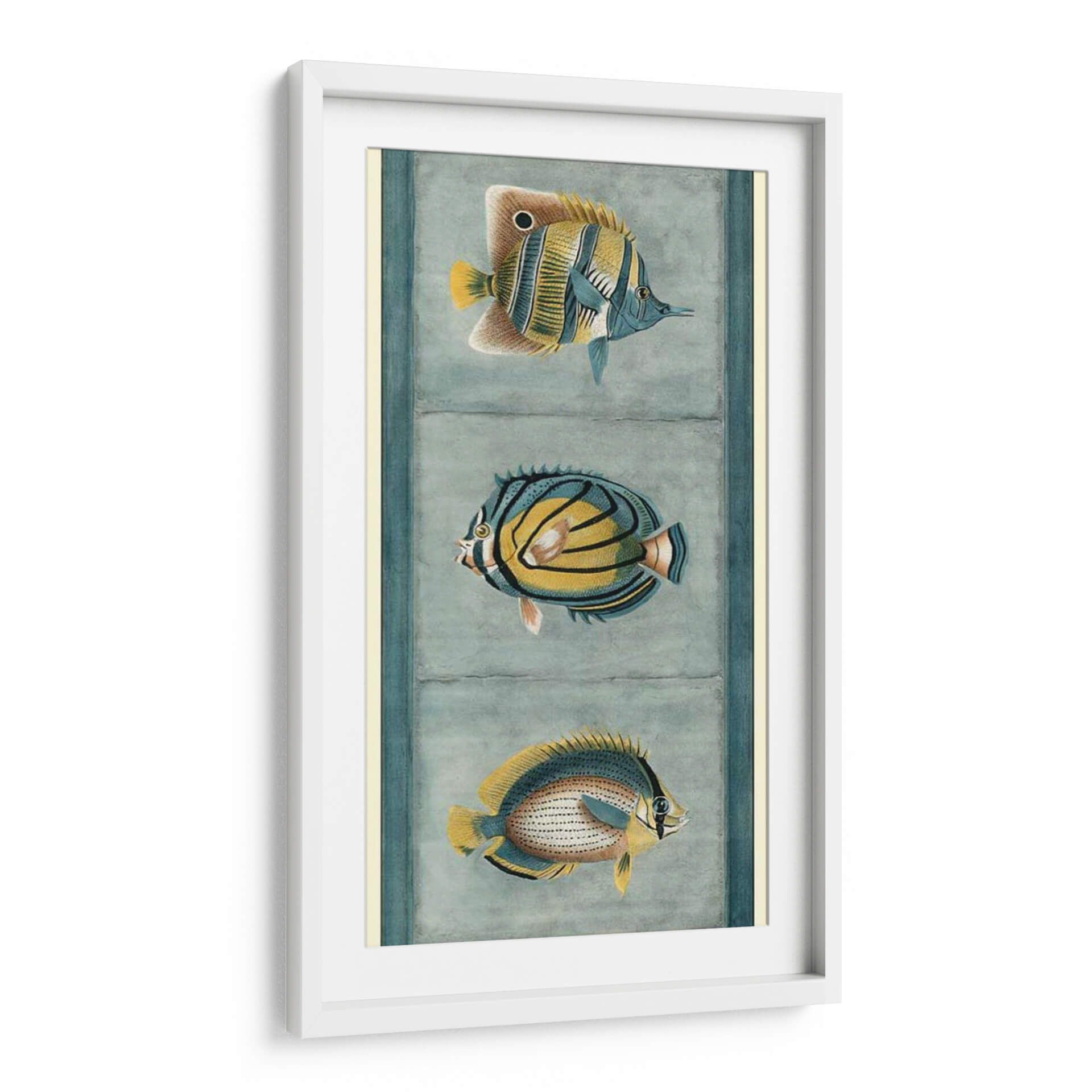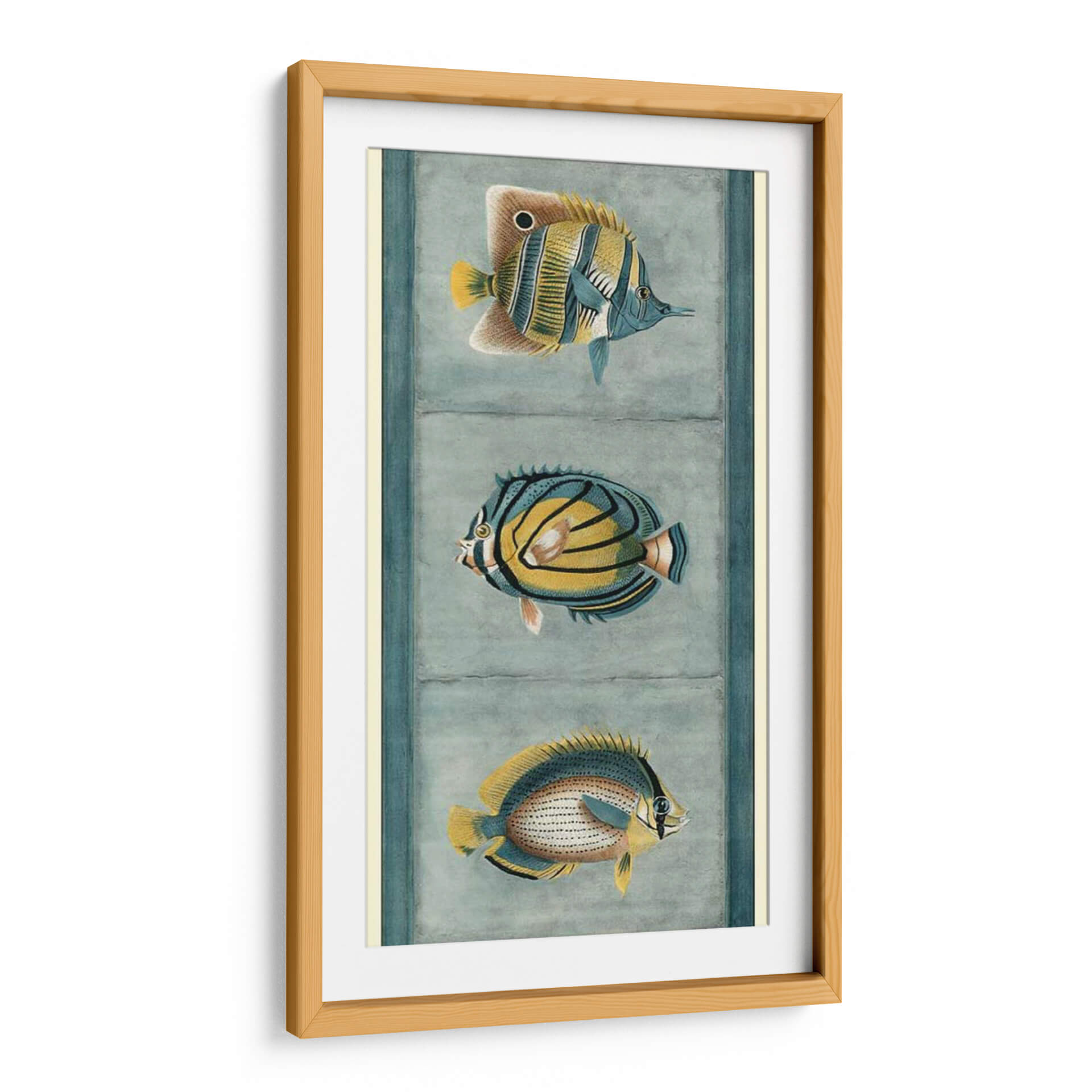 Sumérgete en la serenidad del océano con "Trío Tropical", una obra de arte decorativa que captura la belleza intrincada de tres peces de arrecife en un cautivador arreglo vertical. Cada pez es representado con un detalle exquisito, mostrando sus vibrantes patrones y formas únicas, que evocan la riqueza de la vida marina. La paleta de colores, dominada por tonos serenos de azul, verde azulado y acentos de amarillo y ocre, crea una atmósfera de calma y sofisticación. La composición, dividida en secciones que recuerdan a estudios naturalistas clásicos, aporta un toque de elegancia atemporal. Este cuadro decorativo es perfecto para añadir un toque de naturaleza y tranquilidad a tu hogar u oficina, ya sea en un dormitorio, una sala de estar o un estudio. "Trío Tropical" no es solo una pieza de decoración, sino una ventana a la maravilla del mundo submarino, ideal para quienes buscan arte que inspire paz y admiración por la naturaleza. Su estilo detallado y la armoniosa combinación de colores lo convierten en un complemento versátil para una variedad de estilos de interiores, desde el costero hasta el contemporáneo, infundiendo serenidad y un toque de exotismo en cualquier espacio.