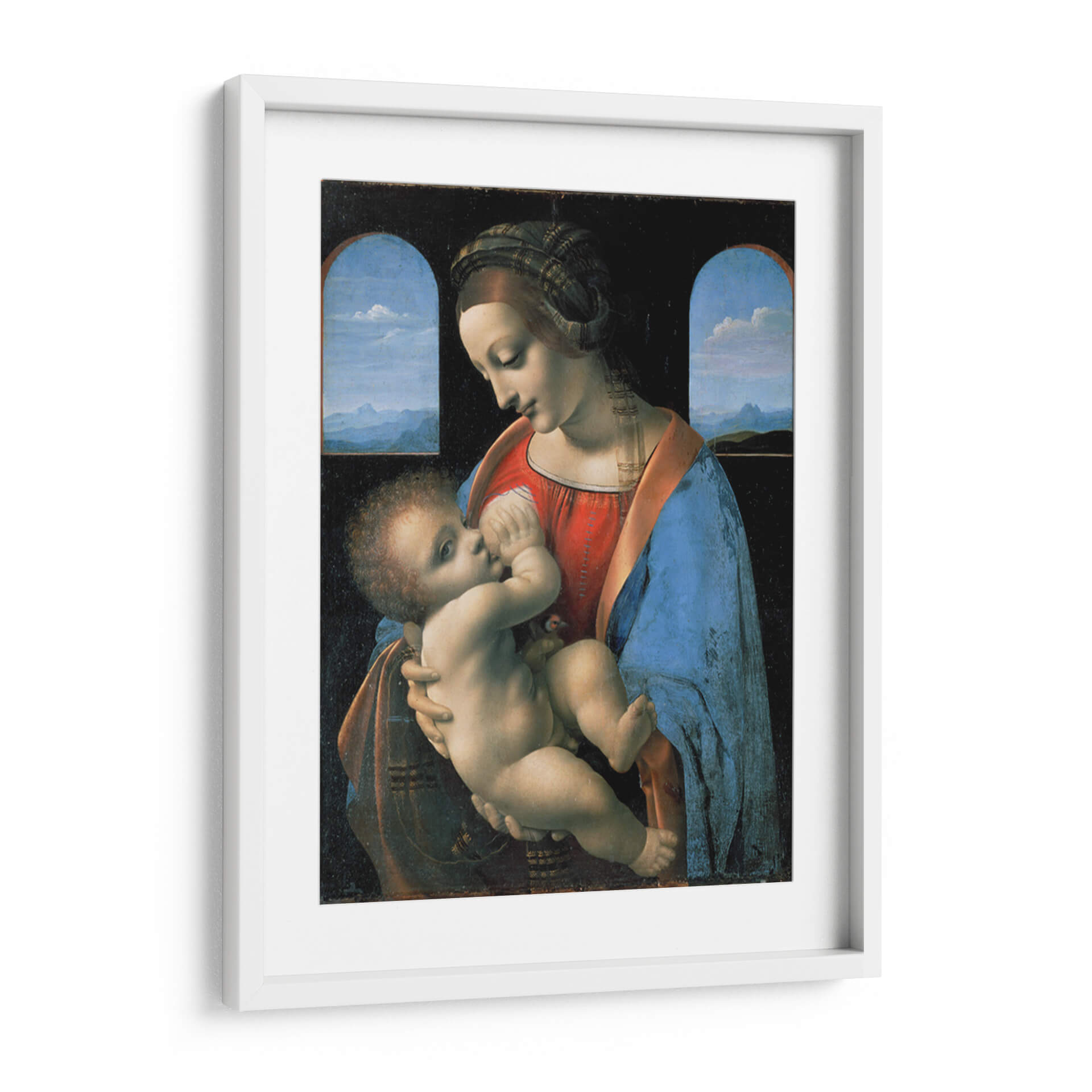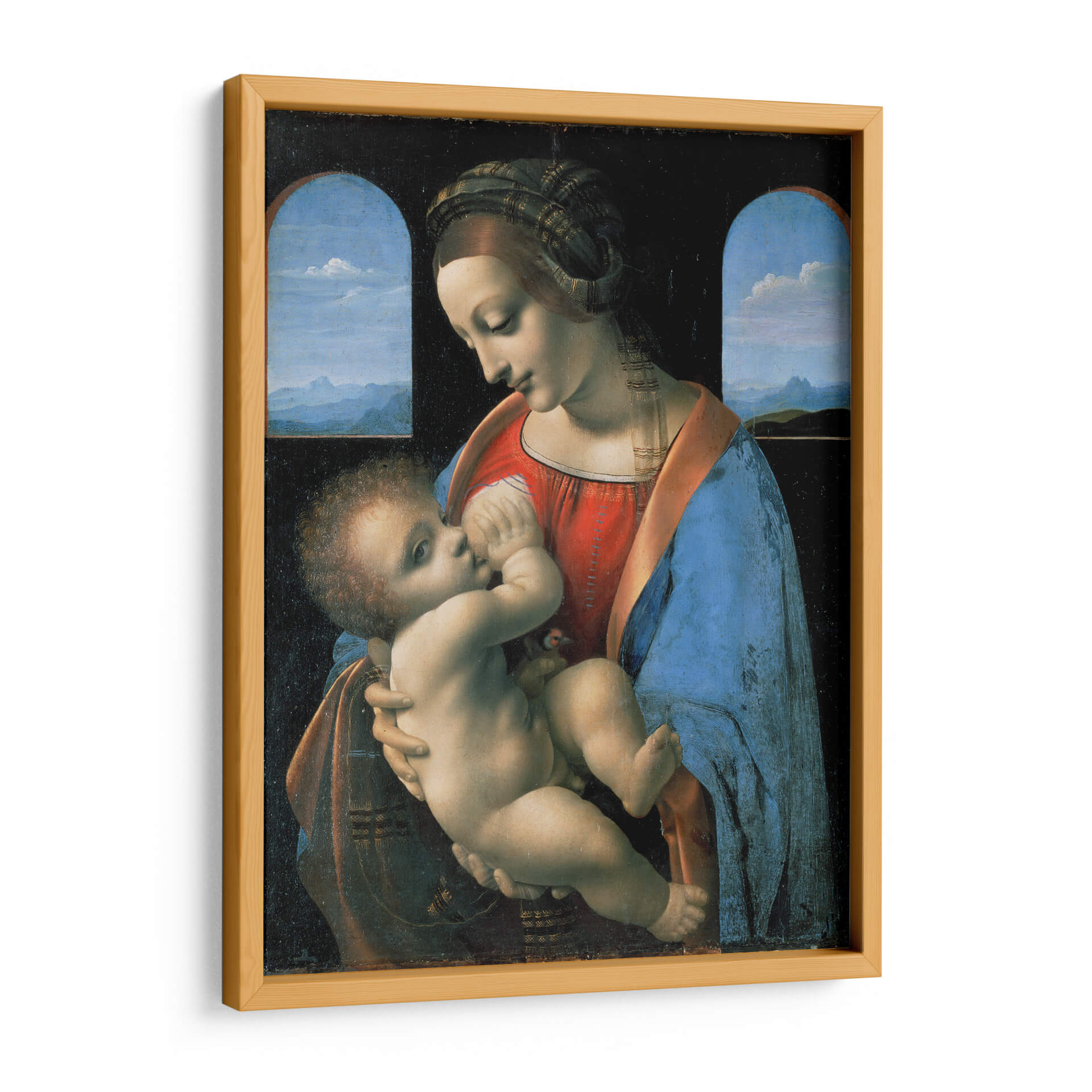 Embellece tu hogar con "Madona Litta", una obra maestra que captura la tierna intimidad entre madre e hijo. Esta icónica pintura renacentista, atribuida a Leonardo da Vinci, irradia serenidad y devoción. Observa la delicadeza en la mirada de la virgen y la pureza en las formas del niño, envueltos en una atmósfera de calma profunda. La paleta de colores, dominada por tonos cálidos en el vestido de la madre y el azul envolvente de su manto, complementa a la perfección el paisaje etéreo visible a través de las ventanas arqueadas, evocando un sentimiento de paz y espiritualidad. El detallado juego de luces y sombras, característico del estilo de Da Vinci, añade profundidad y realismo a la escena, invitando a la contemplación. Este cuadro decorativo es ideal para crear un rincón de tranquilidad en tu dormitorio, aportar sofisticación a tu sala de estar, o infundir un ambiente de reflexión en tu estudio u oficina. "Madona Litta" no es solo una pieza de arte, es una ventana a la belleza atemporal y a las emociones universales, perfecta para coleccionistas y amantes del arte clásico que buscan añadir un toque de elegancia y significado a sus espacios.