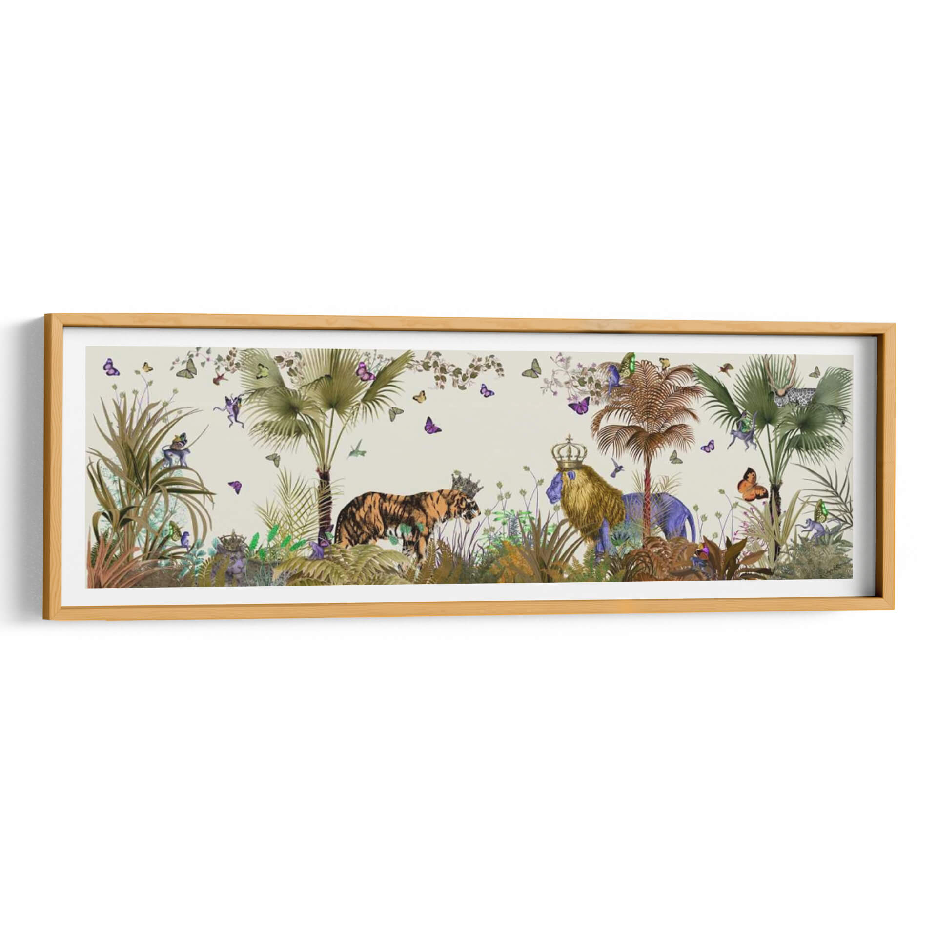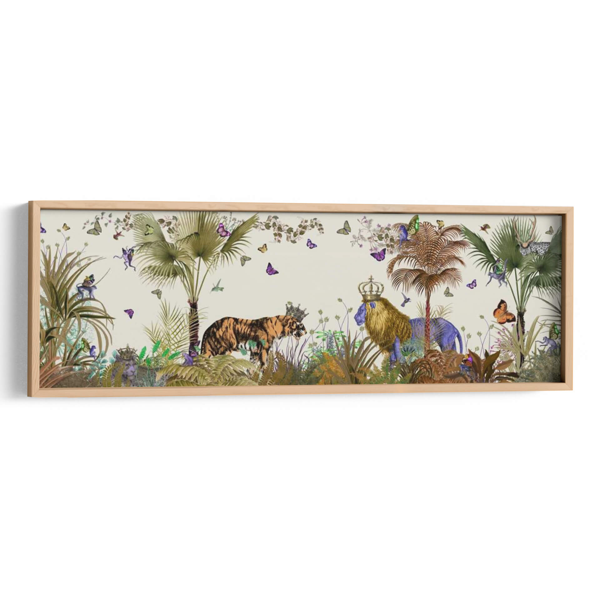 Sumérgete en un mundo de fantasía exótica con "Leones Tropicales, Musgo", una obra de arte cautivadora del artista Fab Funky. Este cuadro decorativo transporta a tu hogar a una jungla exuberante y vibrante, donde la majestuosidad de los felinos se entrelaza con la delicadeza de la naturaleza. Observa la detallada representación de palmeras frondosas, vegetación densa y la presencia etérea de mariposas revoloteando, creando un escenario de ensueño. La paleta de colores, rica en verdes profundos, tonos tierra y toques de púrpura y naranja, evoca una sensación de misterio y vitalidad. El estilo surrealista y la composición panorámica de esta pieza la convierten en un punto focal impresionante para cualquier sala de estar, estudio o incluso una oficina que busque un toque de originalidad y sofisticación. "Leones Tropicales, Musgo" no es solo una decoración; es una invitación a la aventura y a la contemplación, perfecta para quienes aprecian el arte contemporáneo con una narrativa visual única. Añade un toque de la selva a tu vida y deja que esta obra maestra inspire conversaciones y admiración en todos tus invitados, transformando tu espacio en un santuario de estilo y fantasía.