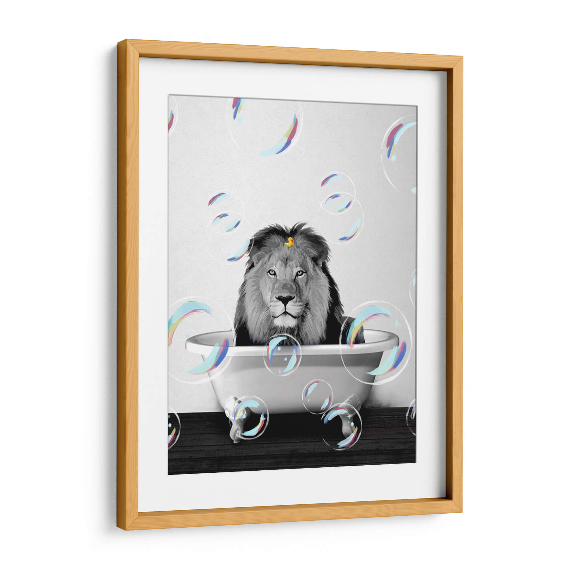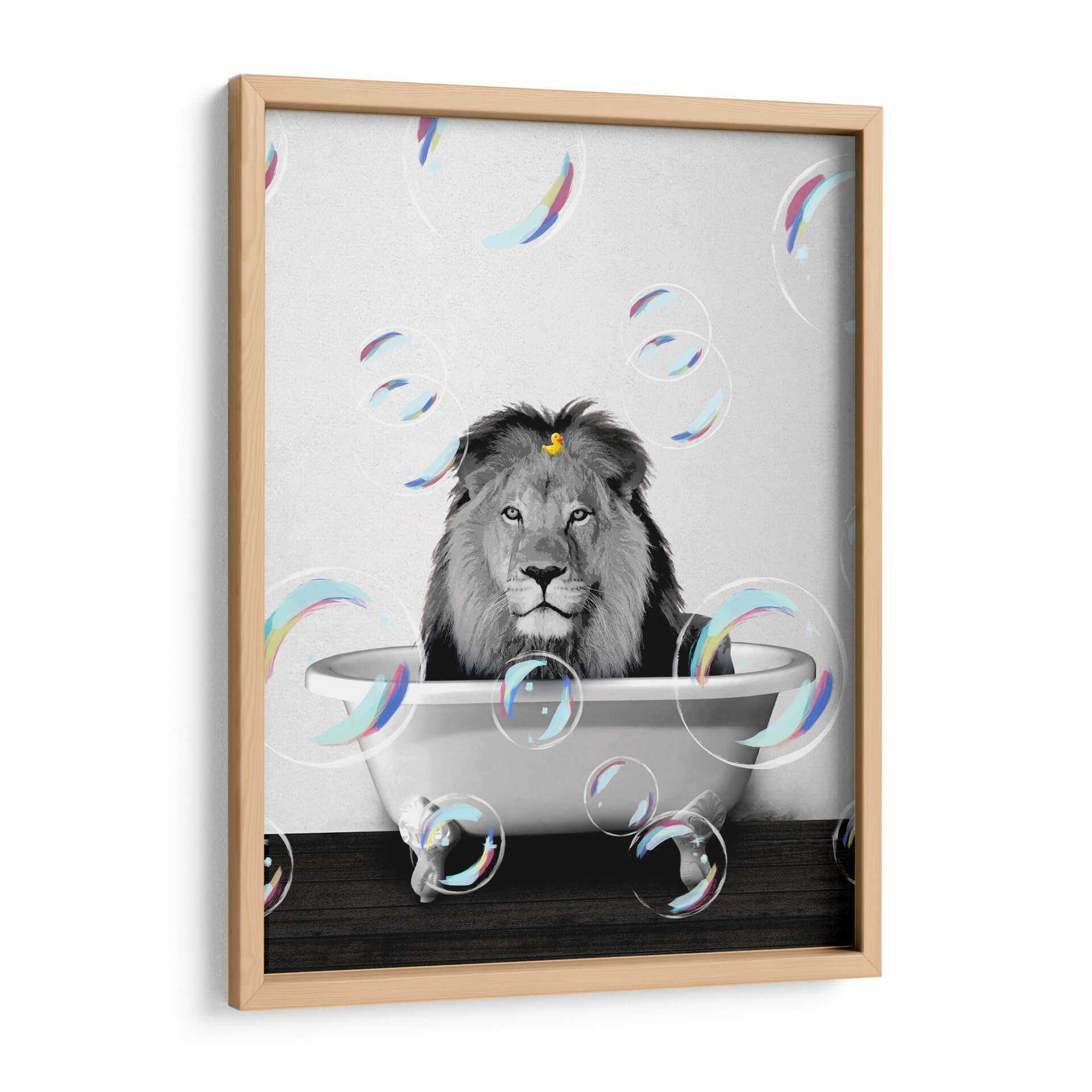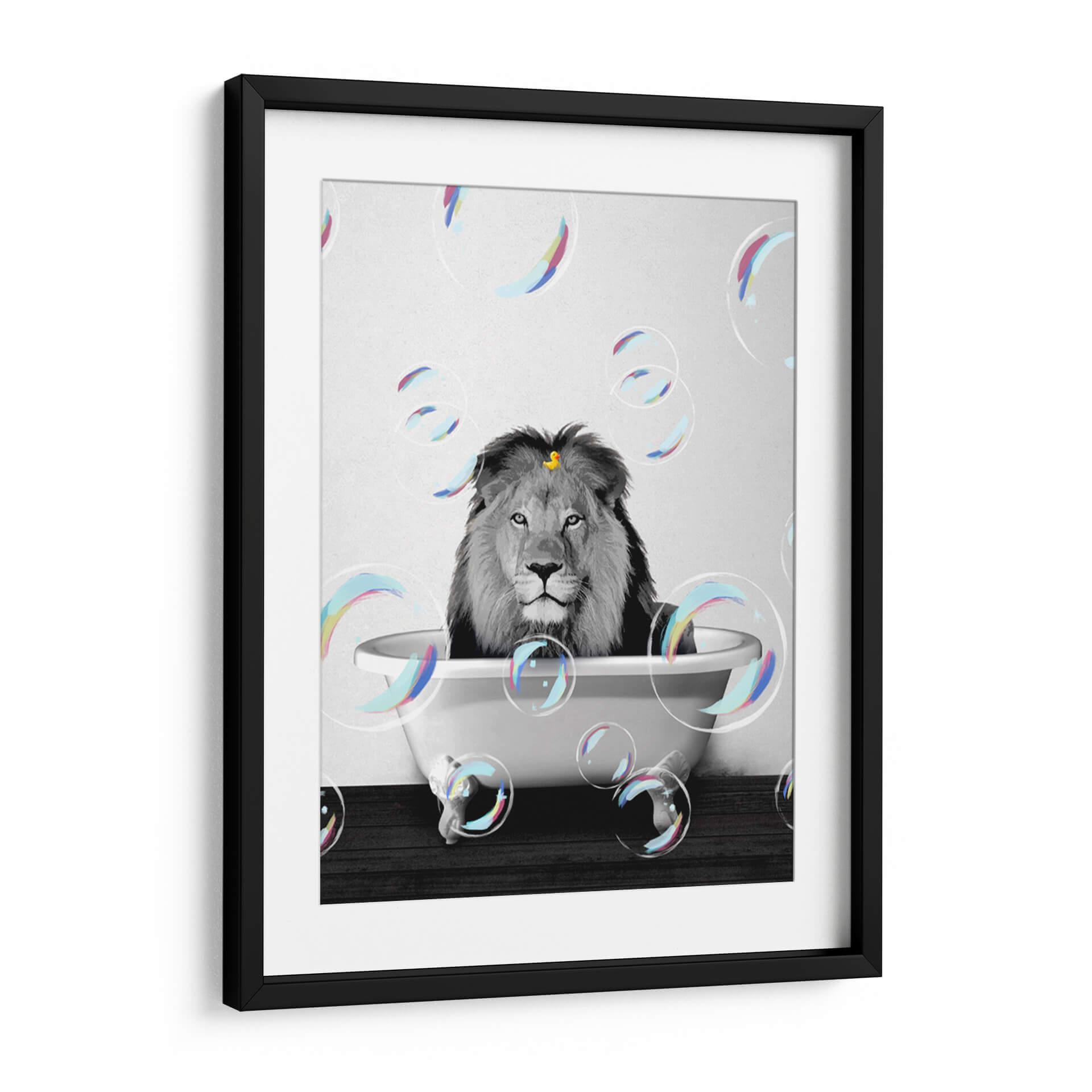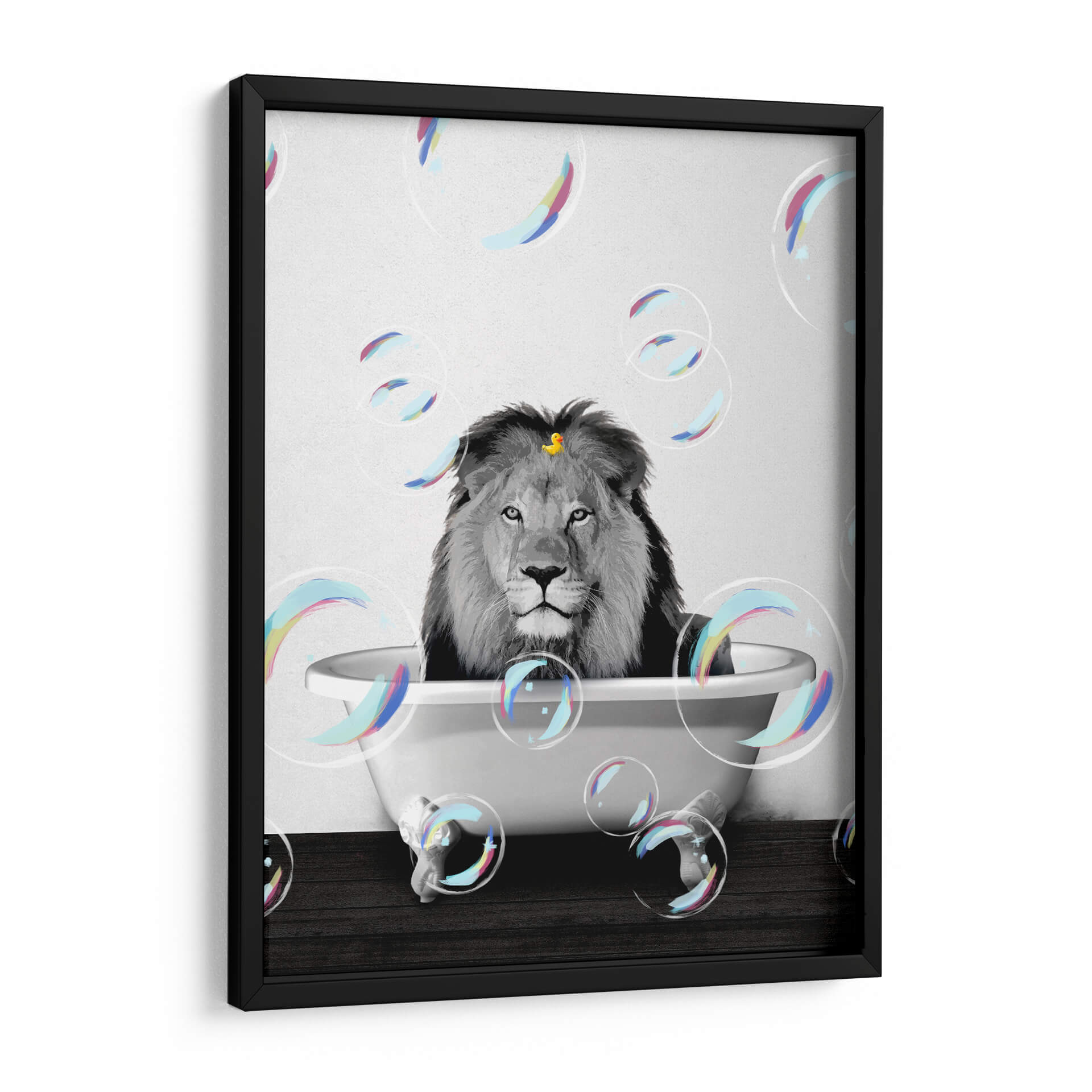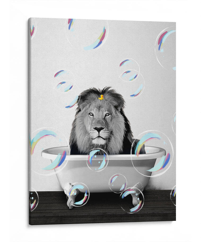 Sumérgete en el encanto y la originalidad de "Lion Bath", una obra de arte única que desafía las convenciones y aporta un toque de humor y sofisticación a tu decoración. Este cuadro decorativo presenta un majestuoso león, representado en vibrantes tonos de gris, disfrutando de un relajante baño de burbujas. El contraste entre la fuerza inherente del rey de la selva y la dulzura de un patito de goma sobre su cabeza, junto a las etéreas burbujas de jabón que flotan en el aire, crea una escena surrealista y cautivadora. La paleta de colores, predominantemente monocromática con sutiles toques de color en las burbujas, aporta elegancia y permite que la obra se integre armoniosamente en diversos estilos de interiores, desde el contemporáneo hasta el ecléctico. Ideal para salones modernos, dormitorios con personalidad o incluso oficinas que buscan inspirar y romper la rutina, "Lion Bath" es una pieza que genera conversación y admiración. Su composición equilibrada y el detallado retrato del león invitan a la contemplación, ofreciendo un punto focal que equilibra lo salvaje con lo tierno, lo real con lo imaginario. Añade un toque de arte inesperado y memorable a tu hogar con esta impresionante creación.