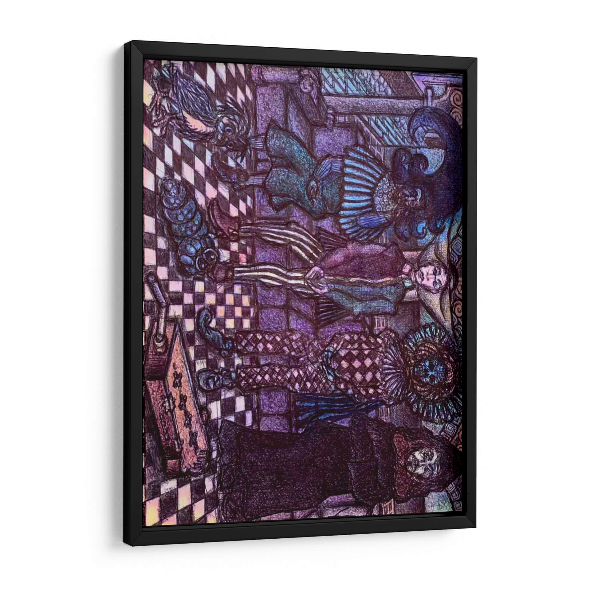 Adéntrese en el enigmático mundo de 'Arlequines' de FANUEL, un cuadro decorativo que invita a la contemplación. Esta obra maestra contemporánea presenta una composición intrincada de figuras que recuerdan a los arlequines, dispuestas sobre un suelo de tablero de ajedrez y un fondo texturizado. La paleta de colores, dominada por profundos púrpuras, azules vibrantes y toques de rosa y amarillo pálido, crea una atmósfera de misterio y fascinación. El estilo, con sus trazos detallados y una cierta cualidad onírica, evoca el espíritu del surrealismo y el arte teatral. Cada figura, con sus vestimentas y poses, parece contar una historia silenciosa, invitando al espectador a descifrar sus secretos. "Arlequines" es una pieza excepcional para aquellos que buscan añadir un toque de drama, intriga y sofisticación a su hogar u oficina. Ideal para salas de estar, estudios o cualquier espacio que se beneficie de una obra de arte distintiva que estimule la imaginación y sea un punto de conversación. Este cuadro decorativo es una declaración de estilo para los amantes del arte que aprecian la profundidad conceptual y la ejecución detallada.