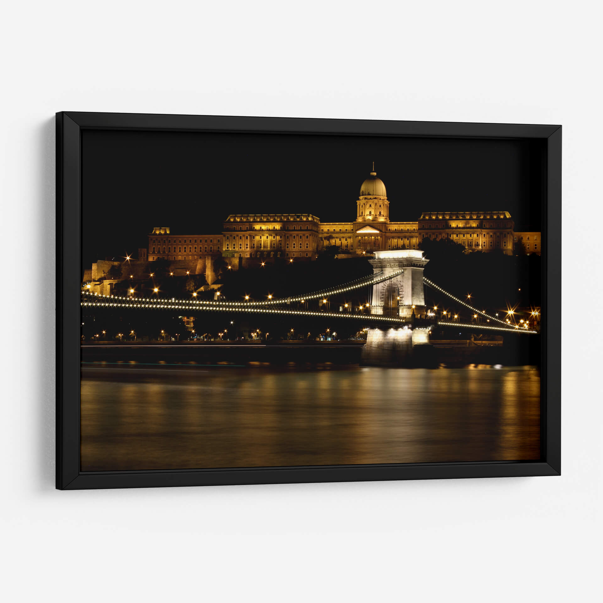 Emb acrque en un viaje visual a trav acr{s de la majestuosidad nocturna de Budapest con este impresionante cuadro decorativo. La obra captura el ic acronnico Castillo de Buda y el Puente de las Cadenas iluminados bajo el manto estrellado, creando una atm acrosfera de elegancia y misterio. Los tonos c acralidos y dorados de la iluminaci acronn artificial contrastan con la profunda oscuridad de la noche, resaltando la arquitectura hist acrorica y la serena superficie del r acrio Danubio. Esta pieza de arte contempor acaneo es ideal para infundir un toque de sofisticaci acronn y evocar la magia de las ciudades europeas en cualquier espacio. Su composici acronn paisaj acistica ofrece una perspectiva amplia y cautivadora, perfecta para convertirse en el punto focal de una sala de estar, un estudio o una oficina. Transforma tu hogar en una galer acra personal con este evocador paisaje urbano nocturno, que habla de historia, romanticismo y la belleza atemporal de la arquitectura iluminada. Una elecci acronn perfecta para amantes de los viajes y la arquitectura.
