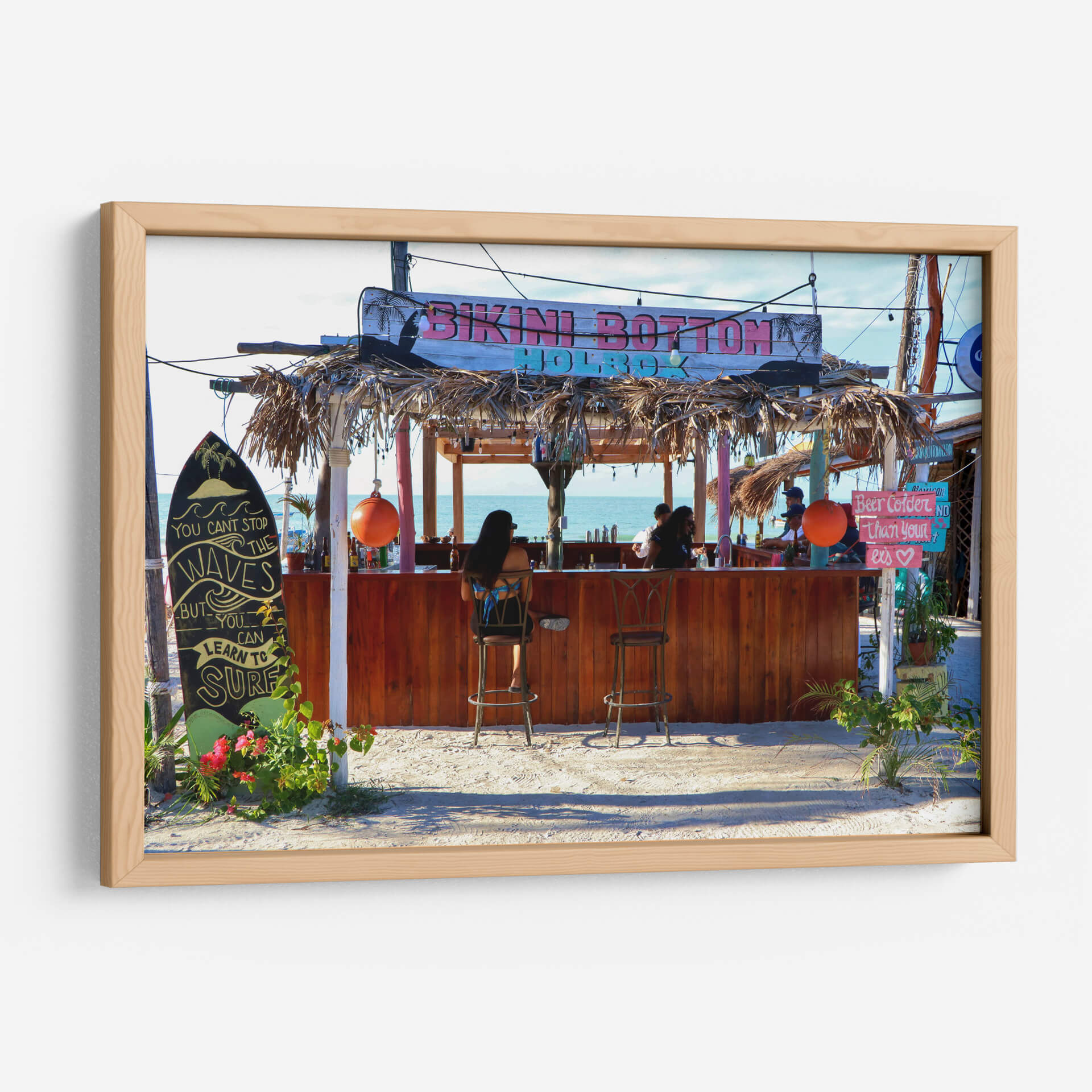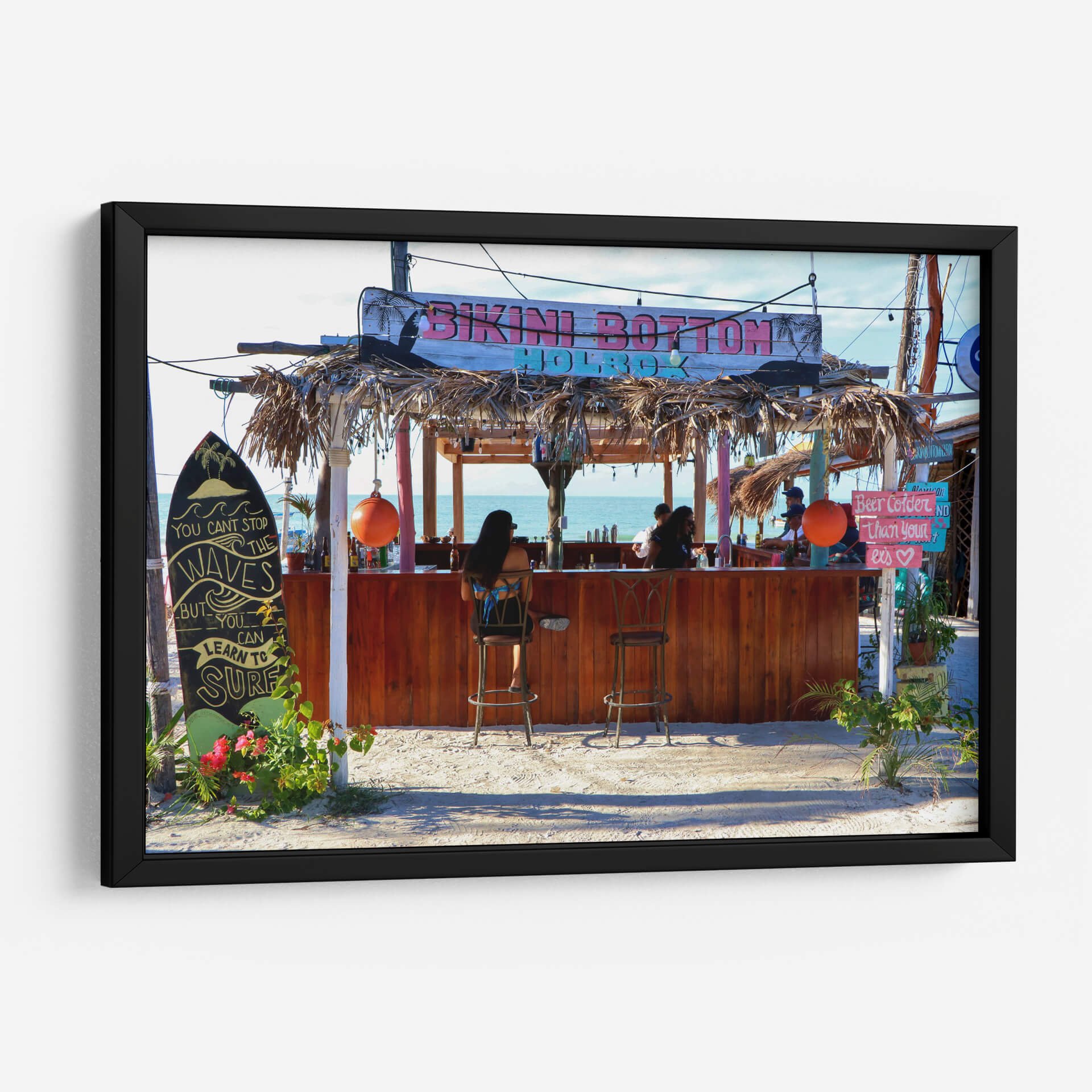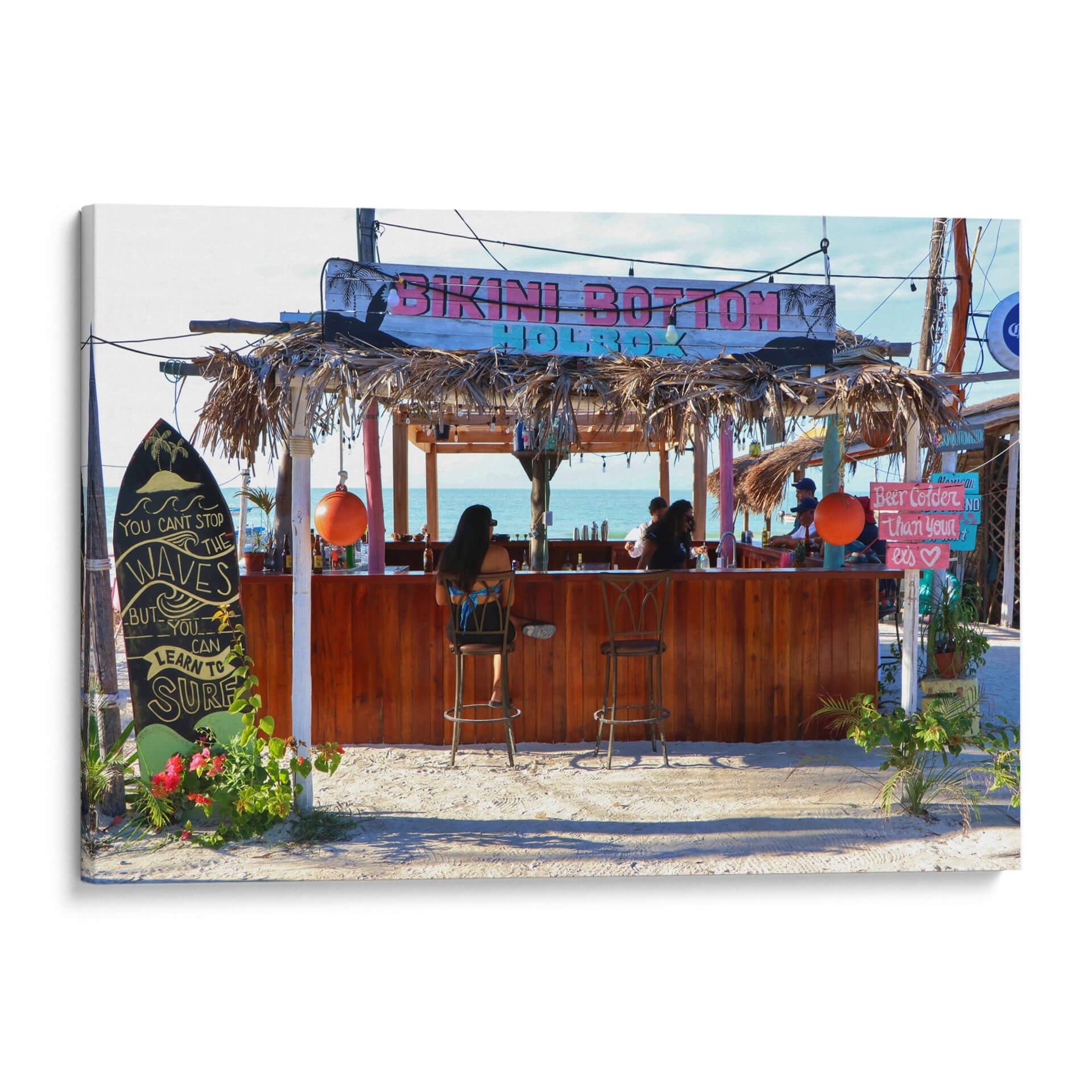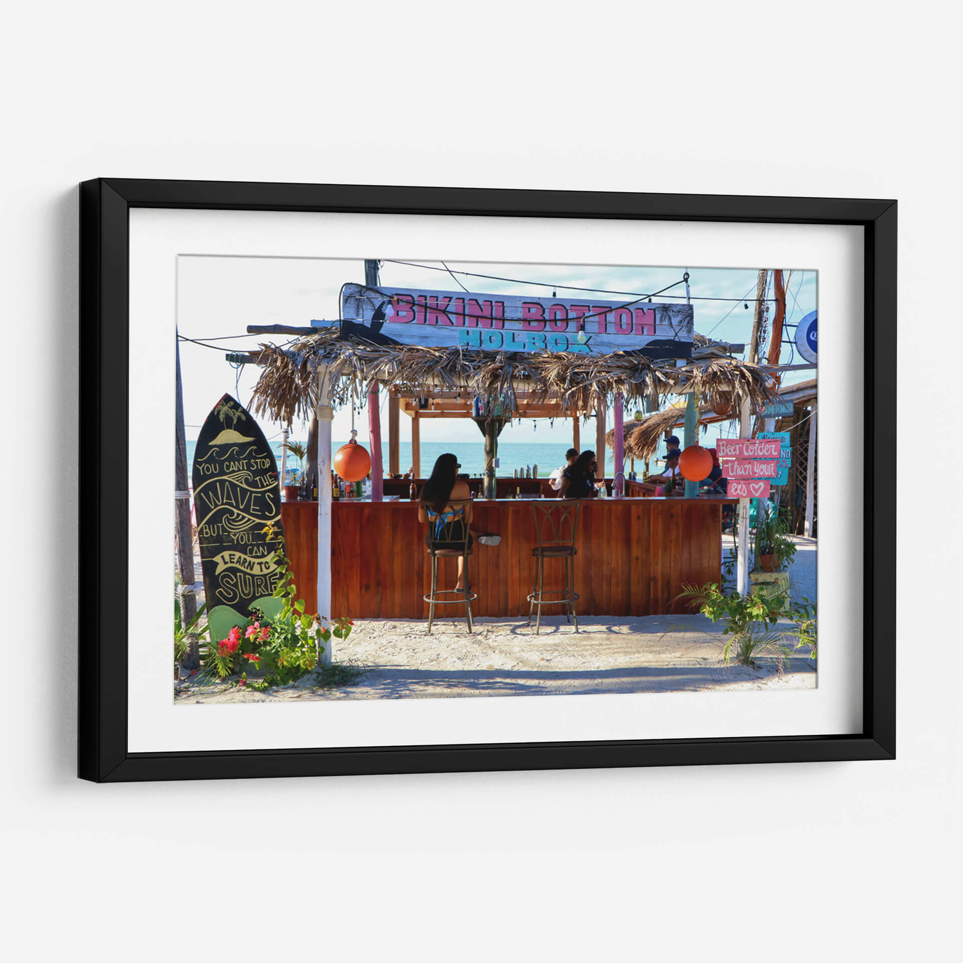 Captura la esencia vibrante y relajada de un paraíso tropical con este cuadro decorativo titulado 'Colorido bar en Holbox', obra del artista Luis Rodrigo Magaña Andrade. Esta pieza evoca la atmósfera despreocupada de unas vacaciones junto al mar, transportando la brisa marina y la alegría del verano directamente a tu hogar u oficina. La composición presenta un acogedor bar de playa con una estética rústica, adornado con techos de palma y una colorida señalización que invita a la relajación. Los tonos cálidos de la madera se combinan armoniosamente con los vibrantes colores del cielo y el mar al fondo, creando un contraste visual cautivador. Los detalles como la tabla de surf con un inspirador mensaje y la exuberante vegetación circundante añaden profundidad y carácter. Este cuadro es ideal para aquellos que buscan infundir a sus espacios un sentido de escapismo, diversión y calidez. Imagina este cuadro como el punto focal perfecto para tu sala de estar, un rincón de lectura o incluso un espacio comercial que desee proyectar una imagen de bienvenida y buen rollo. Es una invitación visual a desconectar y disfrutar de los placeres sencillos de la vida, perfecta para amantes de la playa, los viajes y el arte con alma.