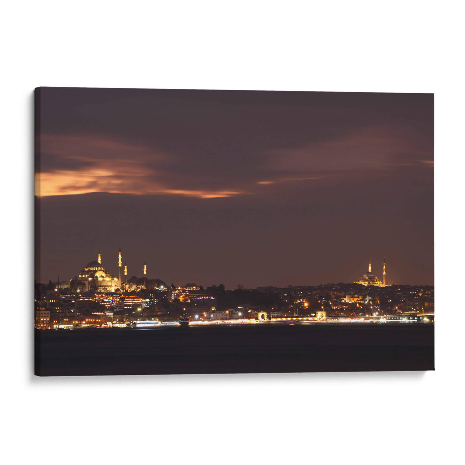 Captura la esencia mágica de Estambul con este impresionante cuadro decorativo "Estambul al anochecer desde la parte asiática", obra del artista Luis Rodrigo Magaña Andrade. Esta pieza evoca la majestuosidad de una ciudad que une continentes y culturas, vista desde la serenidad de la costa asiática al caer la noche. La paleta de colores, dominada por tonos oscuros y cálidos acentos de luz provenientes de la ciudad, crea una atmósfera de misterio y sofisticación. Se observan las icónicas siluetas de las mezquitas bañadas por una iluminación dorada, contrastando con el cielo crepuscular y las luces urbanas que se reflejan suavemente sobre el agua. La composición panorámica ofrece una vista expansiva que invita a la contemplación, transportando al espectador a la vibrante vida nocturna y la rica historia de esta metrópoli milenaria. Ideal para añadir un toque de elegancia y un punto de interés exótico a tu sala de estar, recibidor o estudio. Este cuadro decorativo no solo embellece tus paredes, sino que también cuenta una historia de viajes, cultura y contrastes. Una elección perfecta para amantes de la arquitectura, los paisajes urbanos y la fotografía de paisajes nocturnos.