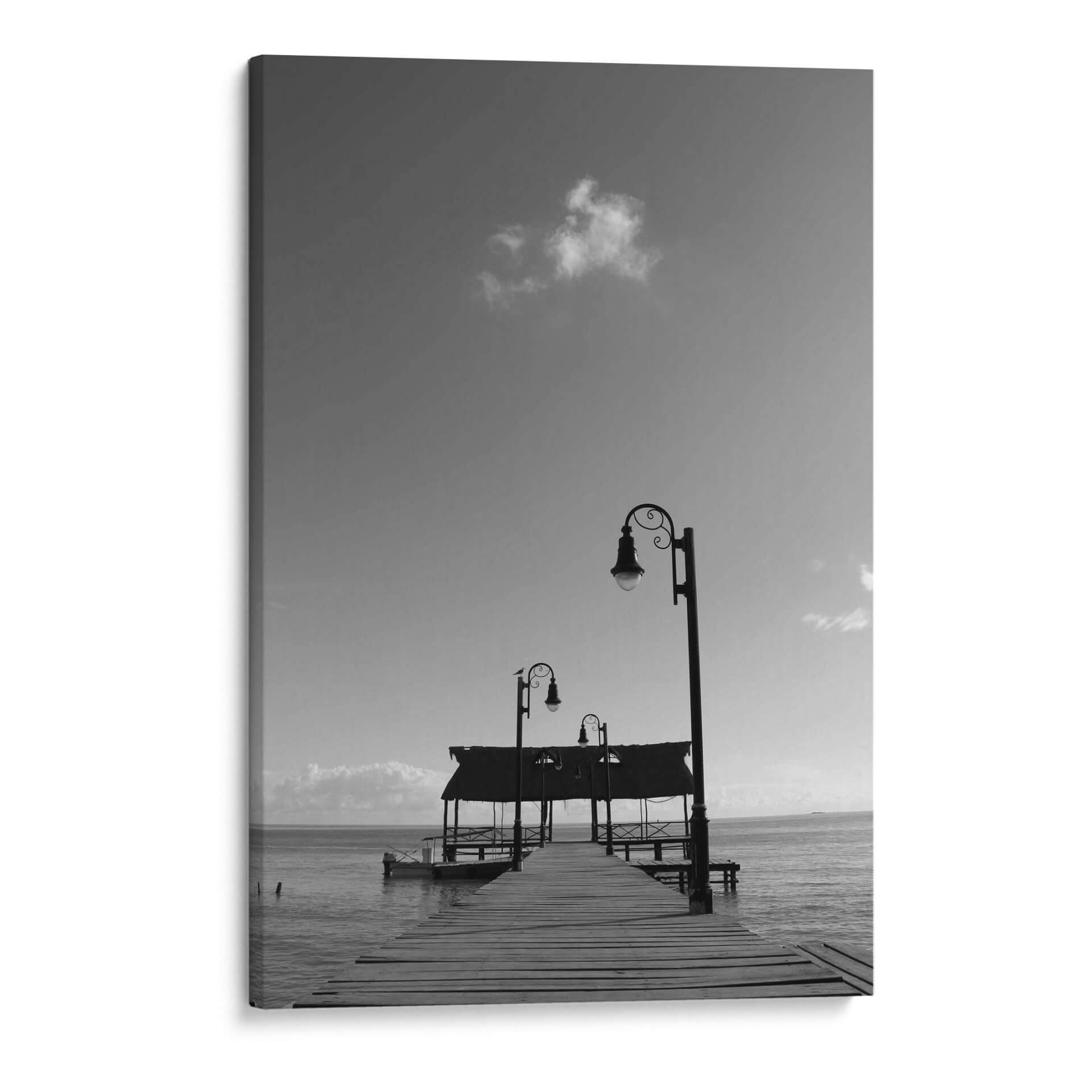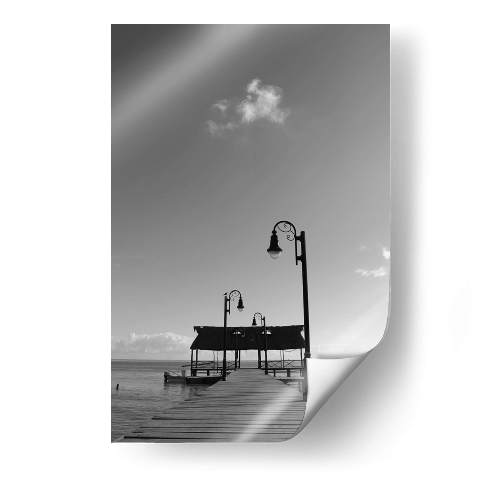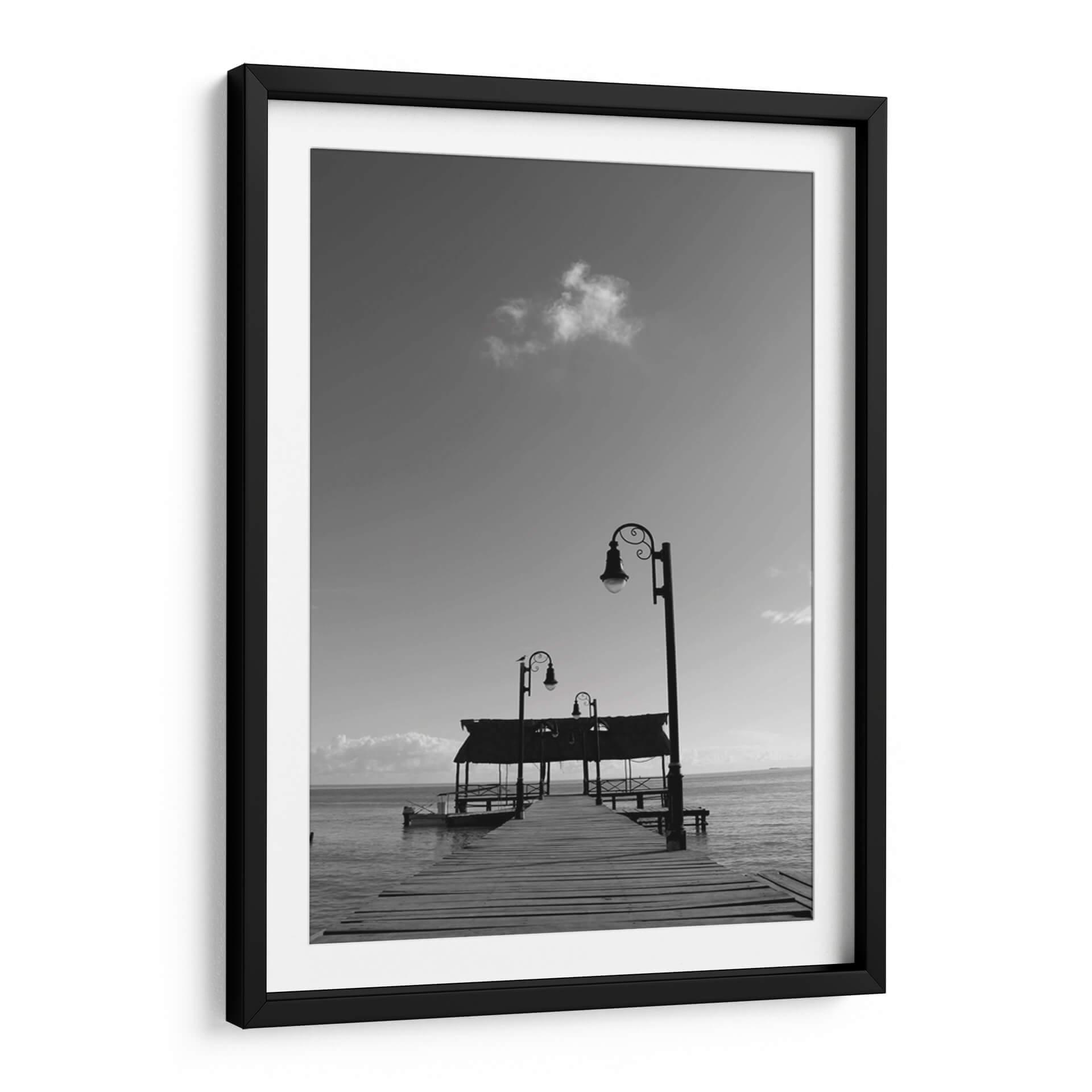 Sumérgete en la serena belleza de "Muelle en Isla de Campeche", una obra de arte digital que captura la esencia de un atardecer tranquilo junto al mar. Este cuadro decorativo, creado por Luis Rodrigo Magaña Andrade, te transporta a un oasis de paz con su evocadora composición en blanco y negro. Observa el muelle de madera que se adentra majestuosamente en el océano, flanqueado por elegantes farolas que prometen guiar el camino hacia la calma. Las sutiles nubes en el cielo y el suave oleaje del mar crean una atmósfera de introspección y tranquilidad. La paleta monocromática realza los contrastes y las texturas, aportando una profundidad visual que invita a la contemplación. Ideal para cualquier espacio que necesite un toque de serenidad y sofisticación, este cuadro decorativo es perfecto para salones, dormitorios o estudios, transformando cualquier habitación en un refugio de paz y elegancia. Su estilo atemporal y su temática marina lo convierten en una pieza versátil que encaja en diversas decoraciones, desde las más modernas hasta las clásicas.