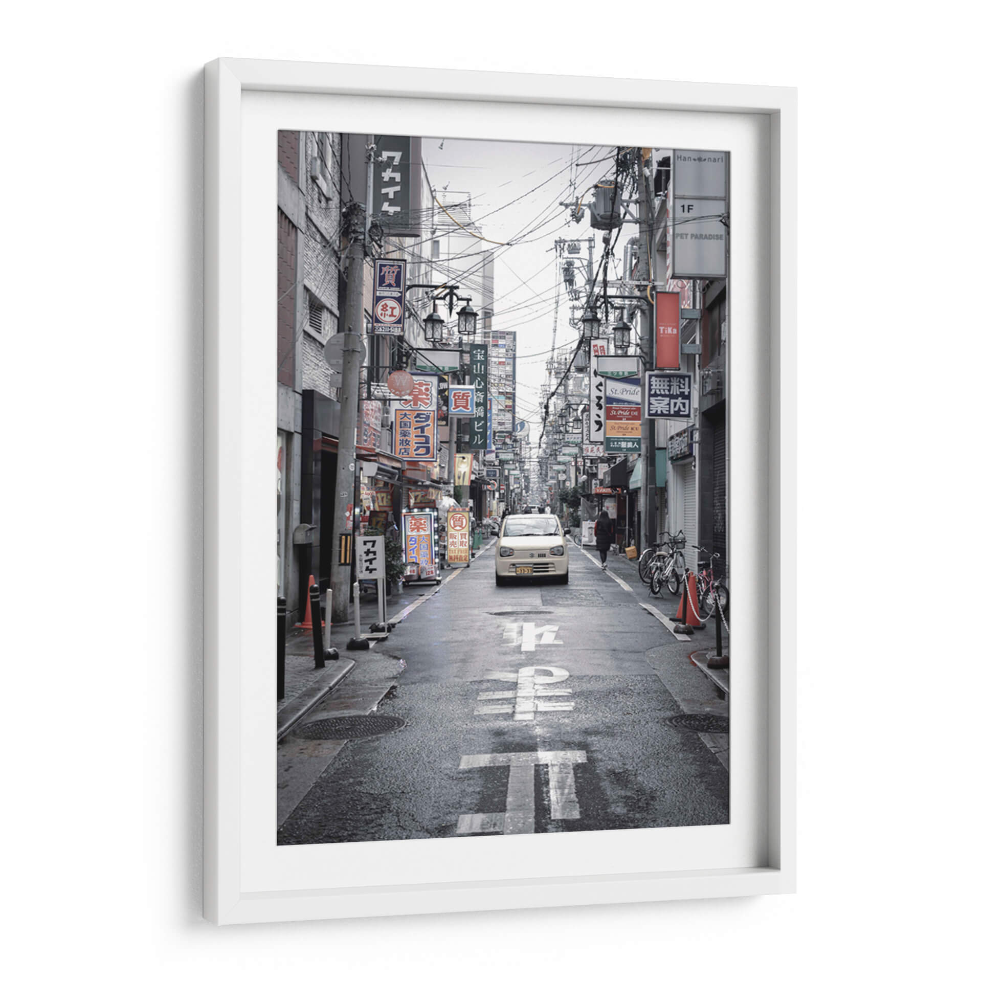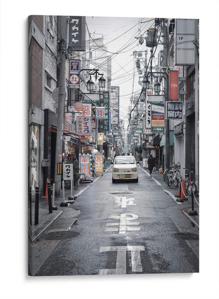 Sumérgete en la atmósfera urbana con el cuadro decorativo "Callejón" de Luis Velasco. Esta obra captura la esencia de una callejuela japonesa, inundada por un ambiente de realismo cotidiano y un toque de misterio. La composición nos guía a través de un pasaje flanqueado por edificios con fachadas repletas de carteles y una maraña de cables aéreos que añaden profundidad y carácter. Los colores predominantes en tonos grises, blancos y negros, junto con sutiles acentos de color en los letreros, crean una paleta urbana y sofisticada que evoca la vitalidad y el bullicio de la ciudad, pero con una sensación de calma contemplativa. La perspectiva, que se adentra en la calle hacia un coche solitario, invita a la reflexión sobre la vida urbana y la experiencia individual dentro de ella. Este cuadro decorativo es perfecto para añadir un toque de intriga y modernidad a tu sala de estar, oficina o cualquier espacio que busque una narrativa visual cautivadora. El estilo fotográfico y la atención al detalle hacen de "Callejón" una pieza que invita a la contemplación y al descubrimiento, transportándote a otro lugar con cada mirada.