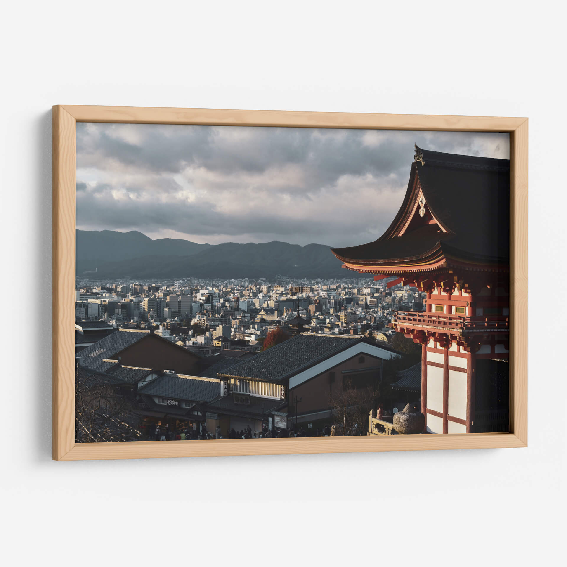 Sumérgete en la serenidad de Japón con "Cima de Kioto", una cautivadora obra de arte que captura la majestuosidad de la ciudad nipona bajo un cielo de ensueño. Este cuadro decorativo presenta una vista panorámica de Kioto, donde se entremezclan la arquitectura tradicional y moderna, coronada por las imponentes siluetas de las montañas en la distancia. El primer plano está dominado por la detallada estructura de un templo o pagoda japonesa, con sus distintivas curvas y colores vibrantes que contrastan sutilmente con la paleta de tonos más apagados del paisaje urbano y el cielo nublado. Los colores, que van desde los rojizos y ocres de la edificación tradicional hasta los grises y azules profundos del cielo y las montañas, crean una atmósfera de calma y contemplación. La composición, que divide la escena en planos, invita al espectador a explorar cada rincón de la imagen, desde la arquitectura icónica hasta la extensión de la ciudad. Es la pieza perfecta para añadir un toque de sofisticación y tranquilidad a tu salón, estudio u oficina, evocando la paz y la belleza de un rincón emblemático del mundo. Este cuadro decorativo es una ventana a la cultura y el paisaje japonés, ideal para los amantes de la fotografía de viajes y el arte inspirador.